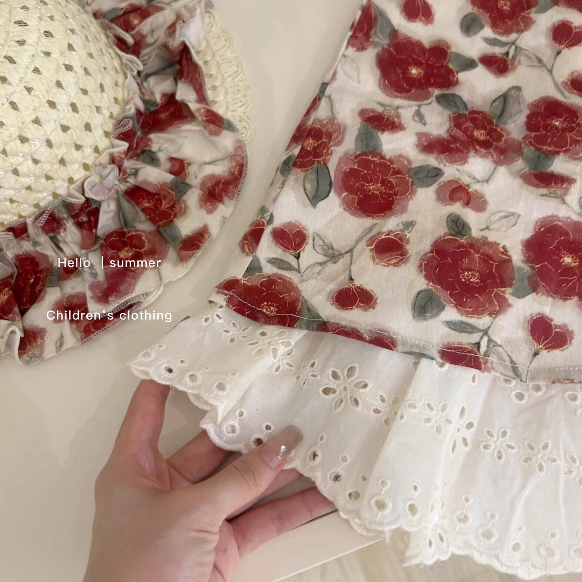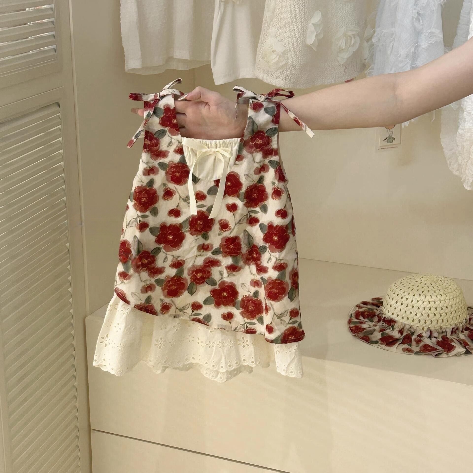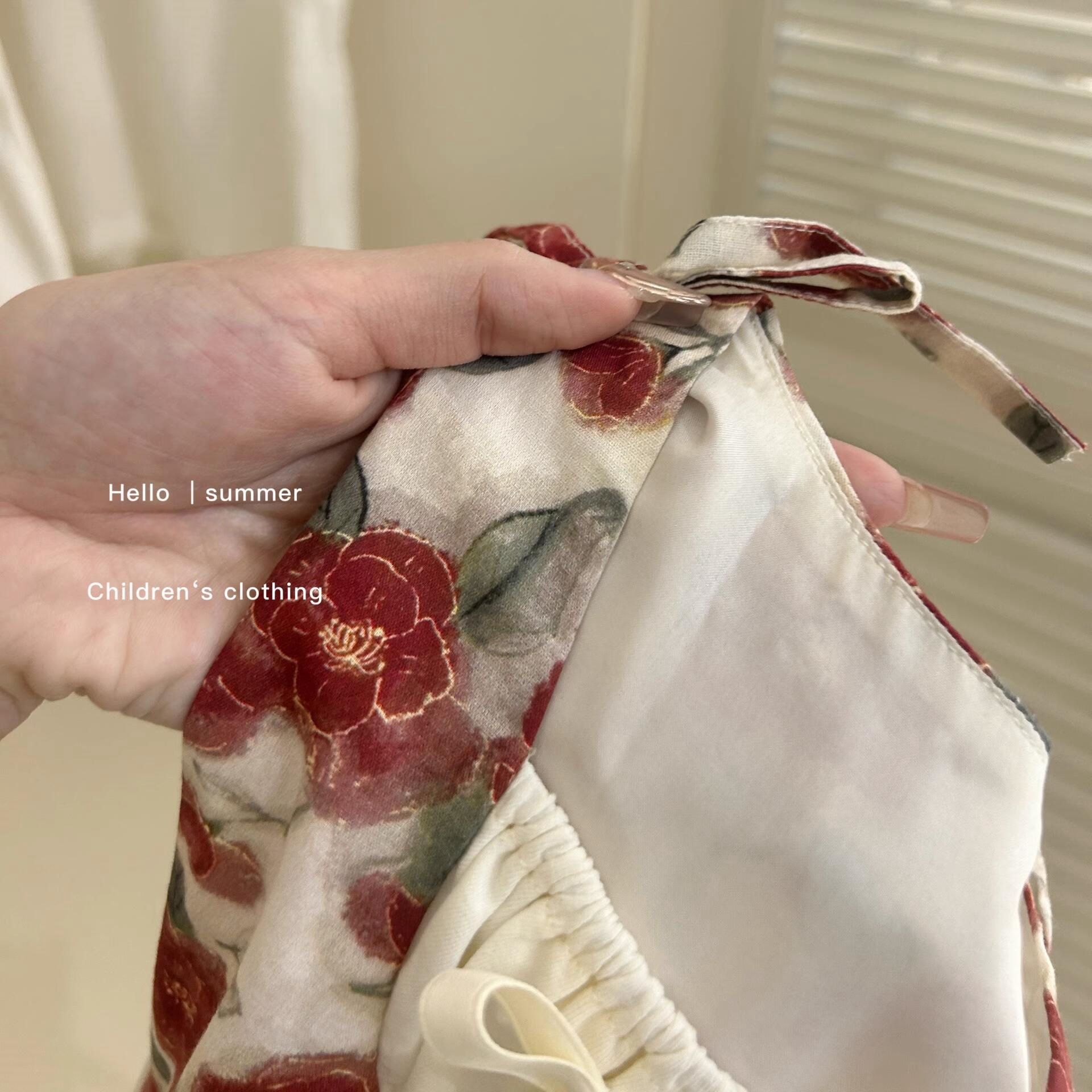 Falda de tirantes florales para siete niñas con limón salado 2025 verano nuevo estilo vestido de costura para niños falda dulce para bebés marea
