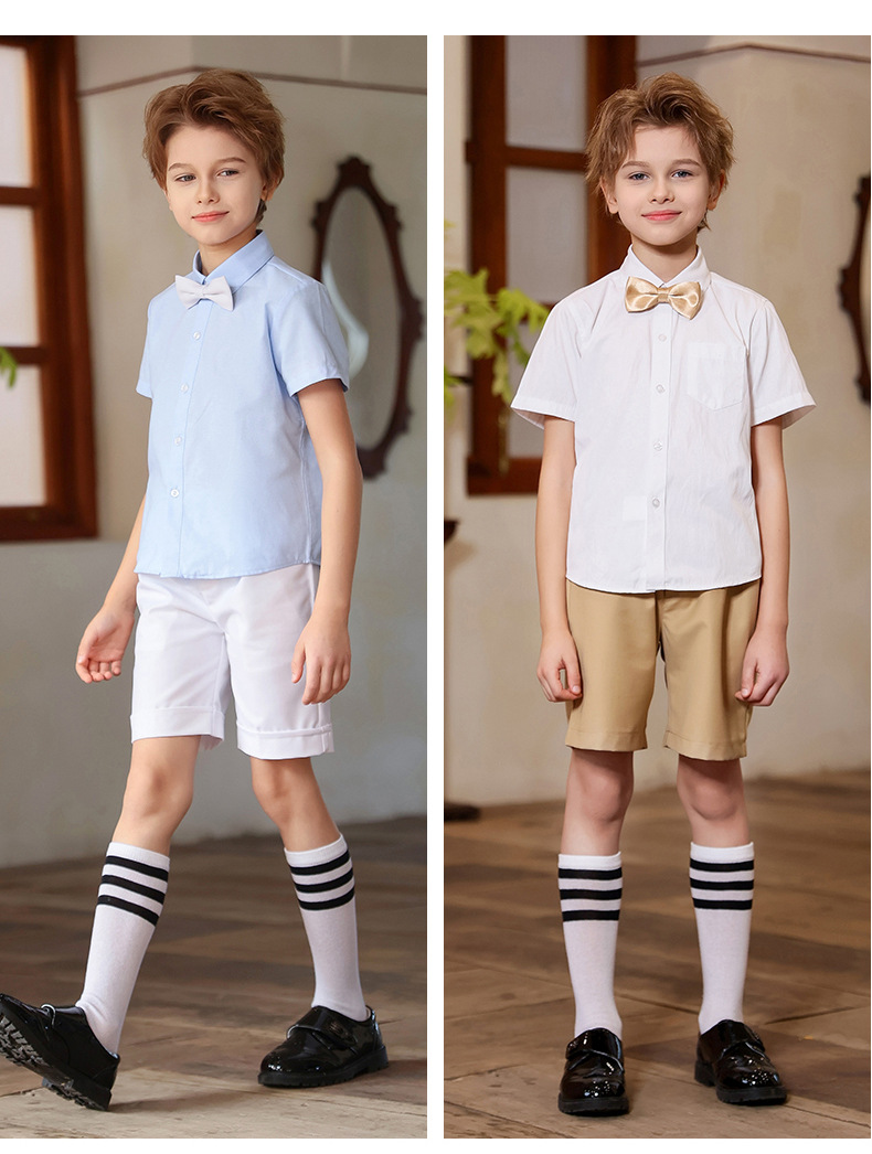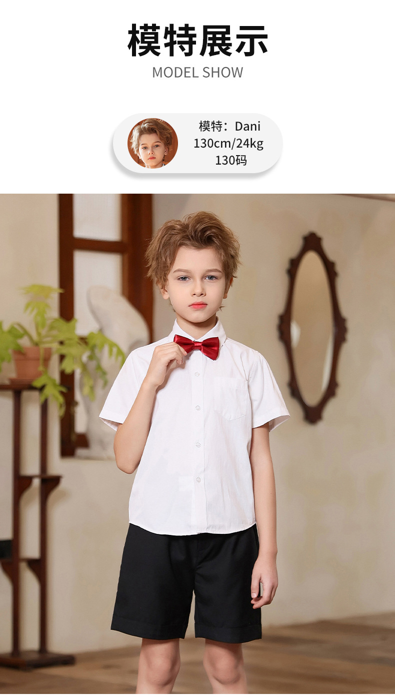 Traje de vestir para niños Traje de actuación de manga corta de verano para niños Anfitrión de piano Traje de interpretación de recitación del Día del Niño al por mayor