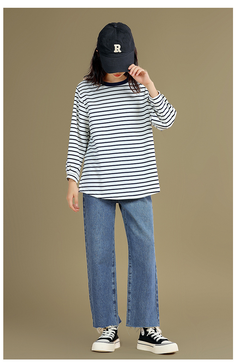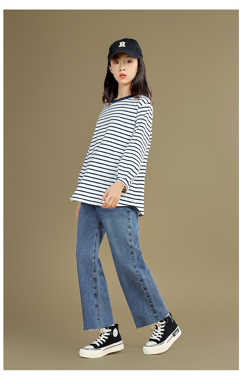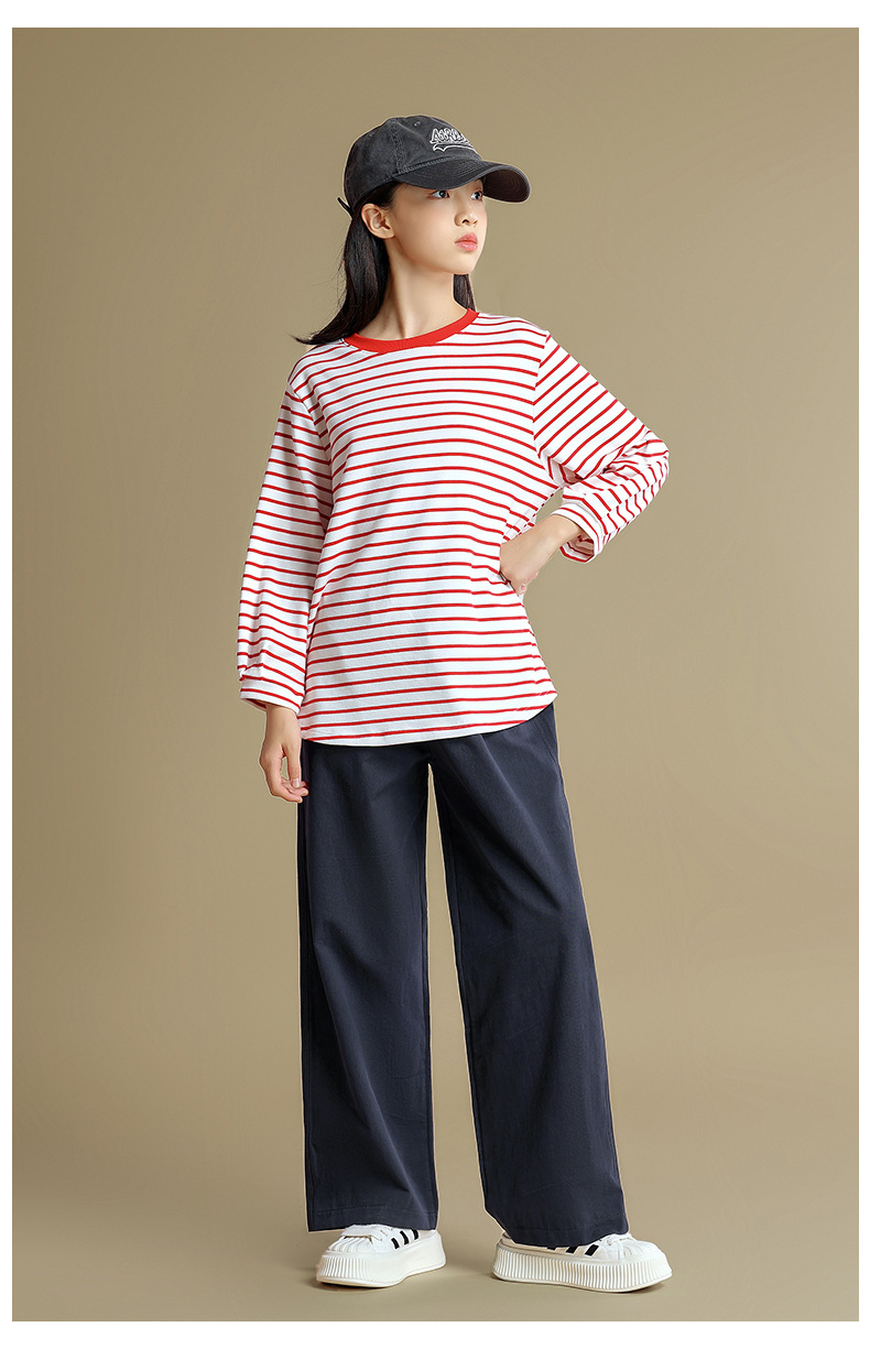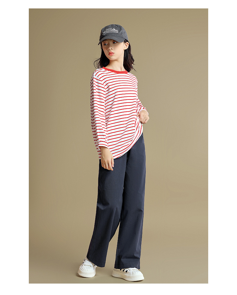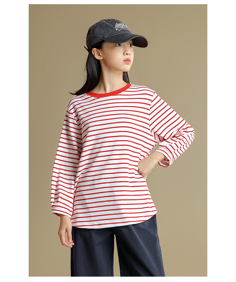 Camiseta de manga larga para niñas 2023 otoño nuevos niños medianos y grandes sueltos a rayas camisa de fondo delgada versátil cuello redondo superior