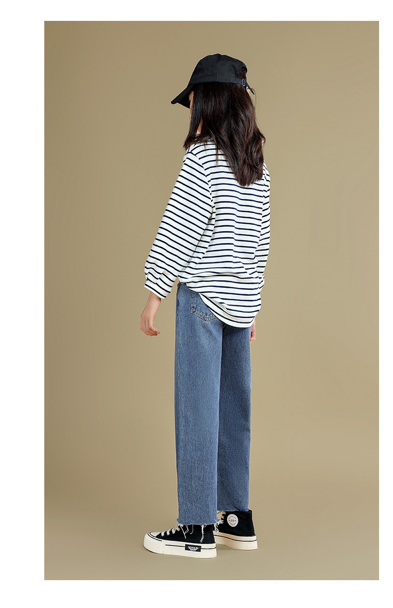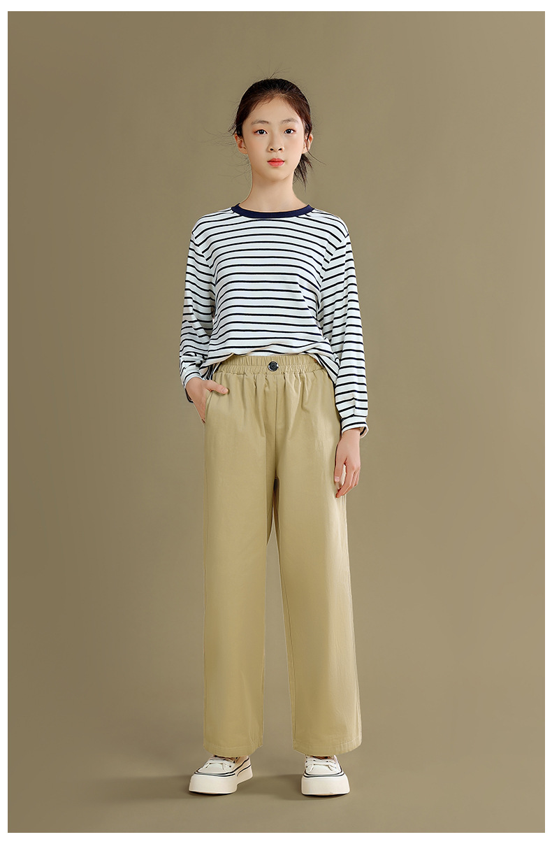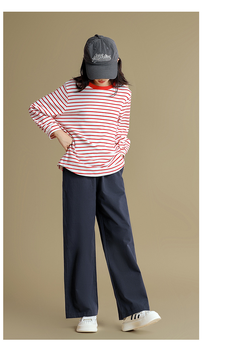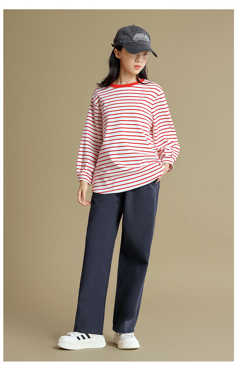Camiseta de manga larga para niñas 2023 otoño nuevos niños medianos y grandes sueltos a rayas camisa de fondo delgada versátil cuello redondo superior