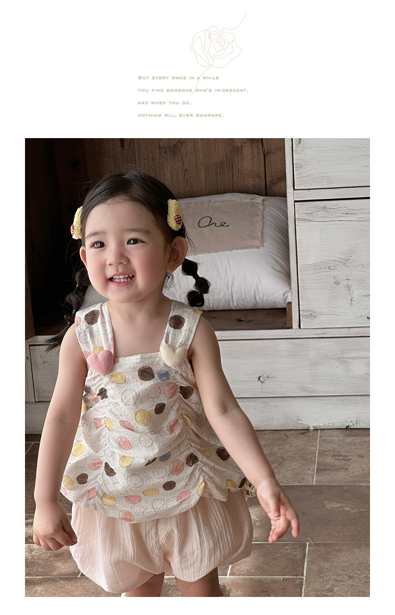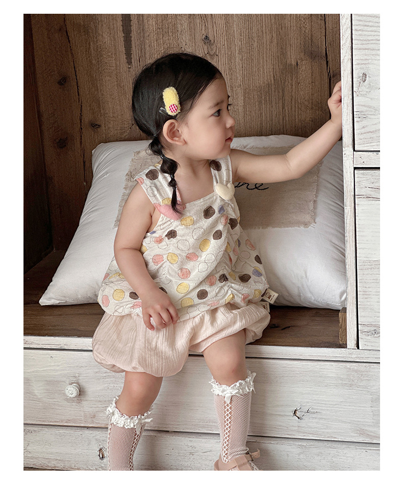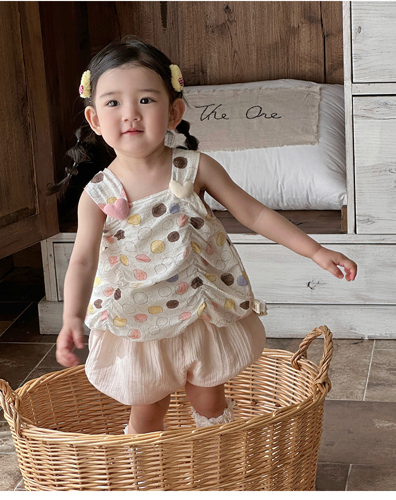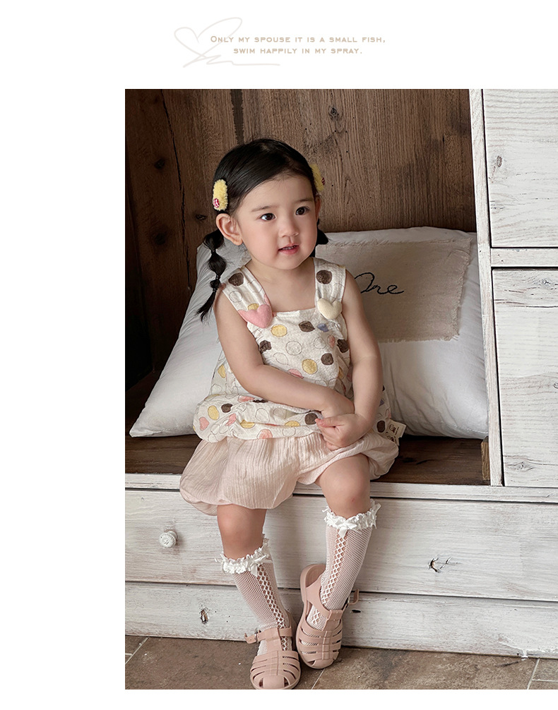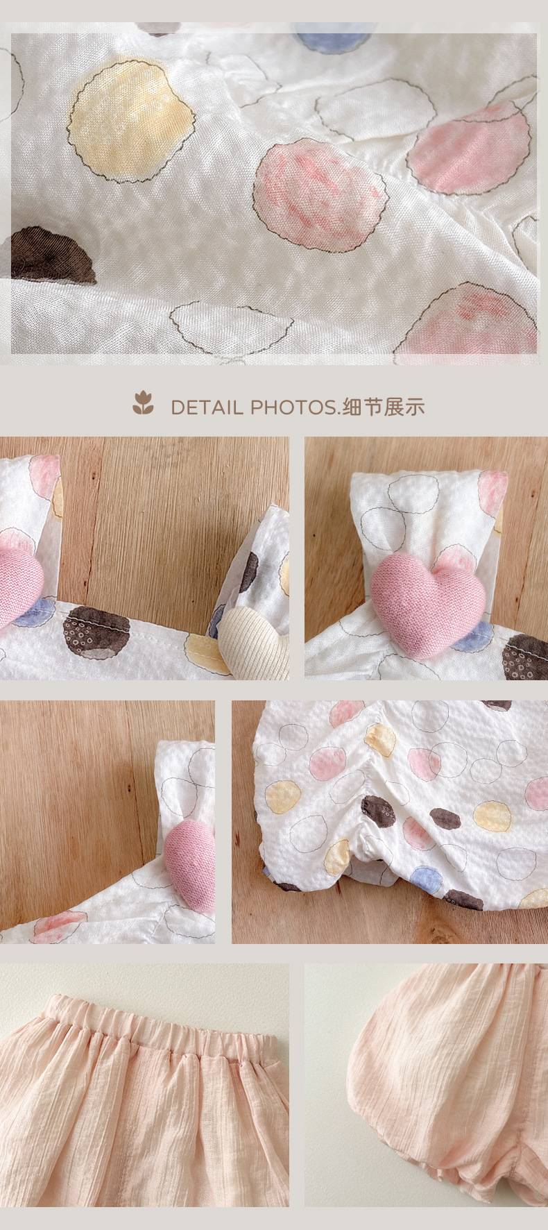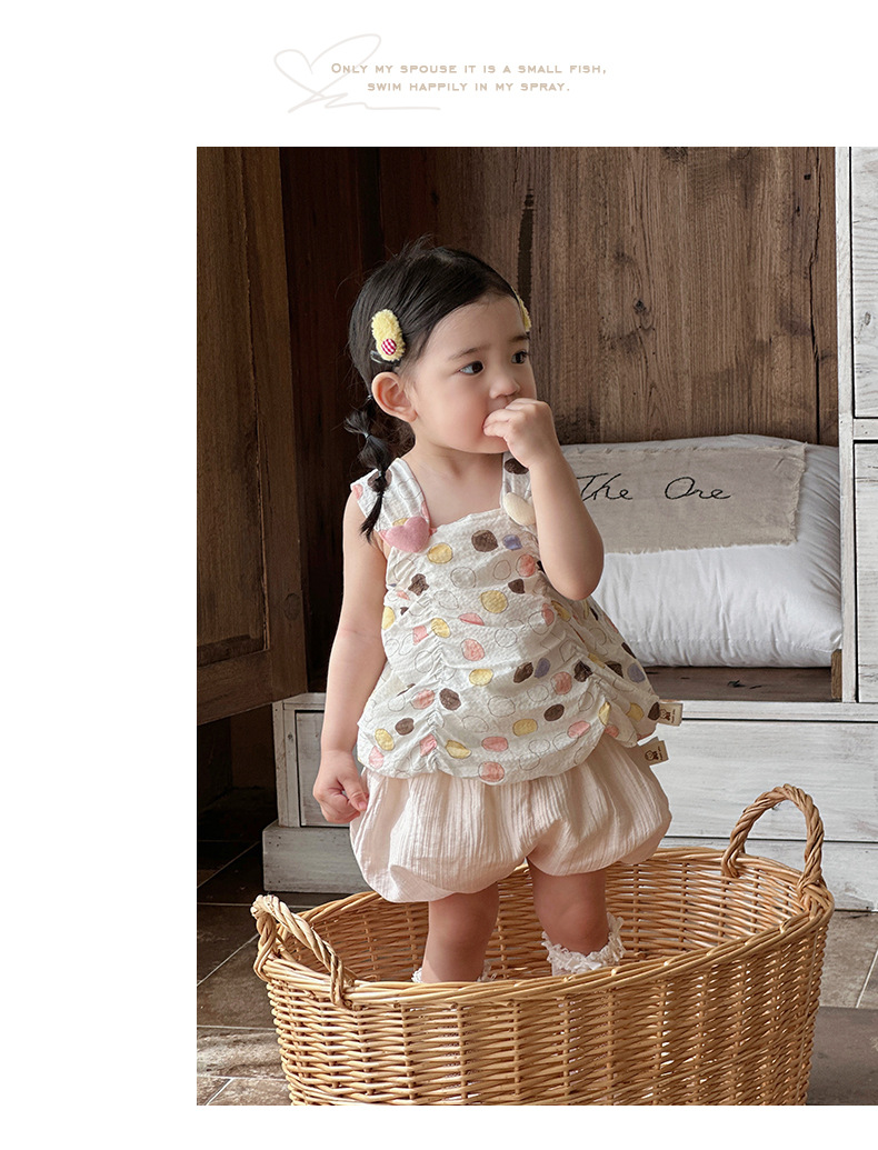 Verano nuevo estilo dulce traje de niña estilo occidental lunares amor tirantes top vestido de verano de bebé fuera traje de dos piezas