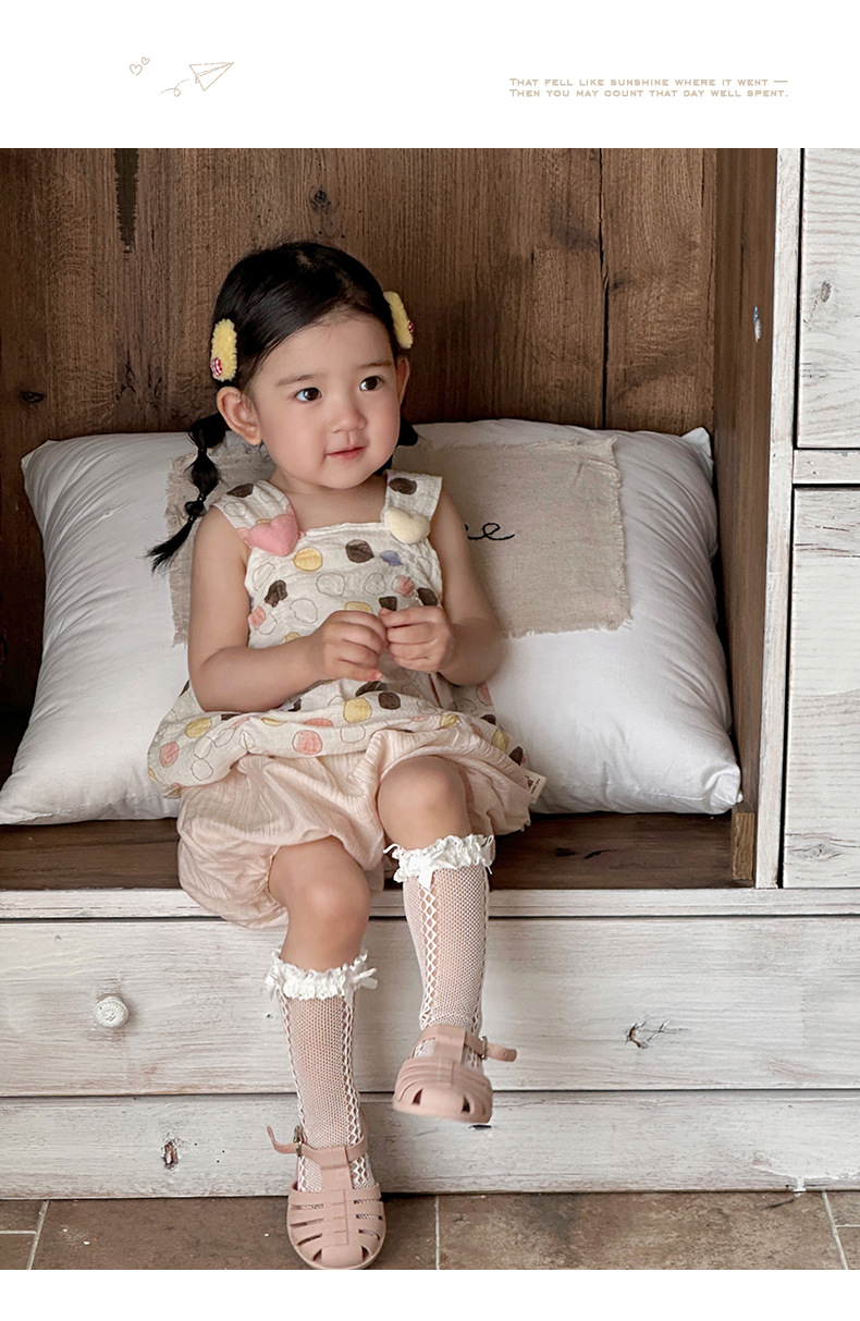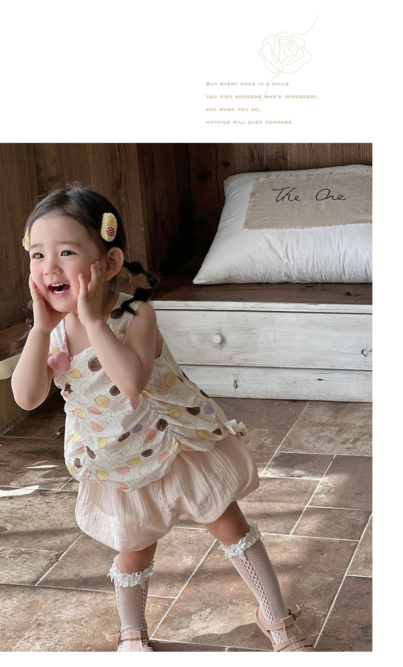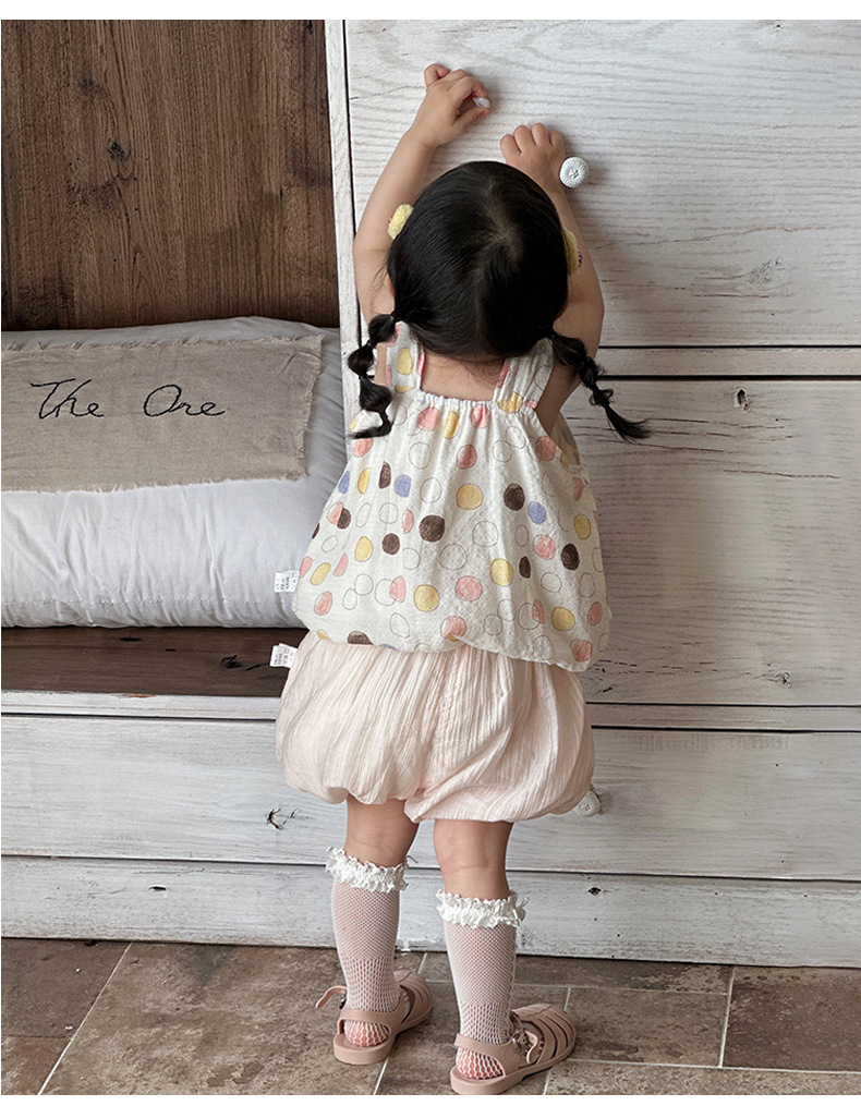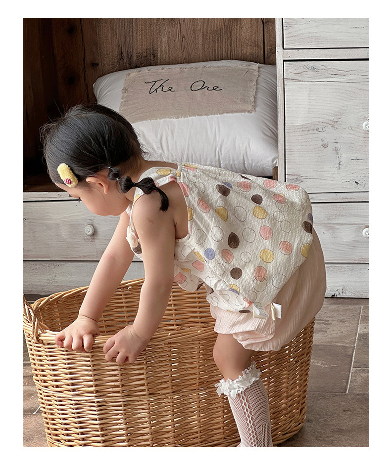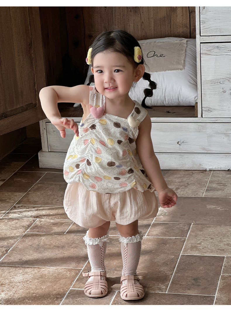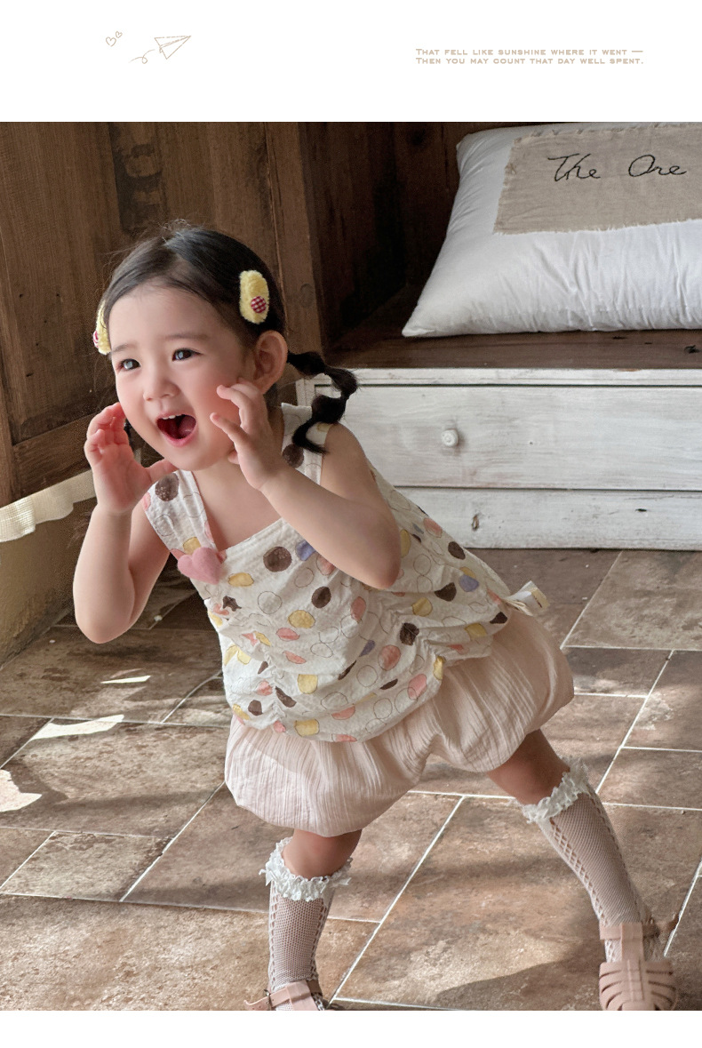 Verano nuevo estilo dulce traje de niña estilo occidental lunares amor tirantes top vestido de verano de bebé fuera traje de dos piezas