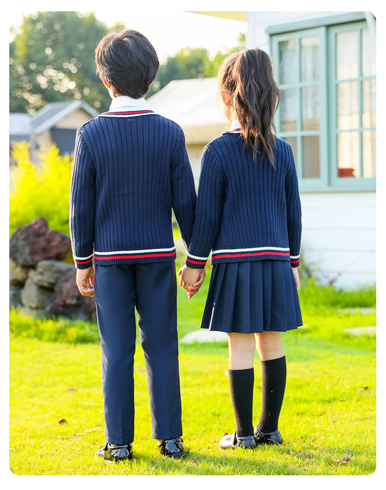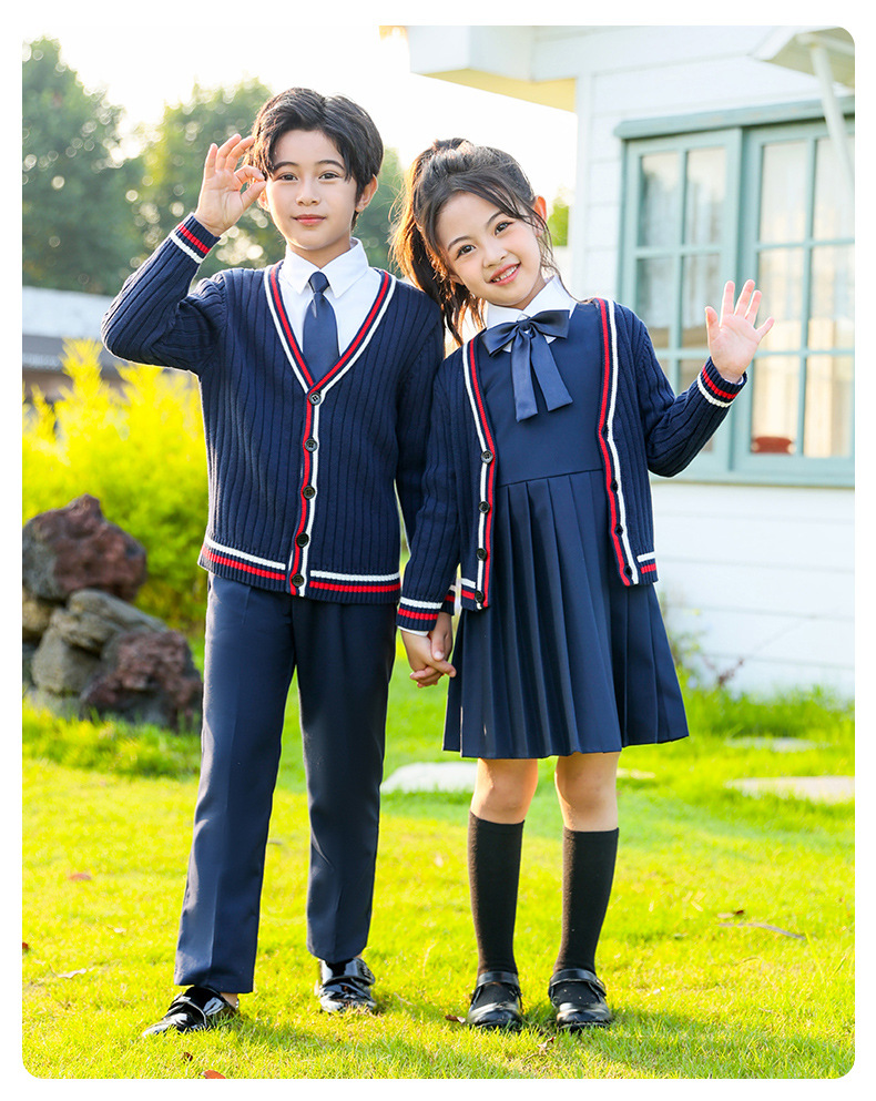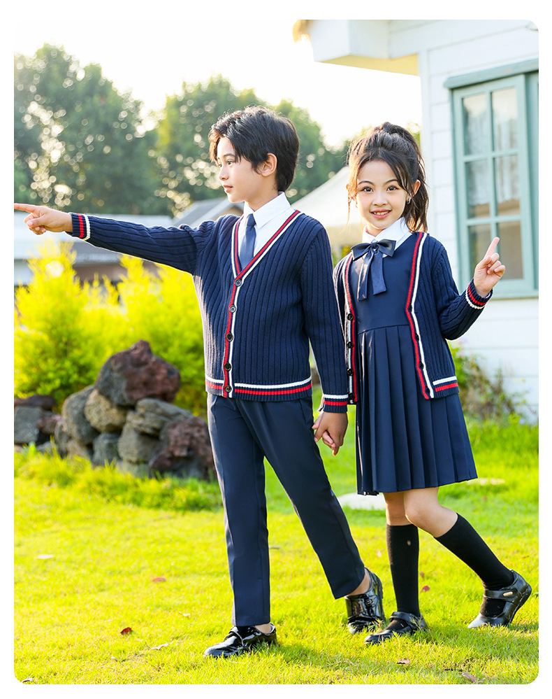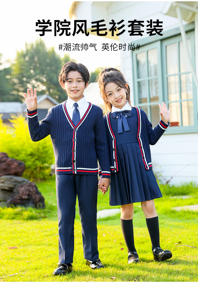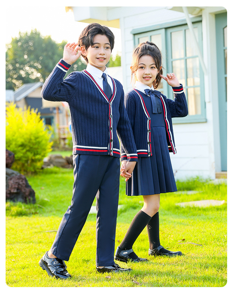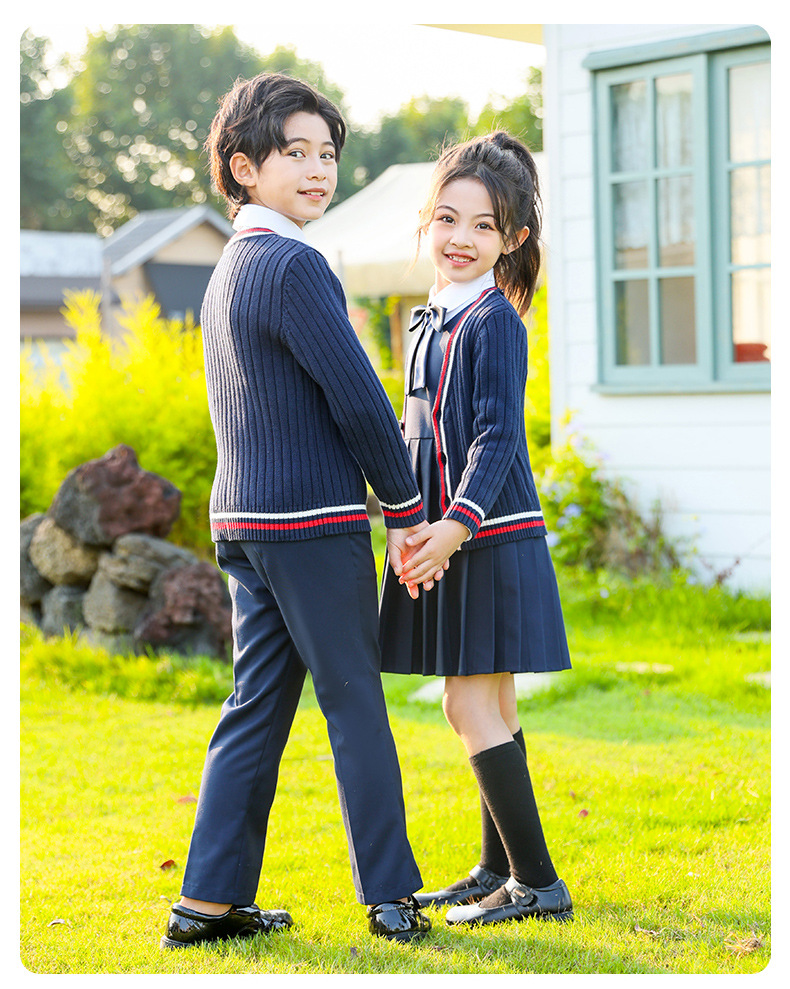 Uniformes escolares para estudiantes de primaria y secundaria, trajes de suéter de punto de estilo británico de otoño e invierno, uniformes de clase para niños y niñas, uniformes de jardín de infantes