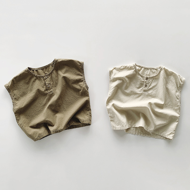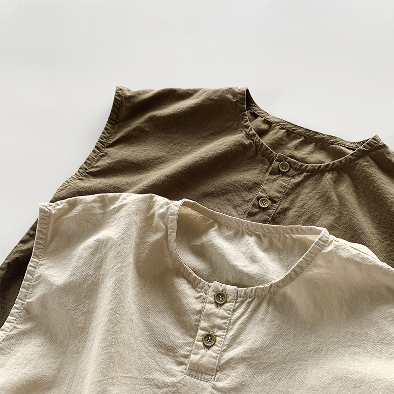 Camisa sin mangas de algodón transpirable delgada de verano para niños de estilo japonés y coreano para niños y niñas Mori camiseta superior personalizada ropa para niños