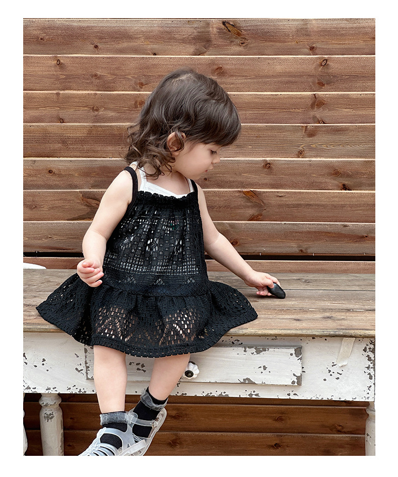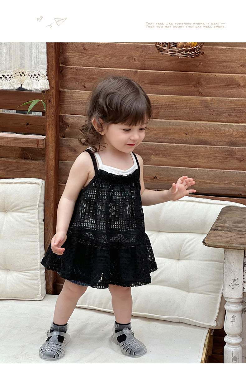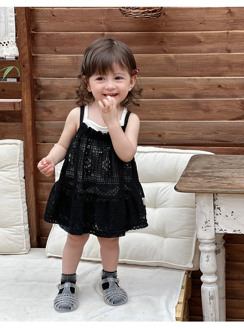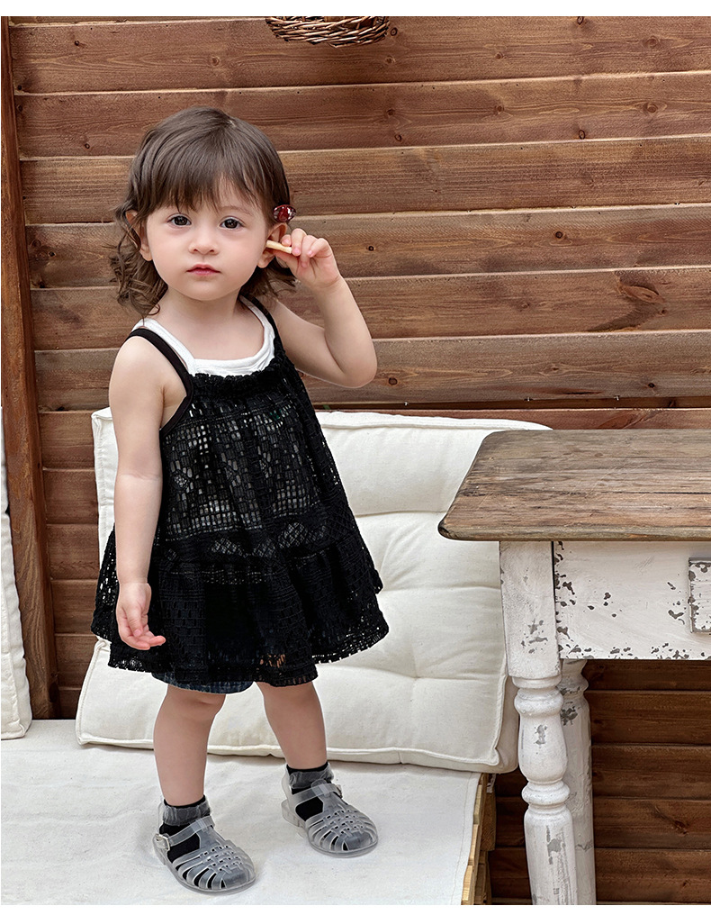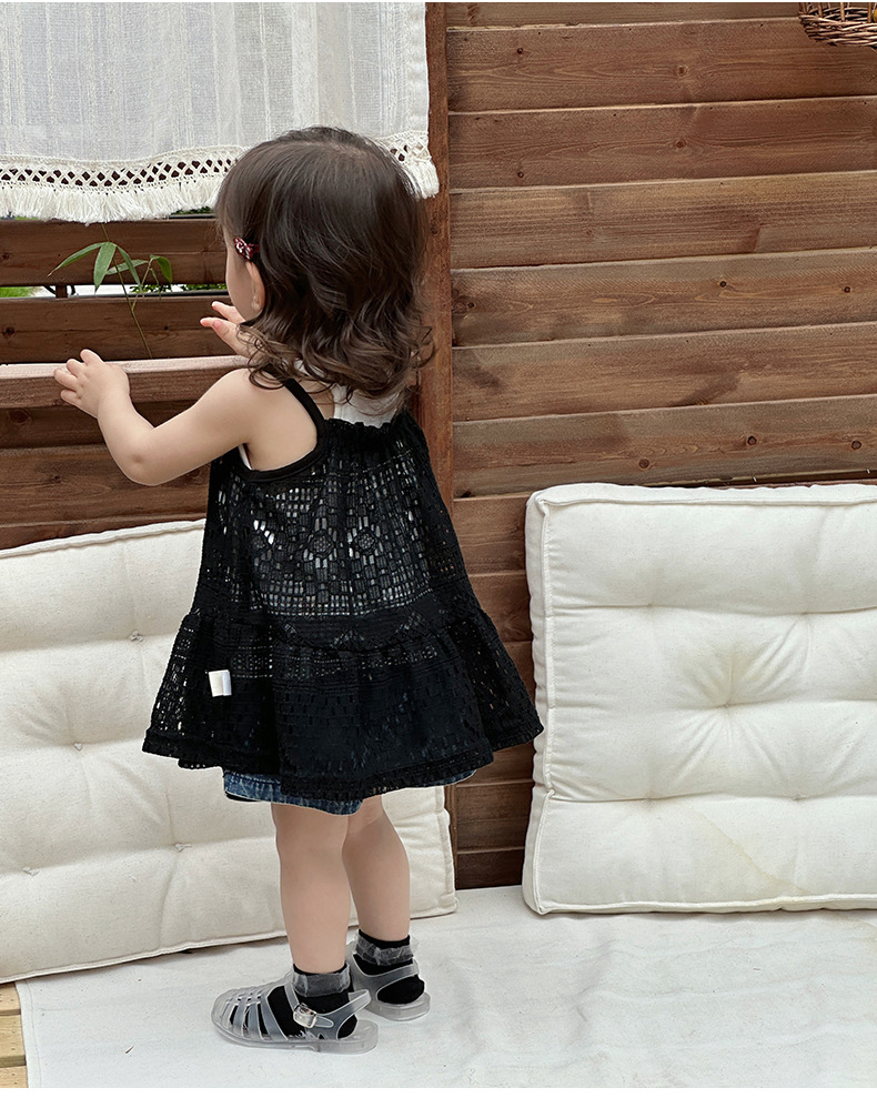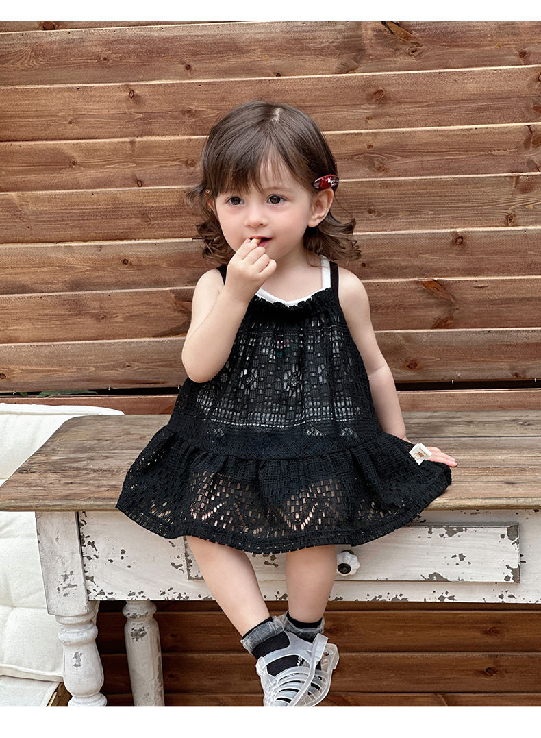 Traje pequeño de estilo occidental para bebés y niños pequeños 2025 verano blusa hueca para bebés traje de salida para recién nacidos traje de tres piezas