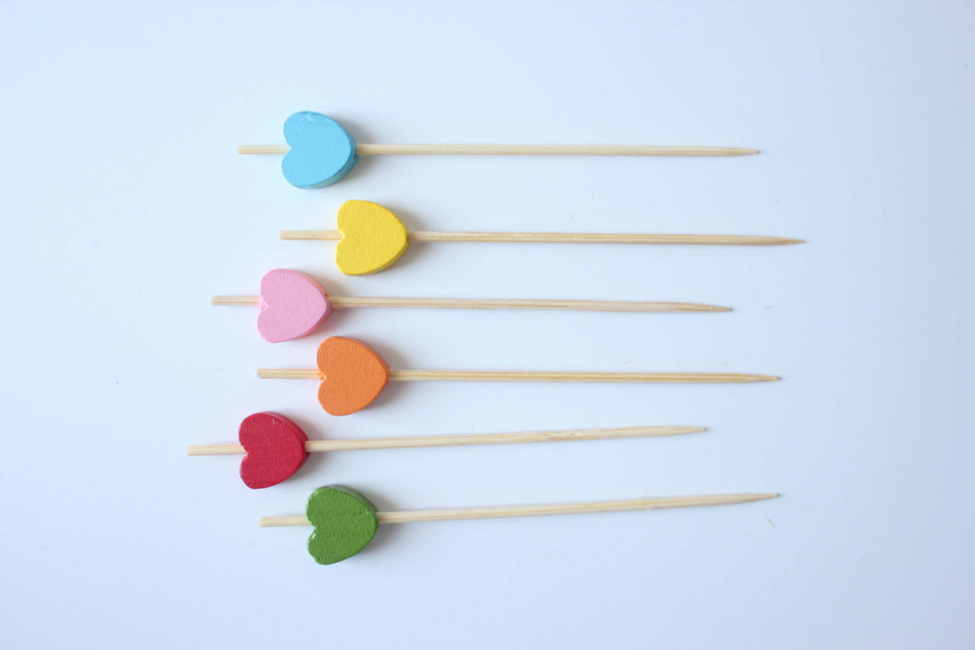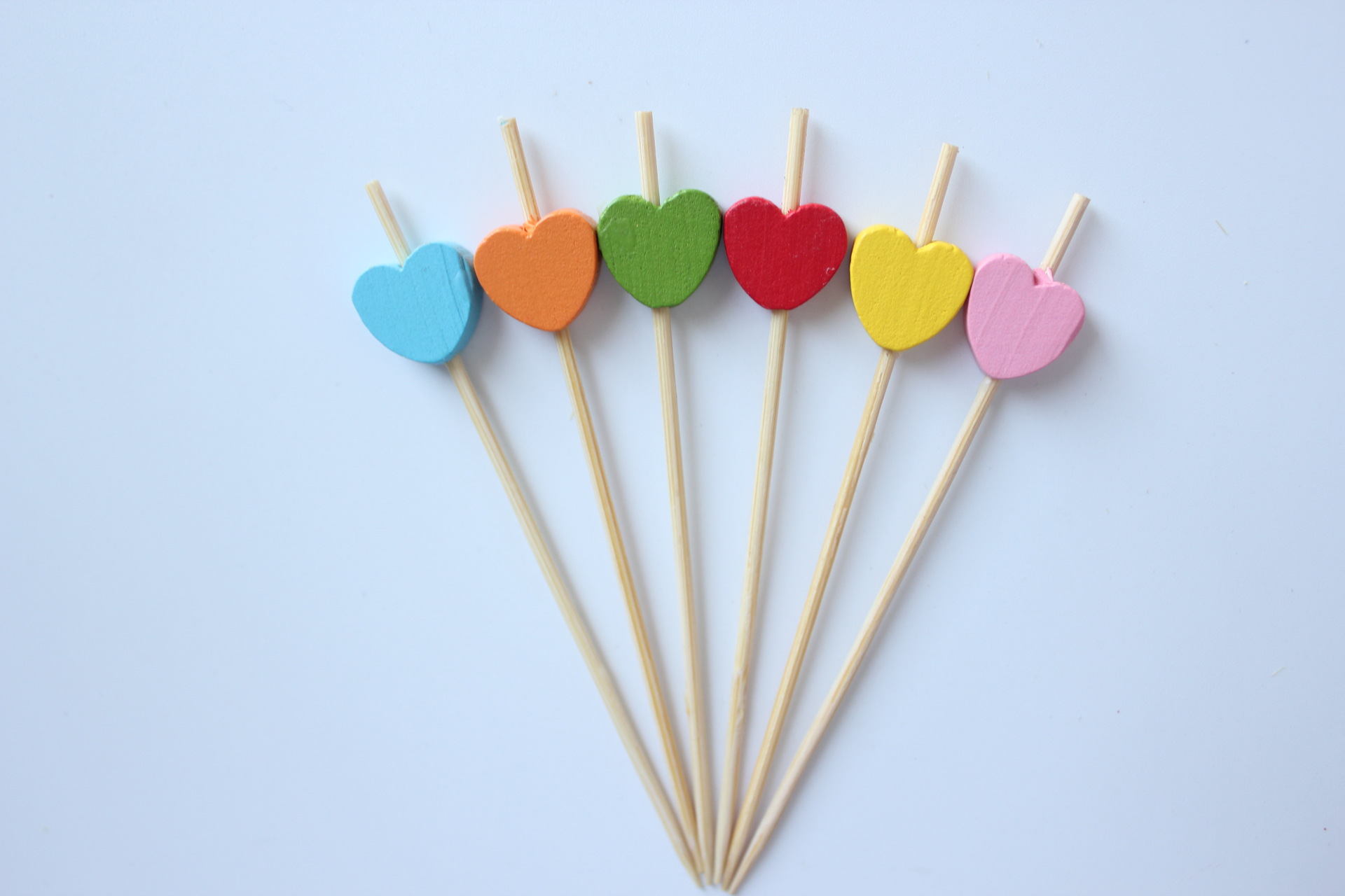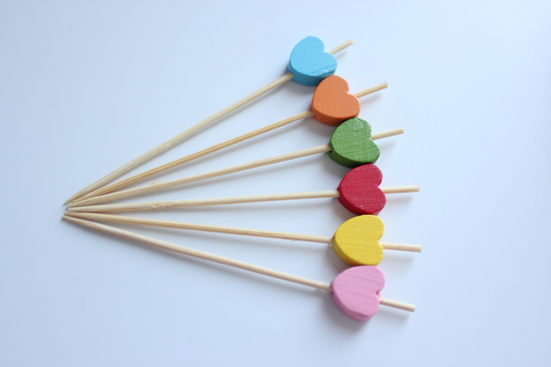 Red Love 100/paquete de color mixto corazón melocotón signo de fruta desechable amor decoración arte creativo sándwich palillo de dientes