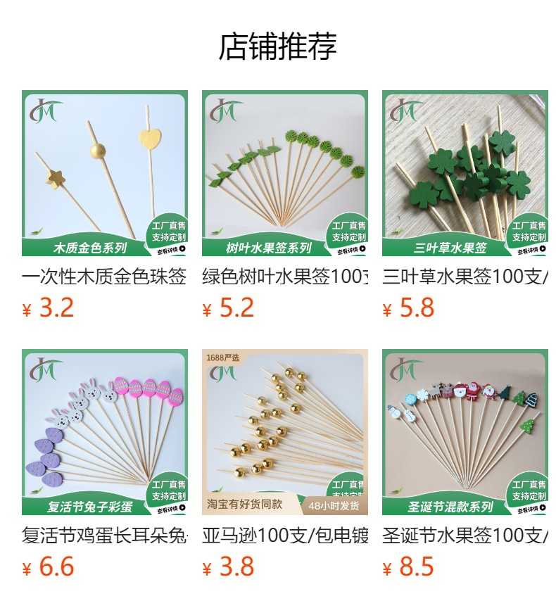 Madera tallada palo de bambú palo de fruta 100 unids/pack estilo exótico desechable flor caliente decorativo palo de bambú arte tambor de la cintura