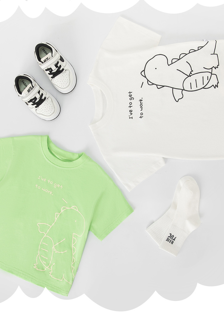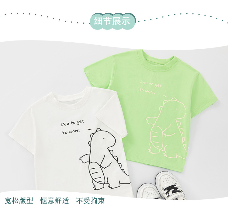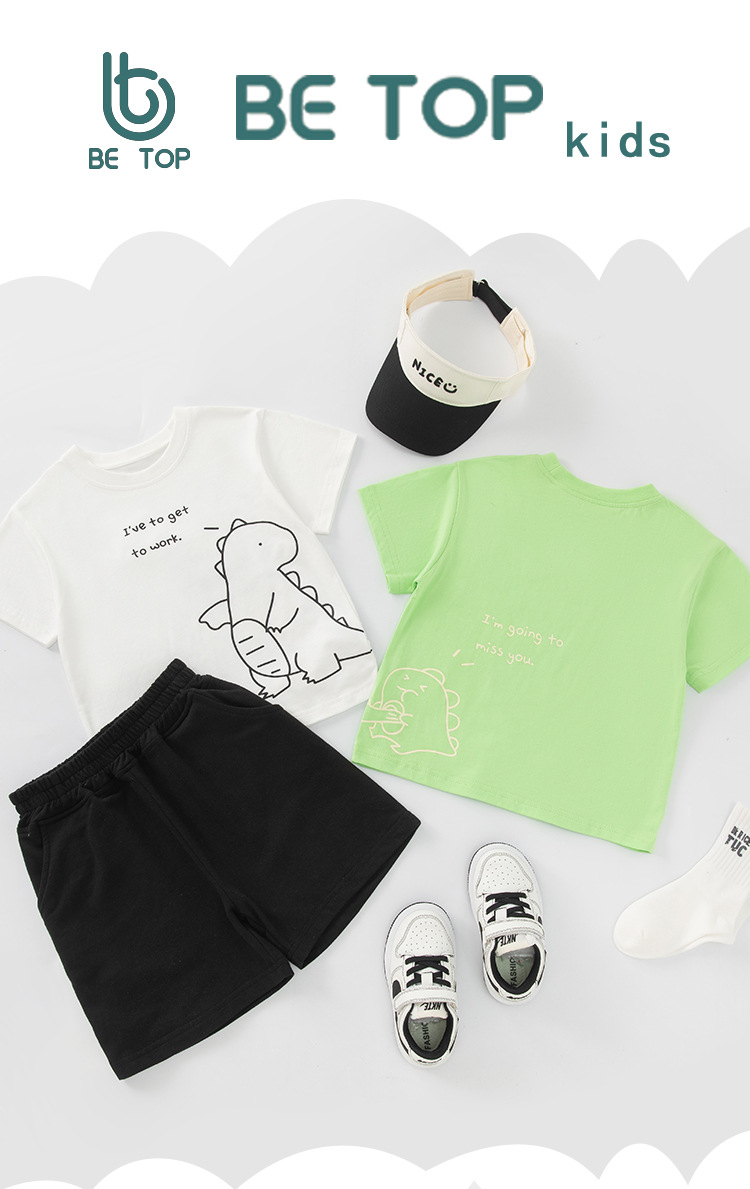 Betop camiseta de manga corta para niños verano nueva ropa para niños ropa para bebés dibujos animados dinosaurio cuello redondo media manga comercio exterior al por mayor