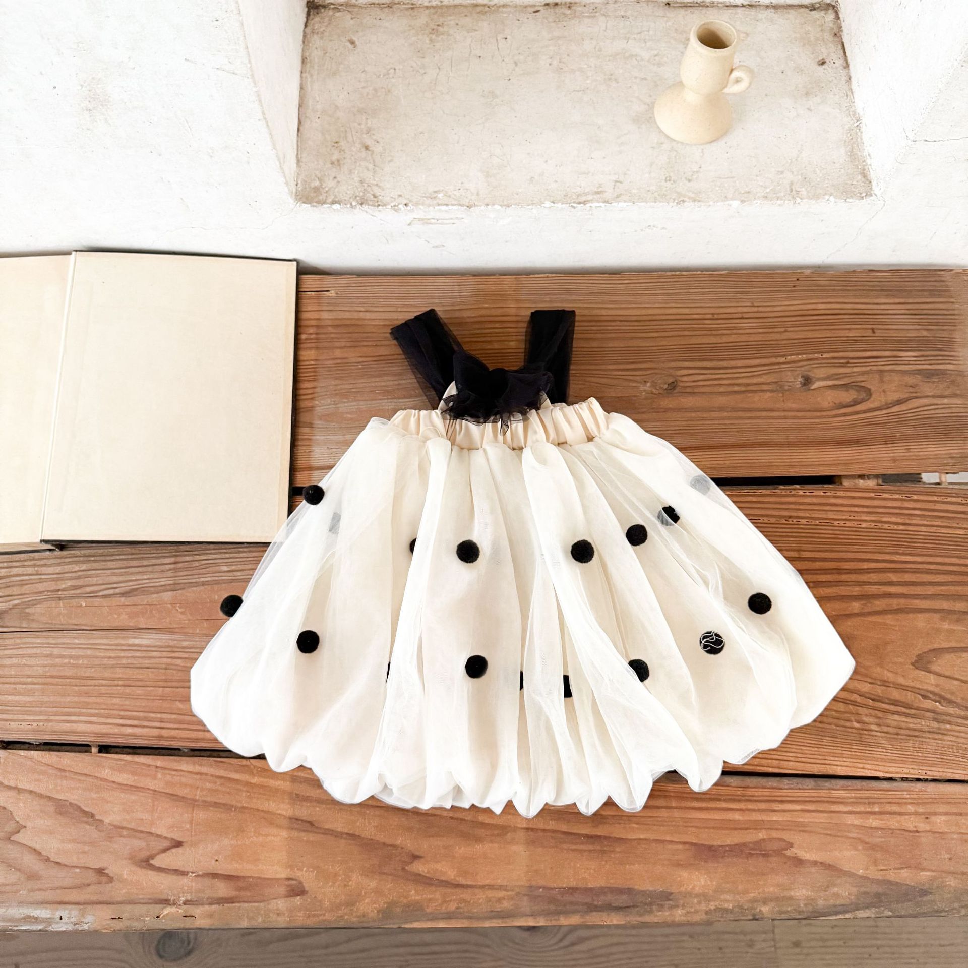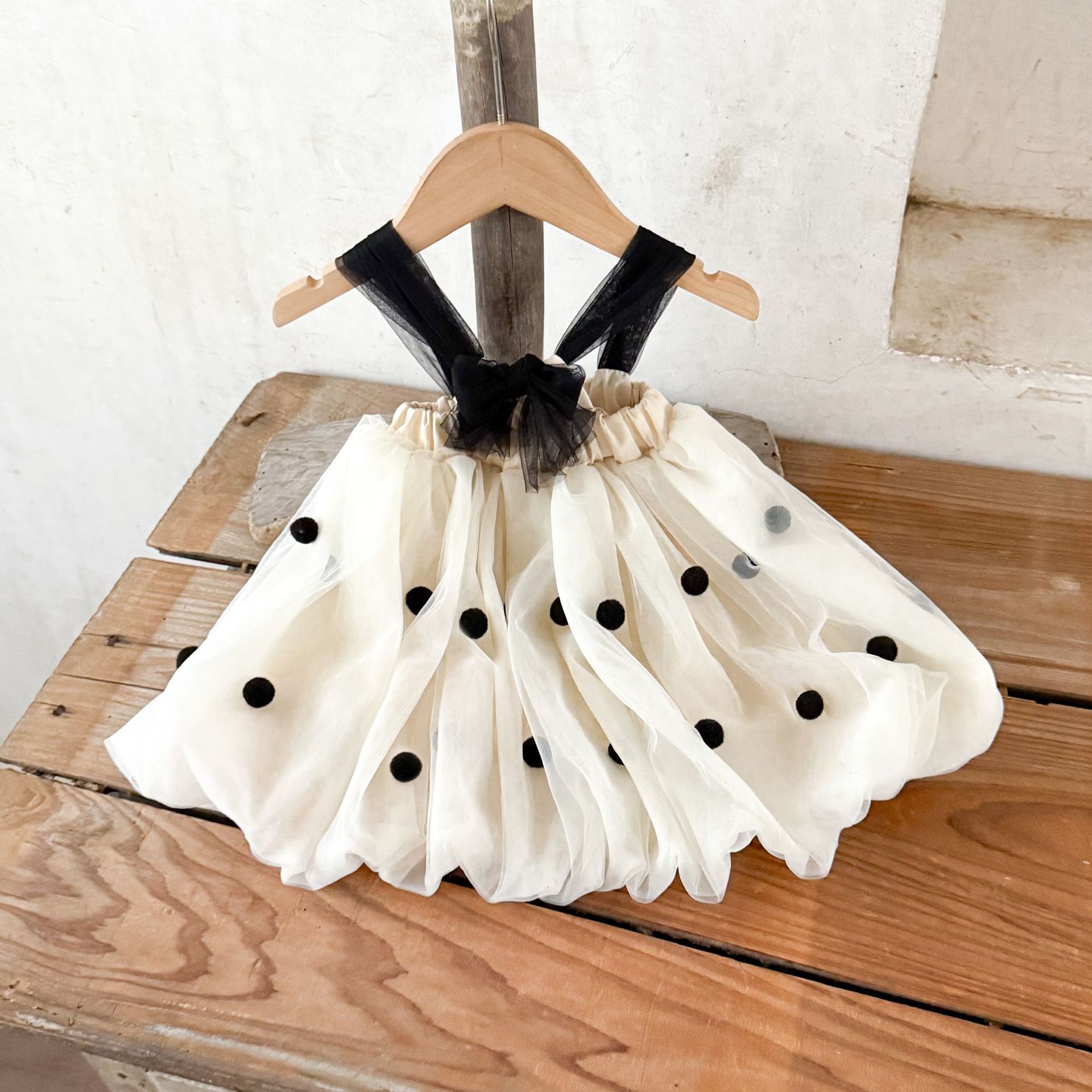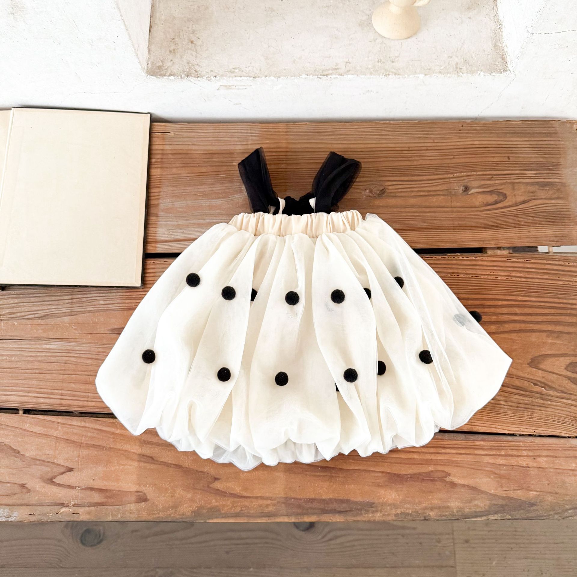 Ins versión coreana de las niñas de verano nuevo 2025 niñas de malla ondulado punto de lazo