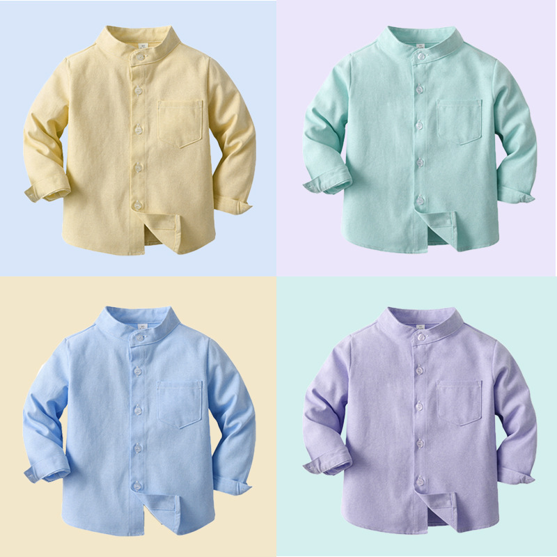 Camisas coreanas para bebés masculinos y femeninos de color sólido neutro de manga larga primavera y otoño ropa infantil de moda en camisas calientes
