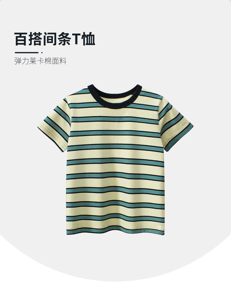 27kids camiseta de manga corta a rayas para niños ropa de verano nueva versión coreana de media manga Leica top ropa de bebé de moda