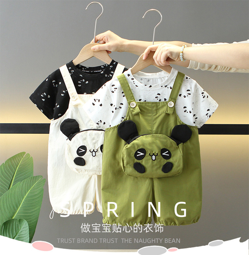 7916 traje de verano para niños 2025 nuevos monos de verano para niños de dos piezas de manga corta ropa de estilo occidental para bebés