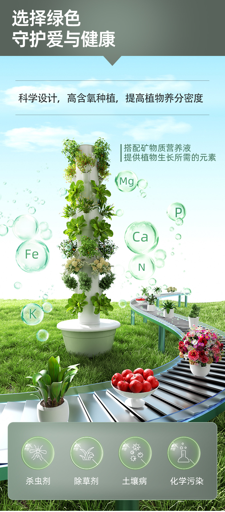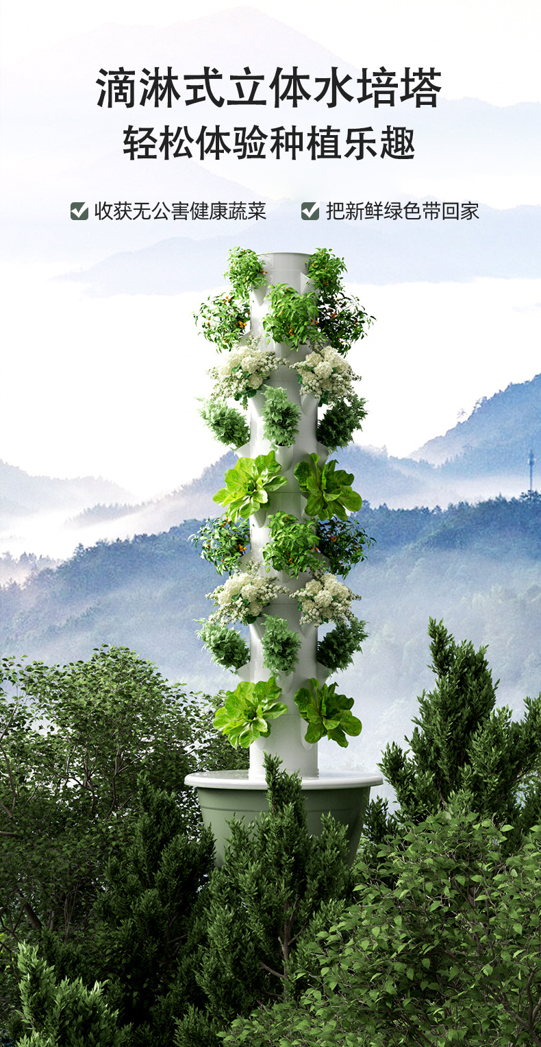 Instalaciones modernas, torre hidropónica vertical agrícola, plantadora de vegetales inteligente, cultivo sin suelo, columna vegetal, tubo de cultivo en aerosol
