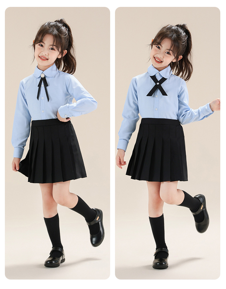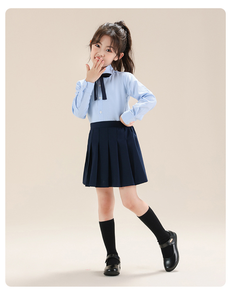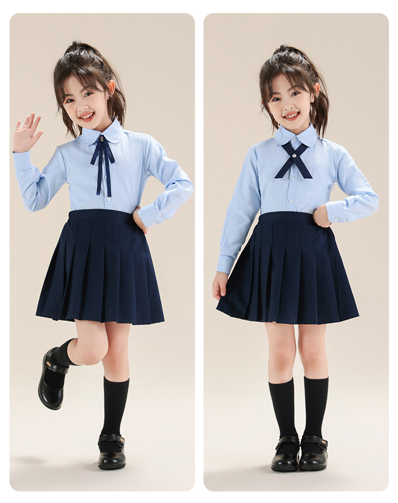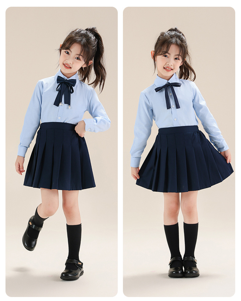 Colegio de Niños Viento Baekje ropa de vestir para niñas primavera y otoño camisa azul de manga larga para estudiantes de primaria ropa de rendimiento de niñas
