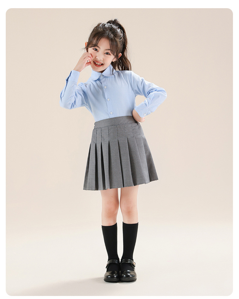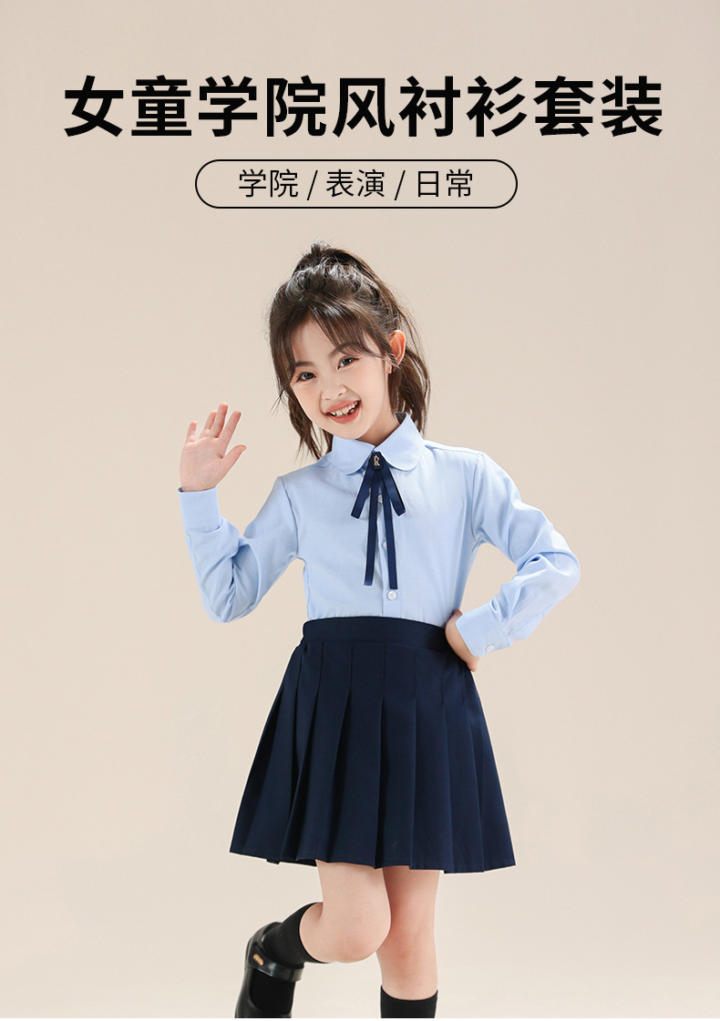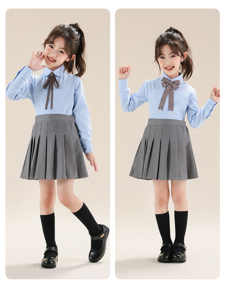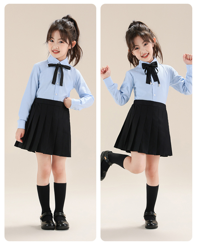 Colegio de Niños Viento Baekje ropa de vestir para niñas primavera y otoño camisa azul de manga larga para estudiantes de primaria ropa de rendimiento de niñas