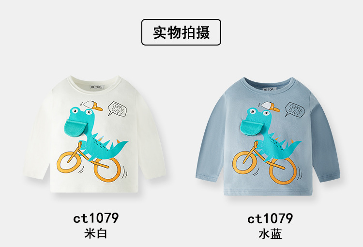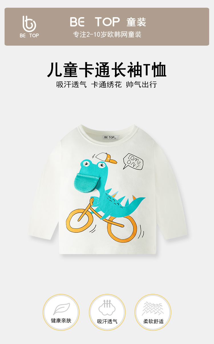 Ser Superior Primavera y otoño estilo coreano ropa para niños Top niños de dibujos animados dinosaurio niños bebé algodón manga larga cuello redondo Generación de cabello