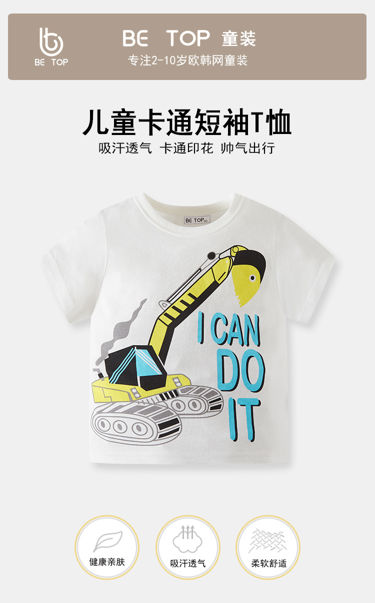 Ropa para niños excavadora de gancho de verano vehículo de ingeniería Camiseta de algodón de manga corta para niños entrega de una pieza estilo coreano