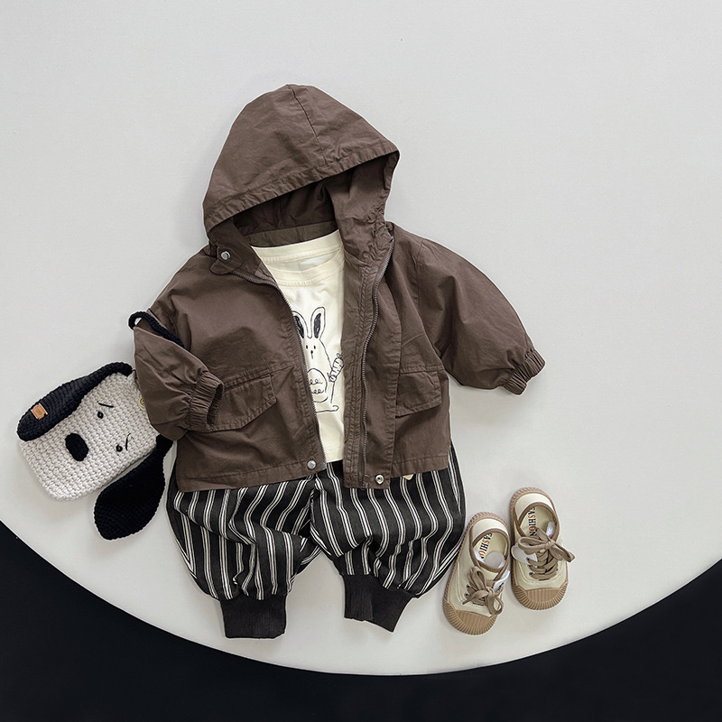 Nueva chaqueta de otoño de estilo japonés y coreano para niños, nueva camiseta versátil con capucha para niñas 2025, camisa con cremallera para bebés y niños.