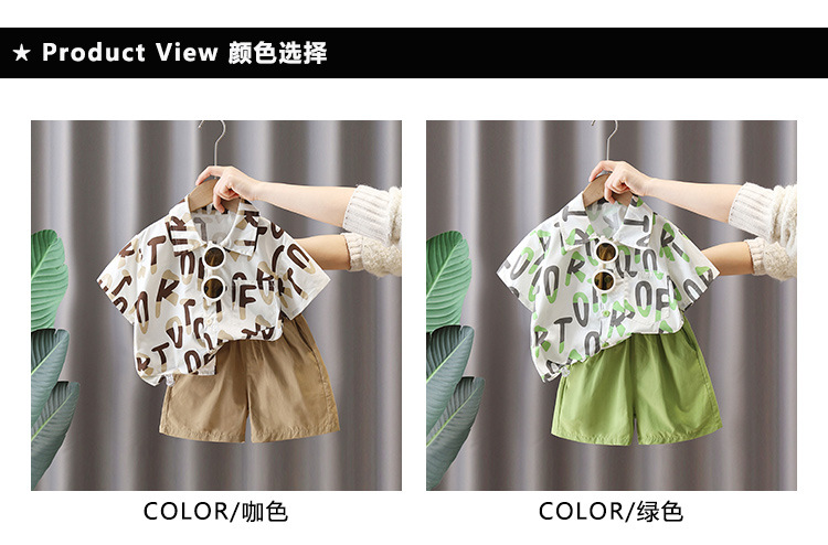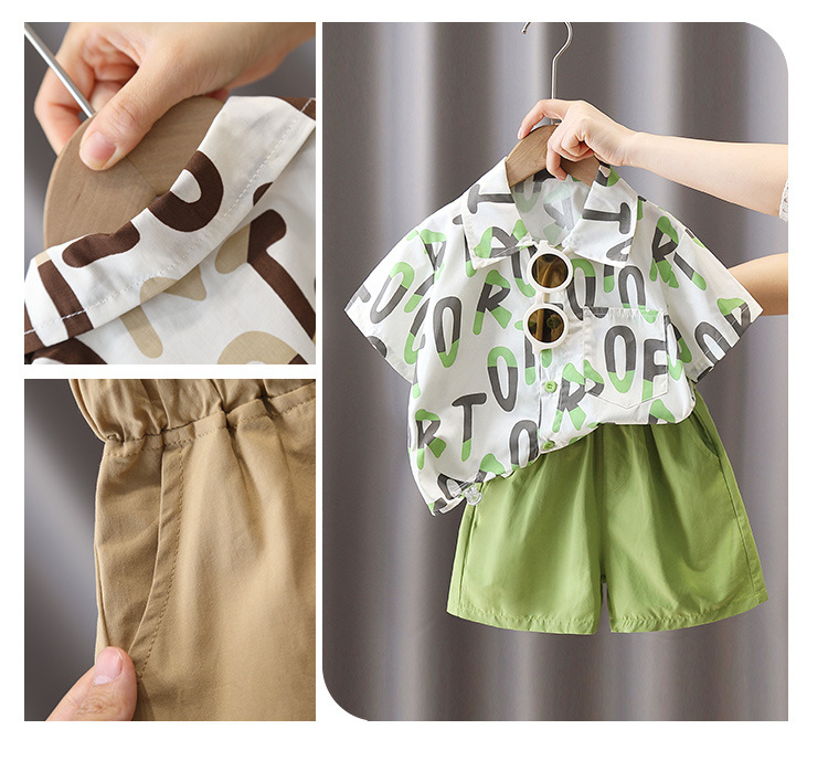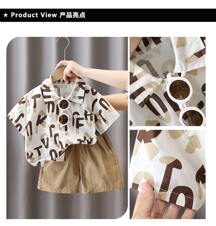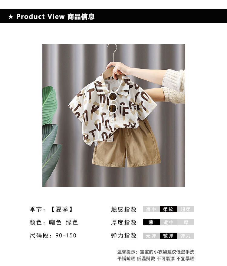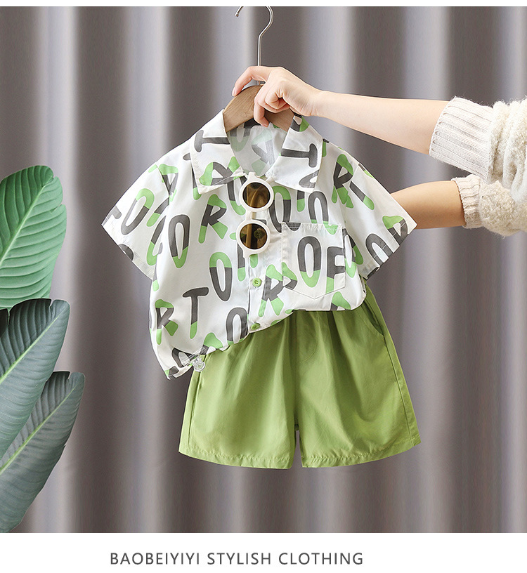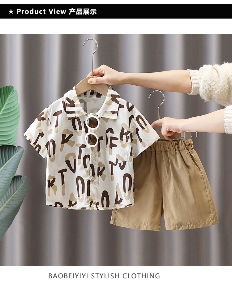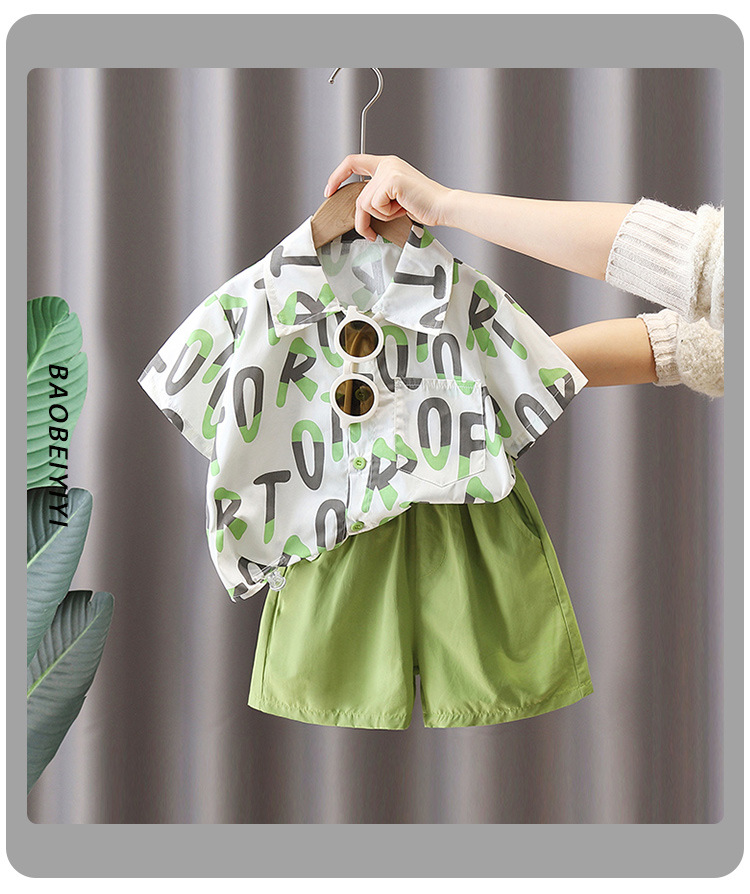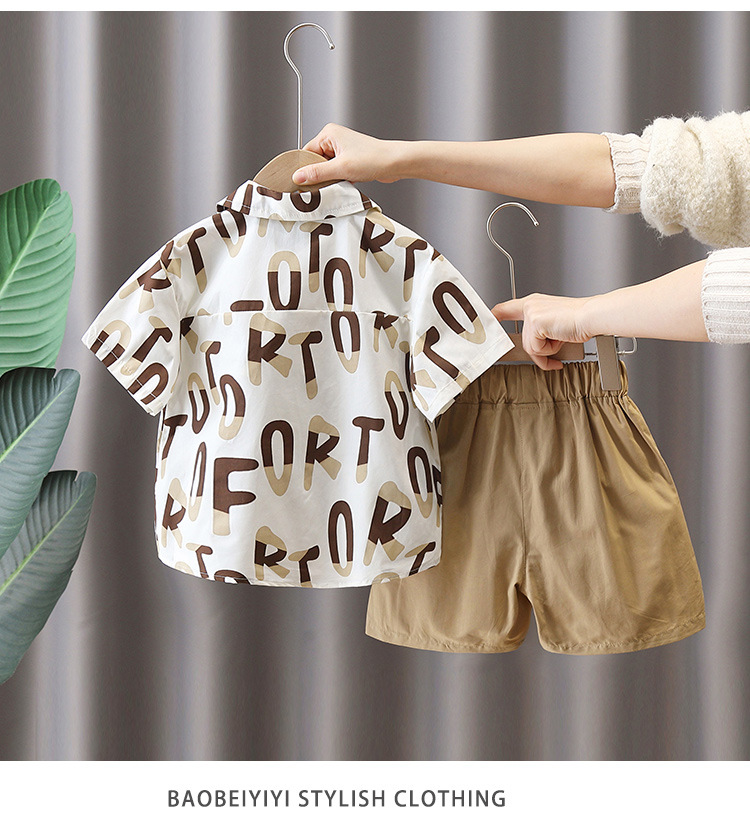 7112 Traje de camisa con letras para niños, camisa de manga corta de moda de verano para niños guapos, traje de dos piezas de verano