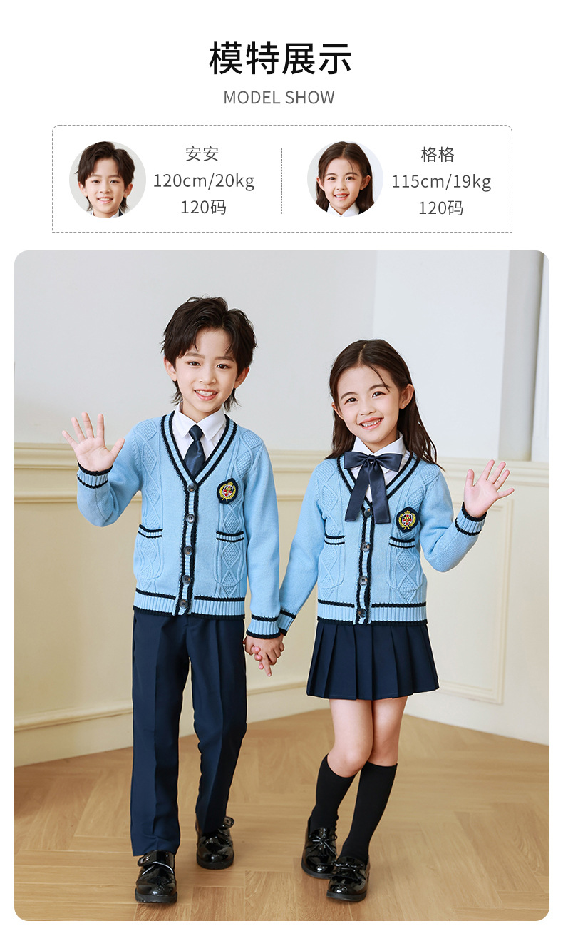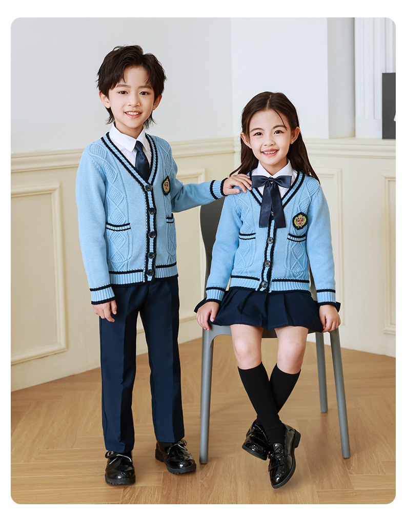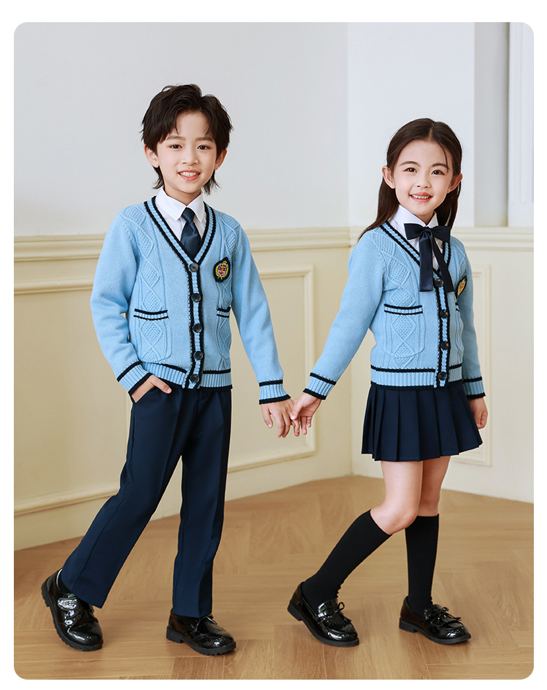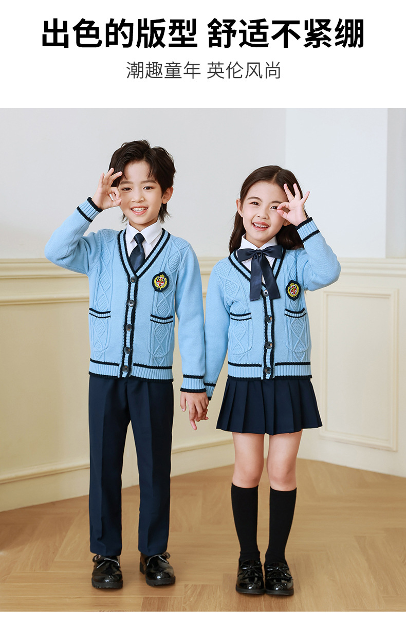 Uniforme escolar para estudiantes de primaria primavera y otoño ropa de clase de estilo universitario traje cardigan de estilo coreano para niños Jardín de Infantes de tres piezas británico Ropa de jardín