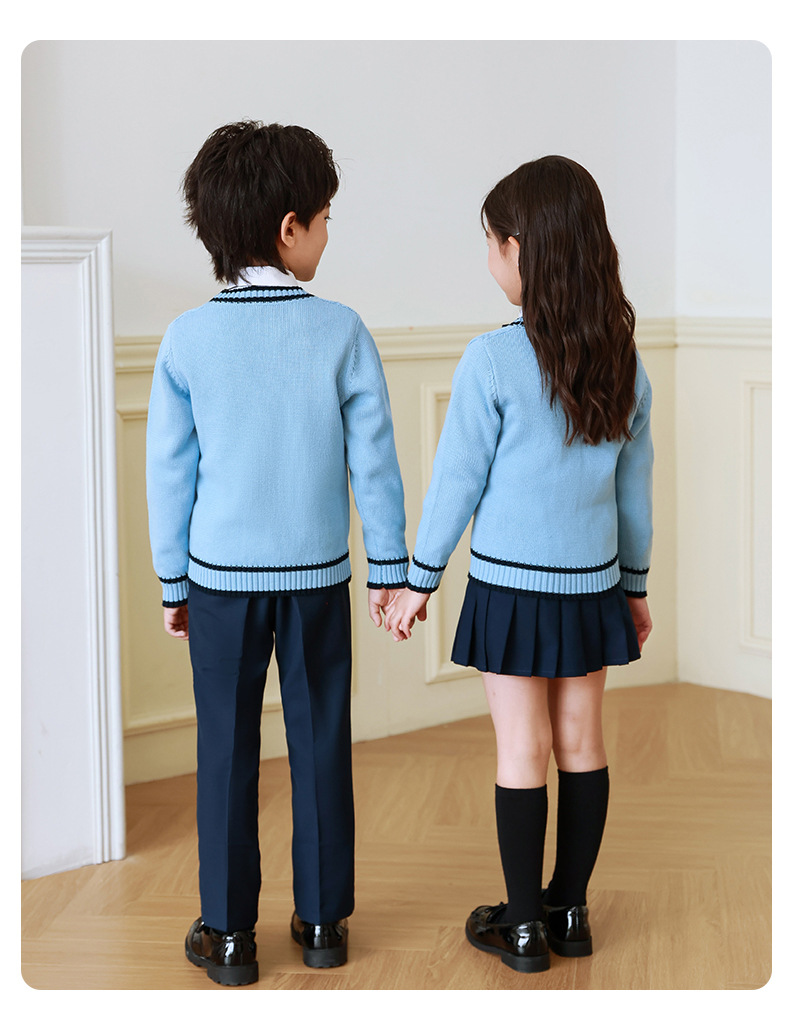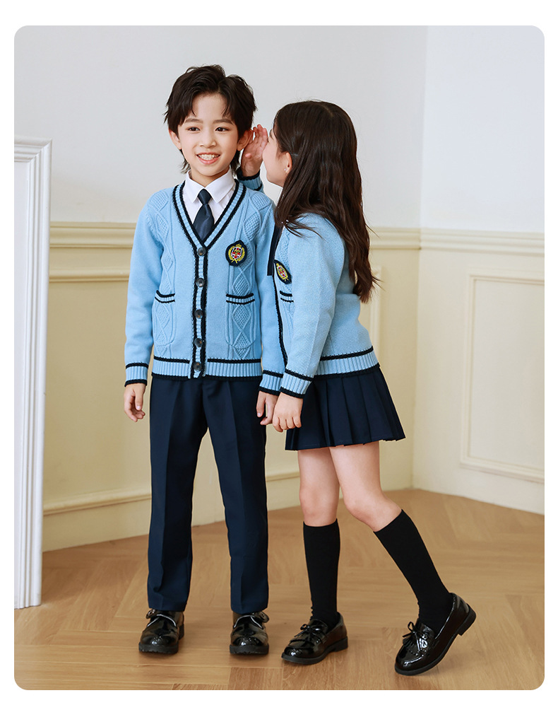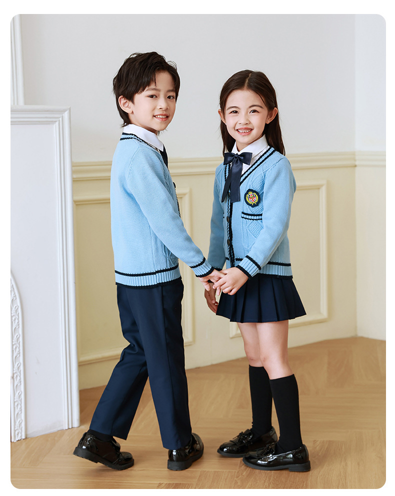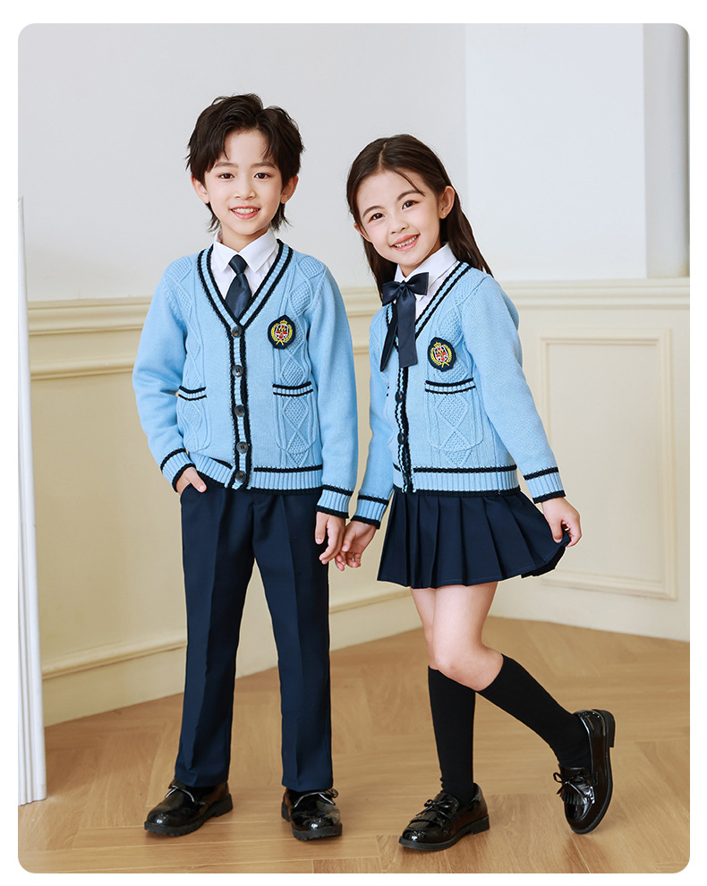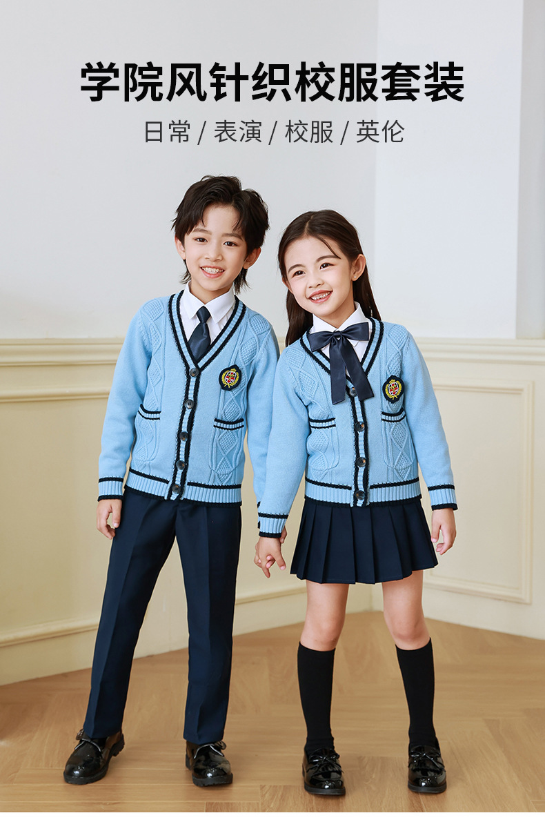 Uniforme escolar para estudiantes de primaria primavera y otoño ropa de clase de estilo universitario traje cardigan de estilo coreano para niños Jardín de Infantes de tres piezas británico Ropa de jardín