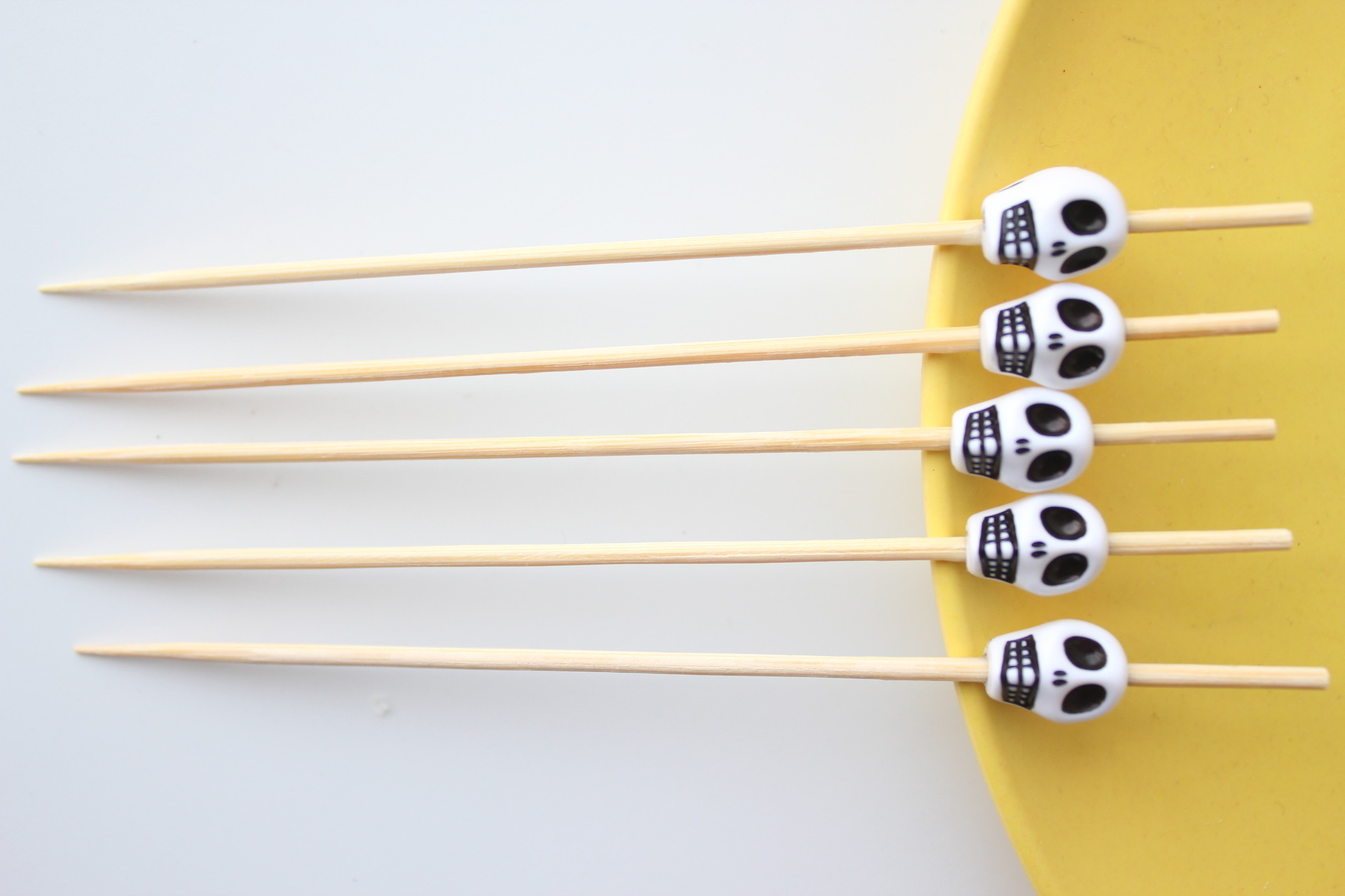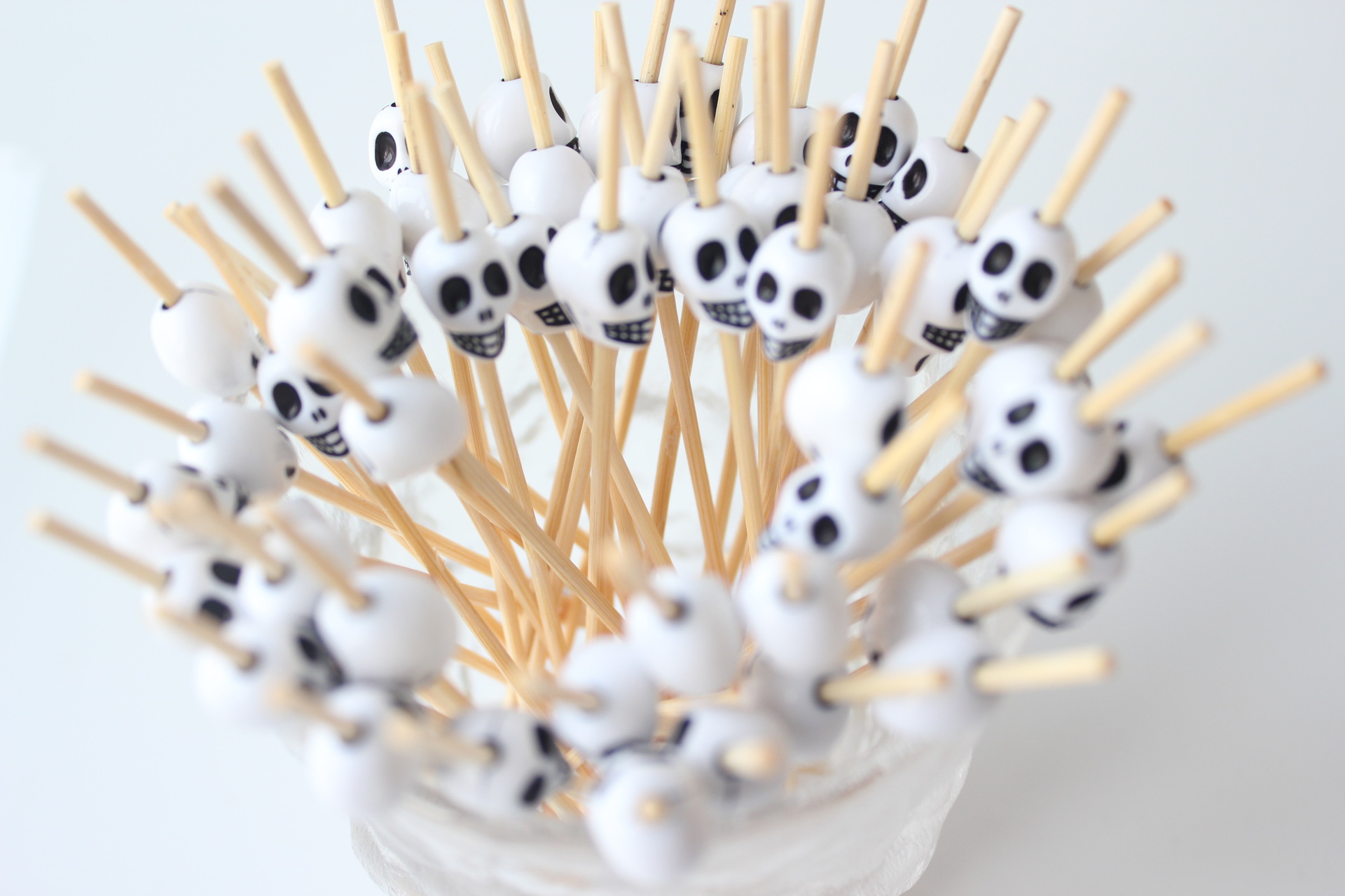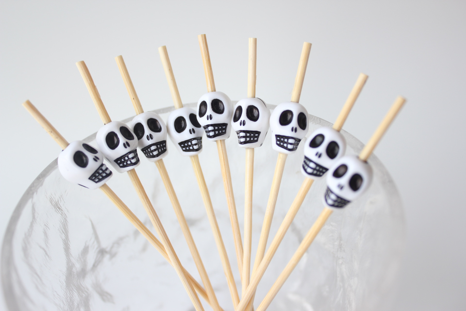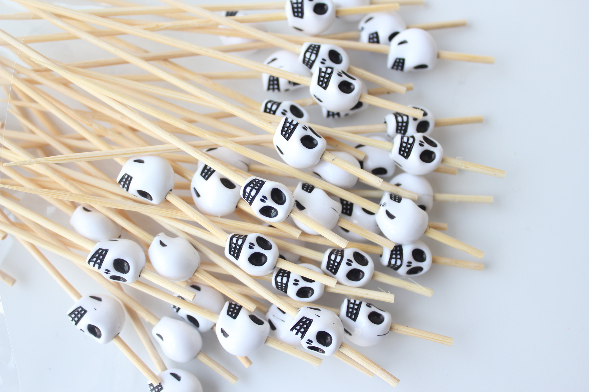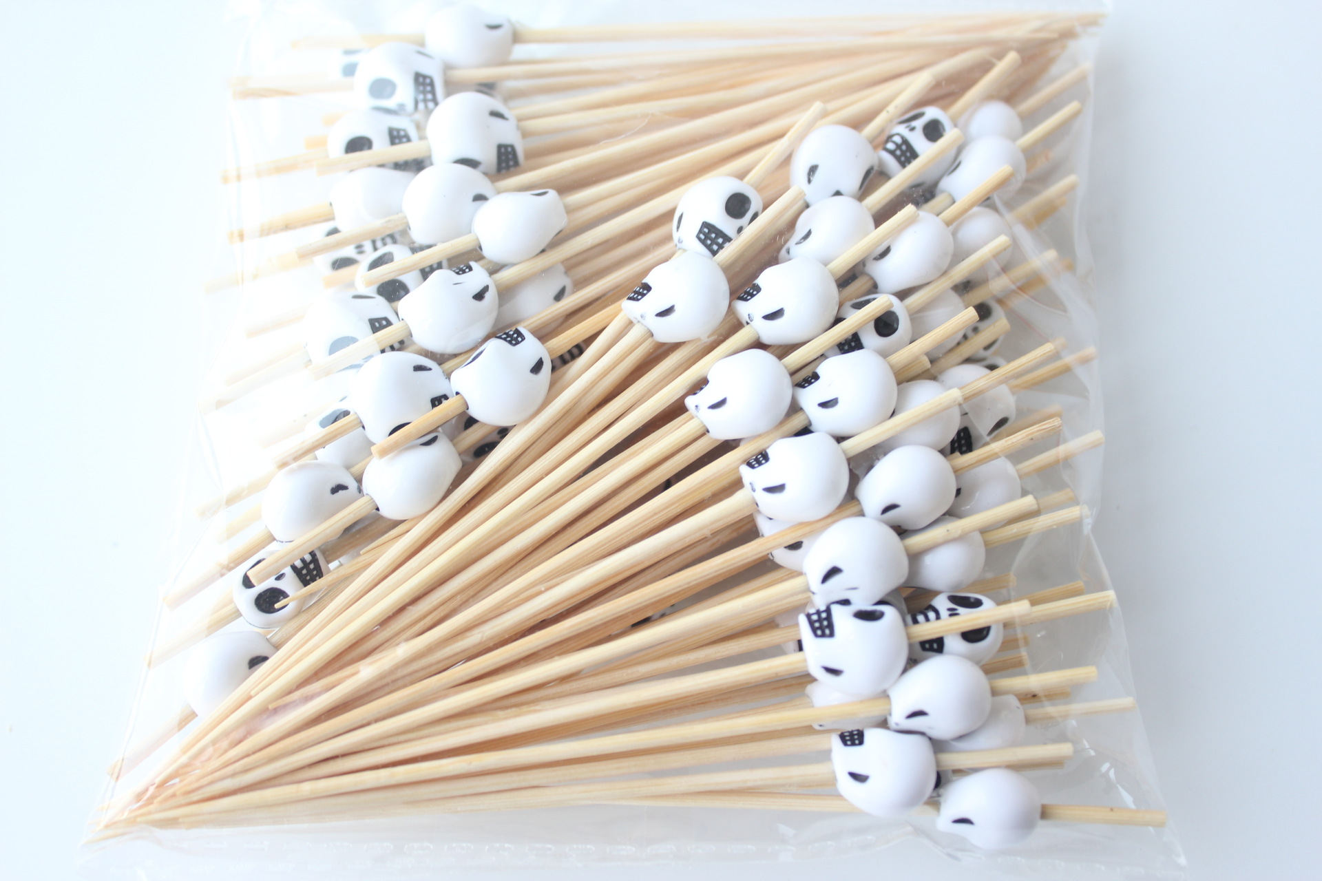 Halloween 10 × 12 White Skull Fruit Signo 100 pcs/paquete Cóctel creativo Palillo de bambú Palillo de dientes KTV Amazon