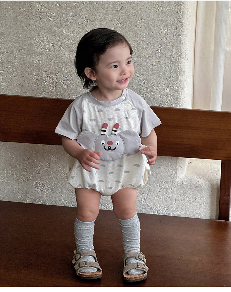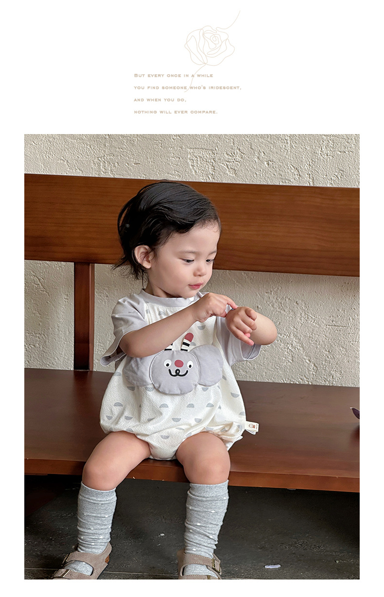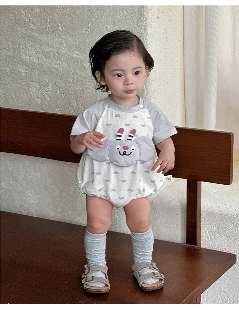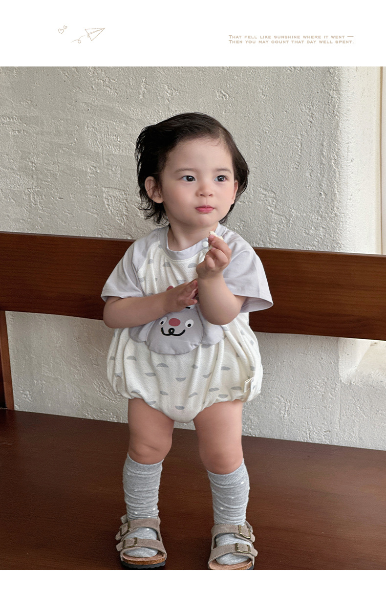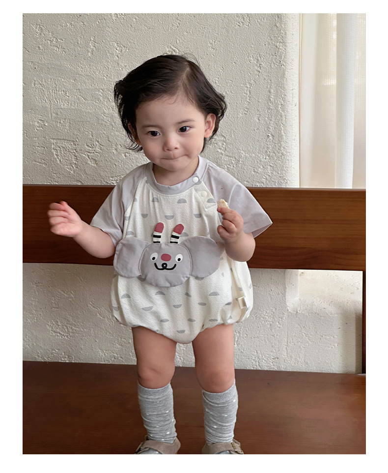 2025 ropa de bebé para hombres, estilo delgado de verano, dibujos animados, patrón tridimensional, mono para recién nacidos, ropa exterior, ropa de pedo