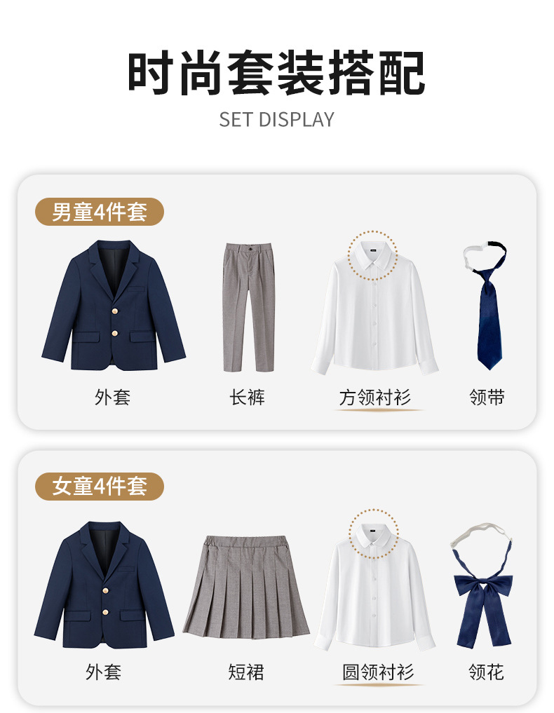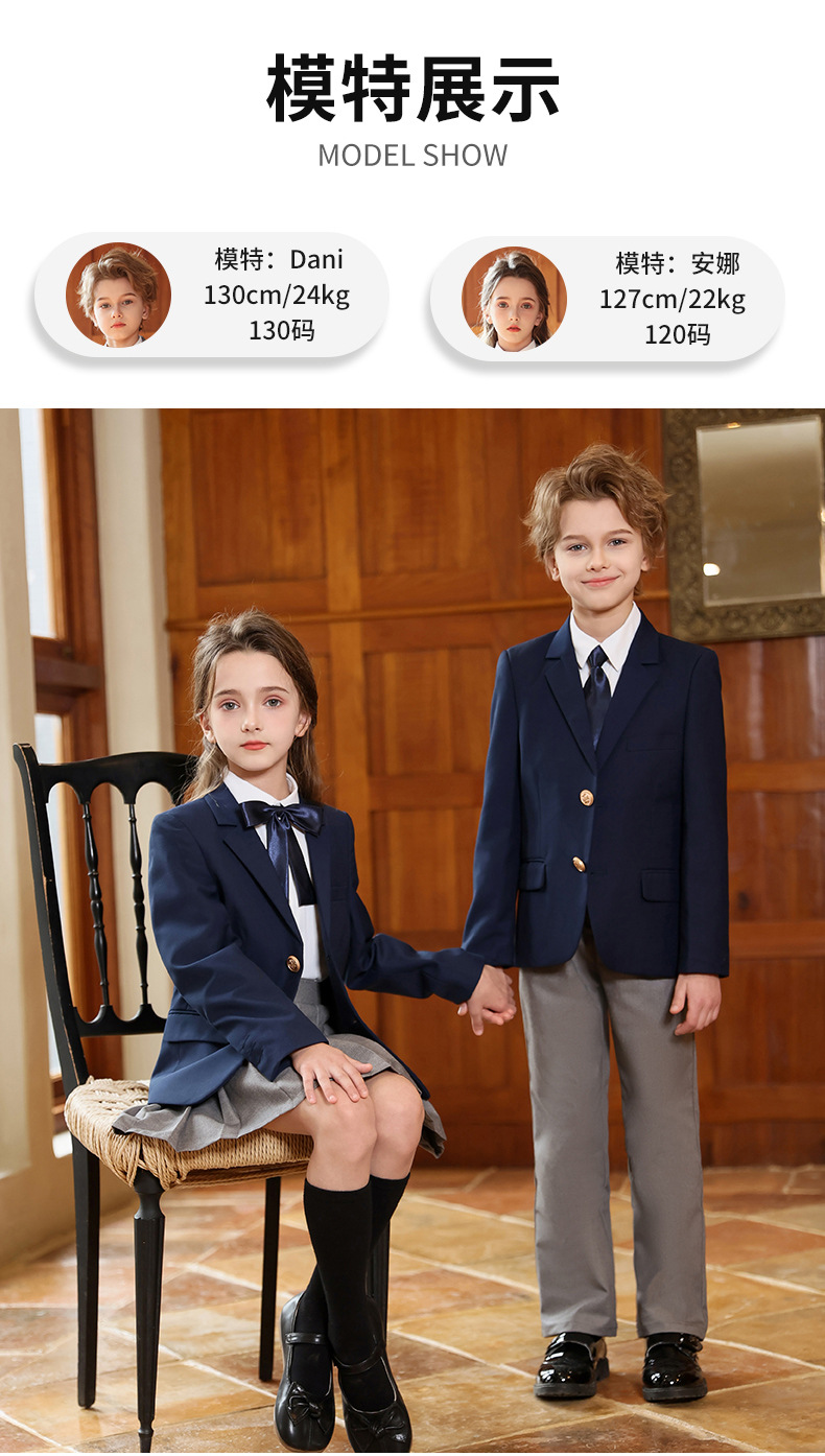 Uniformes escolares de niños primavera y otoño británico estilo de la universidad traje traje traje traje de clase traje de jardín de infantes traje de rendimiento