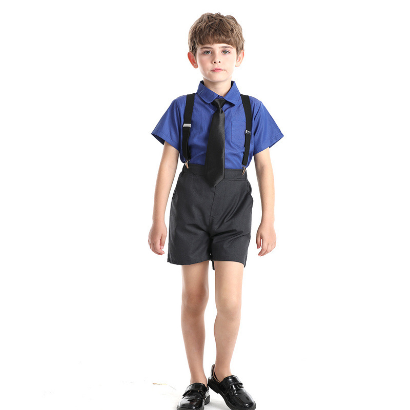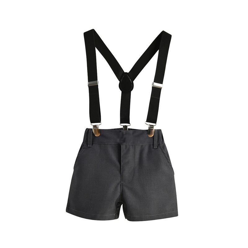 Verano de moda coreana corbata de color sólido camisa de manga corta para niños correa clip pantalones cortos vestido traje de rendimiento