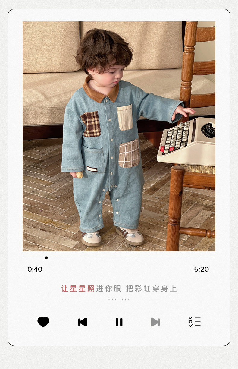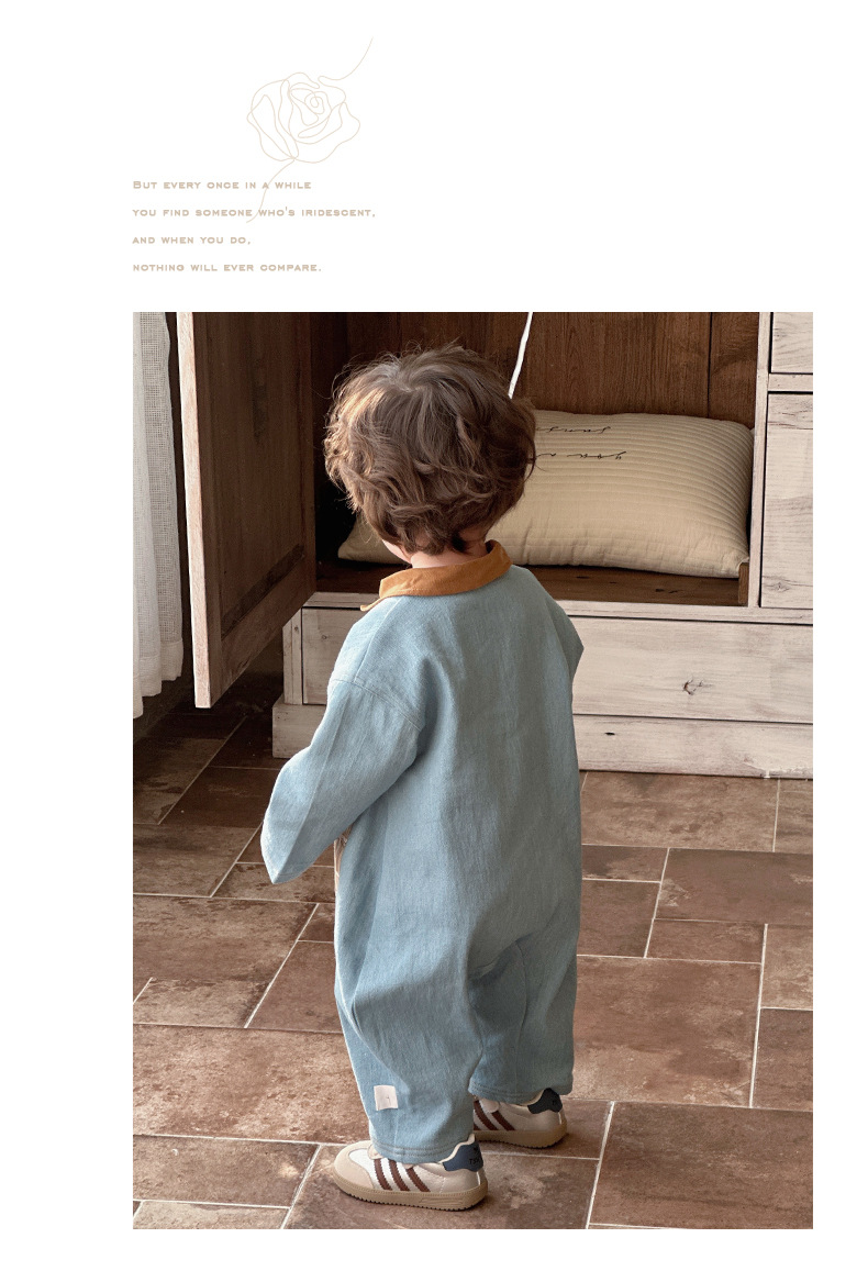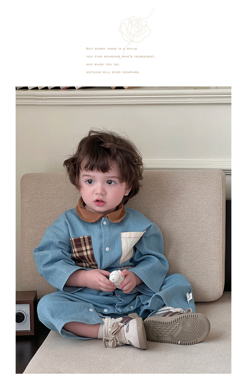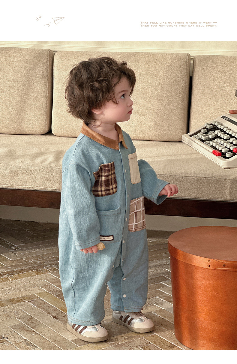 Primavera nuevo estilo bebé mono hombre bebé estilo occidental casual solapa de manga larga mameluco ropa de casa para salir gatear