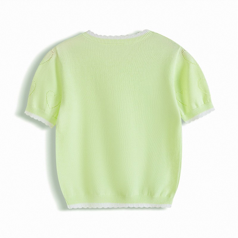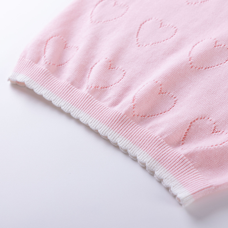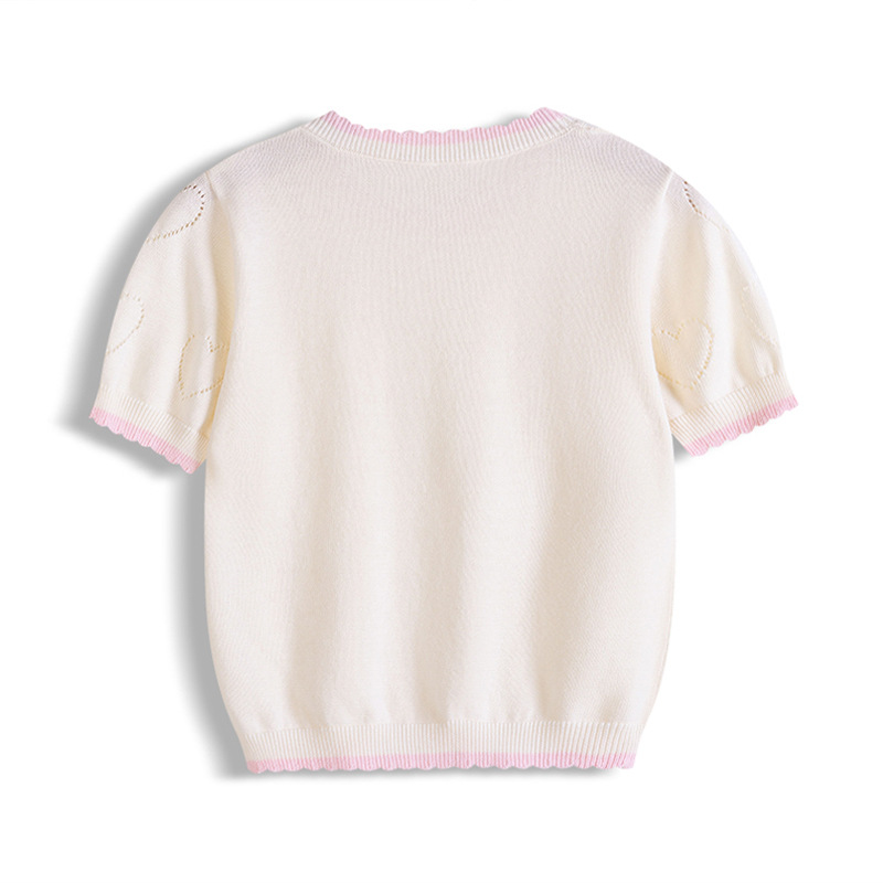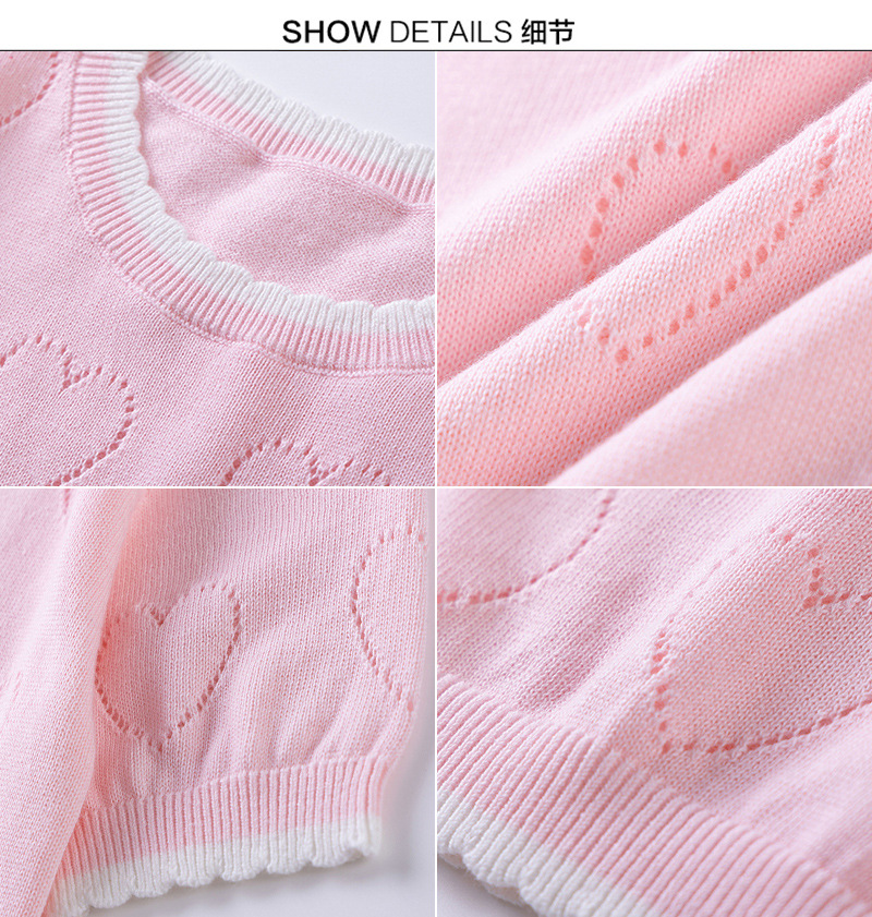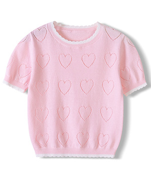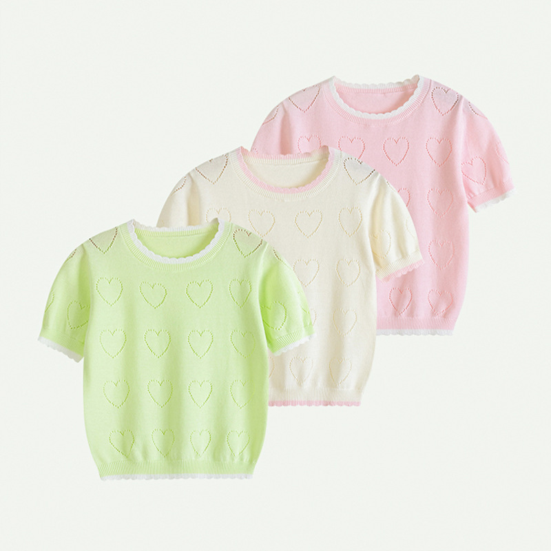 Camiseta hueca de amor de encaje de cuello redondo transfronterizo para niñas de manga corta de verano fino para niñas