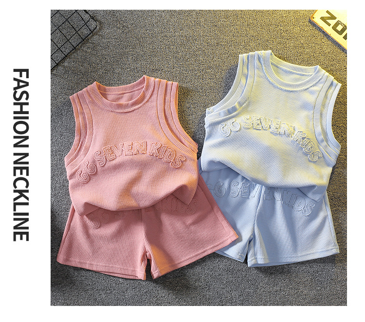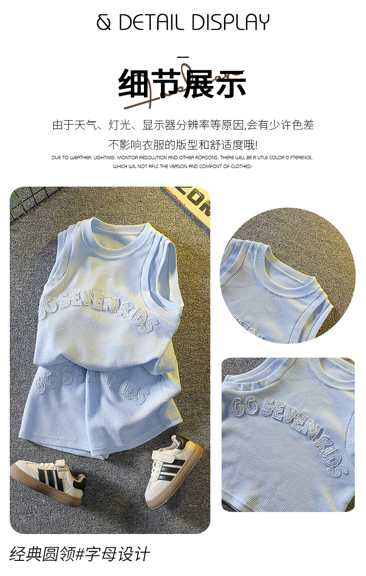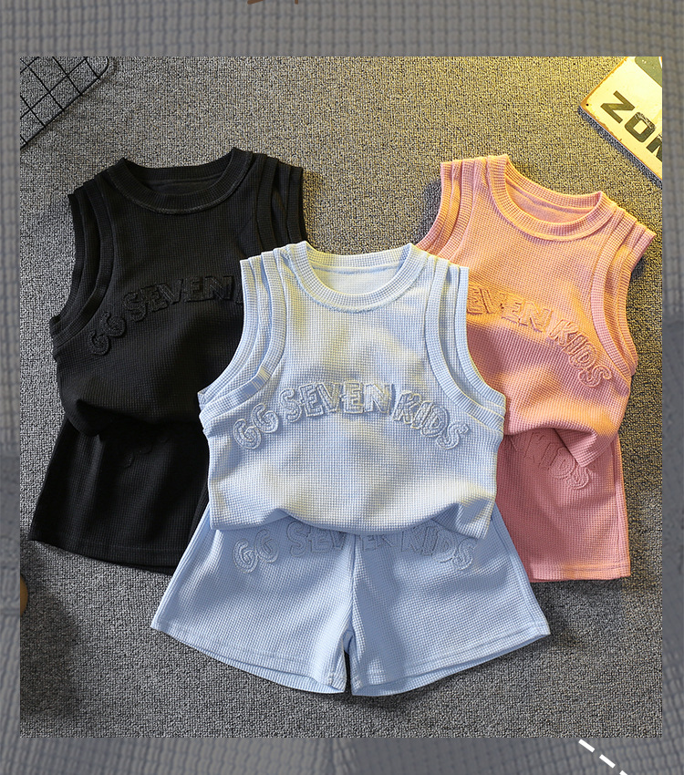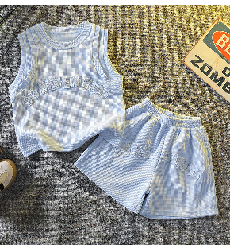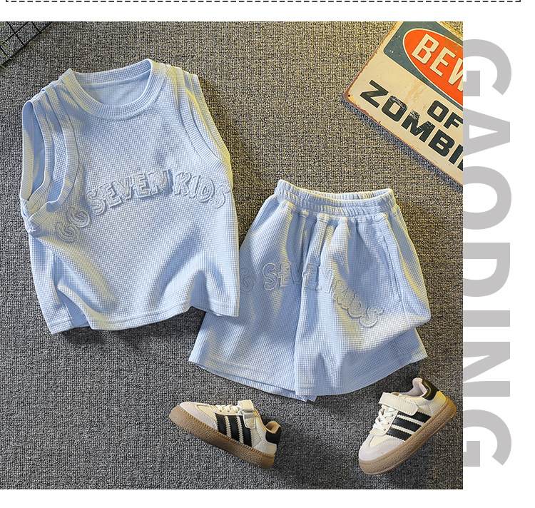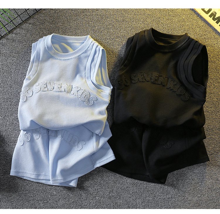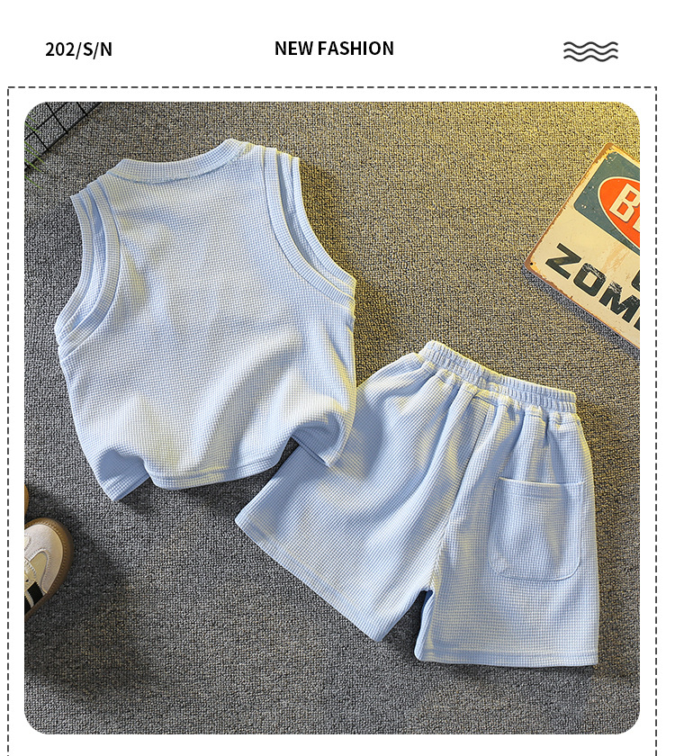 7408 Traje de chaleco para niños Ropa de verano para niños Pantalones cortos sin mangas de moda y guapos 2024 Nuevos deportes callejeros de moda para bebés