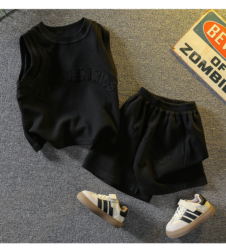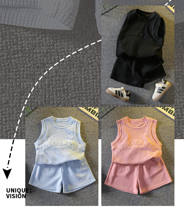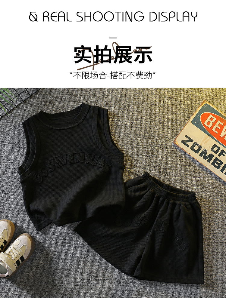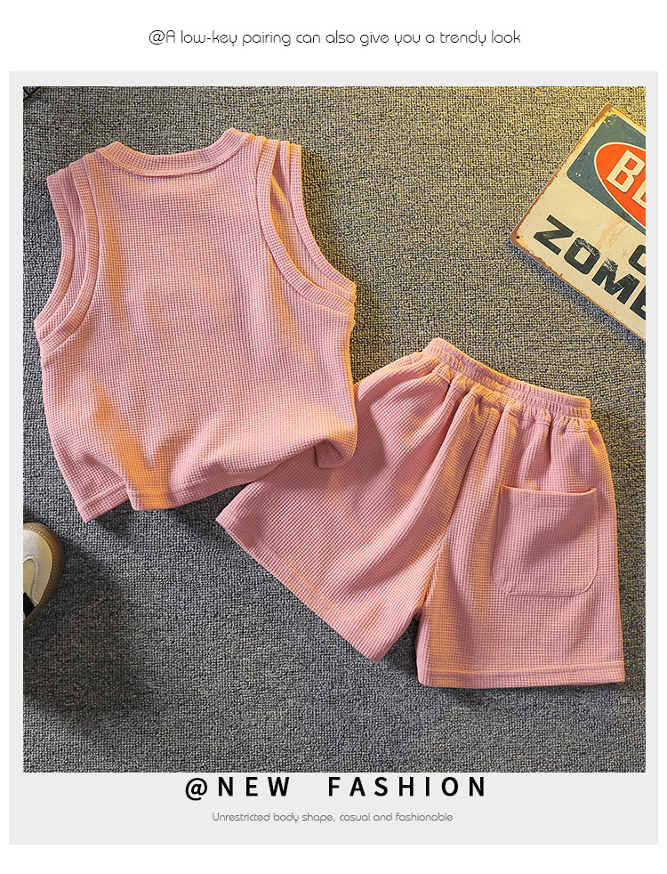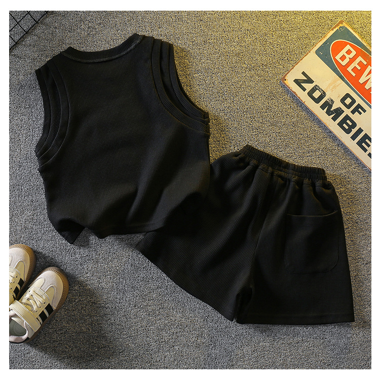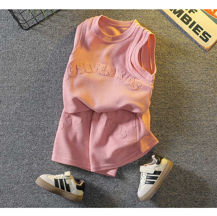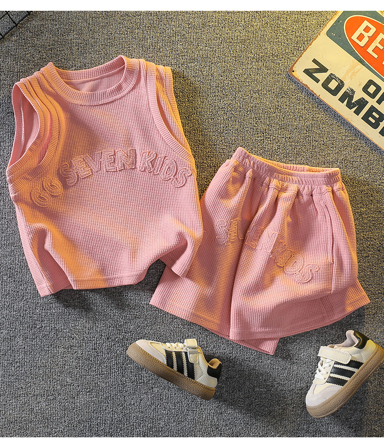 7408 Traje de chaleco para niños Ropa de verano para niños Pantalones cortos sin mangas de moda y guapos 2024 Nuevos deportes callejeros de moda para bebés