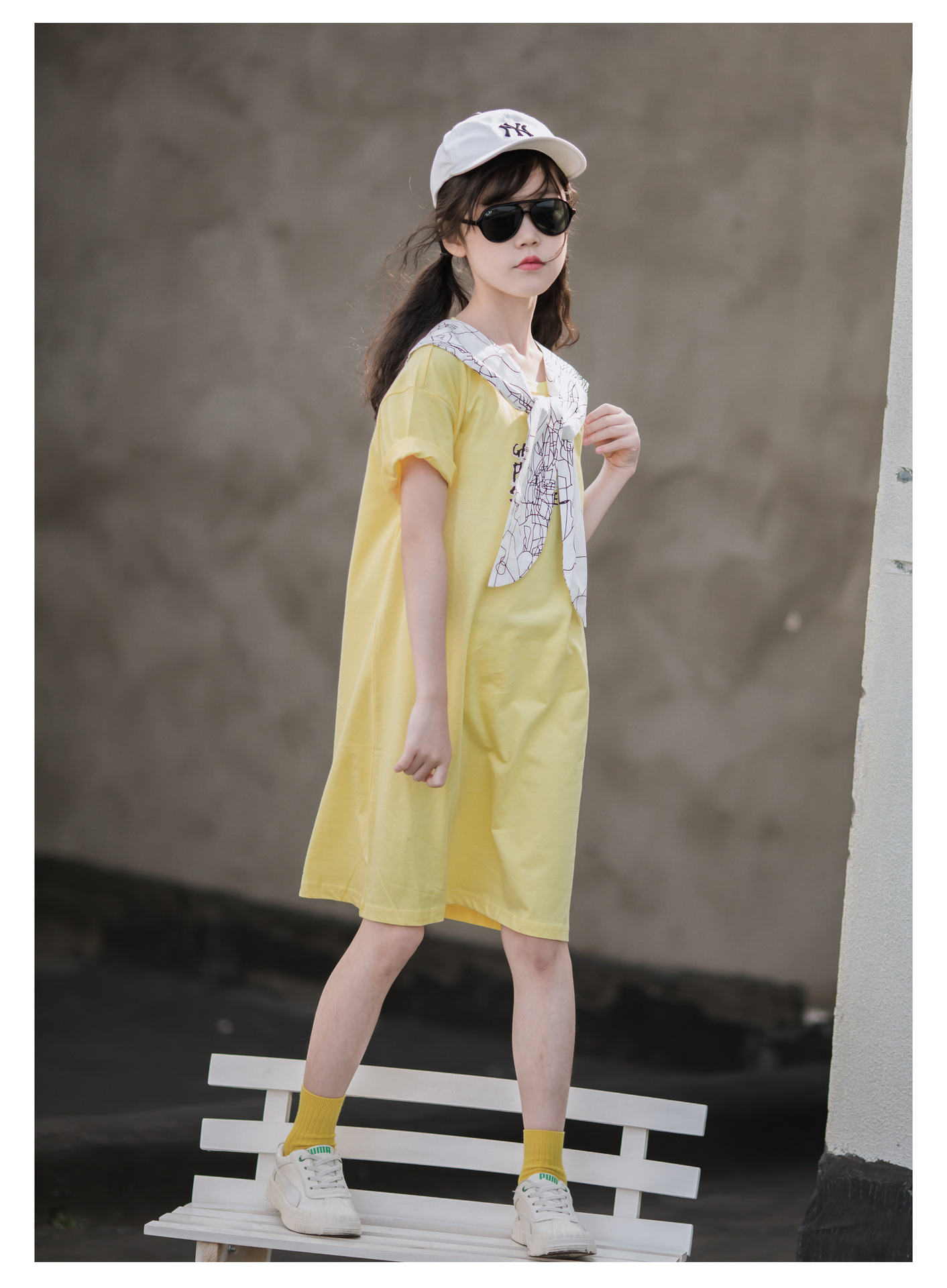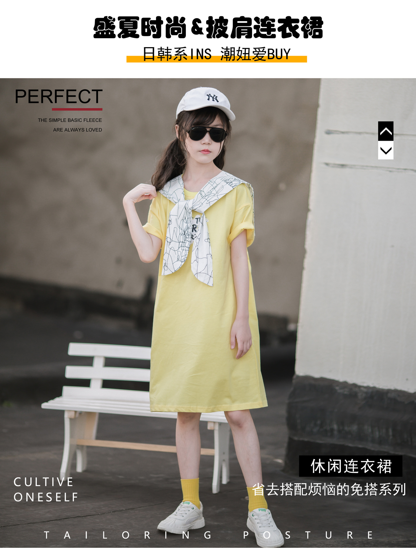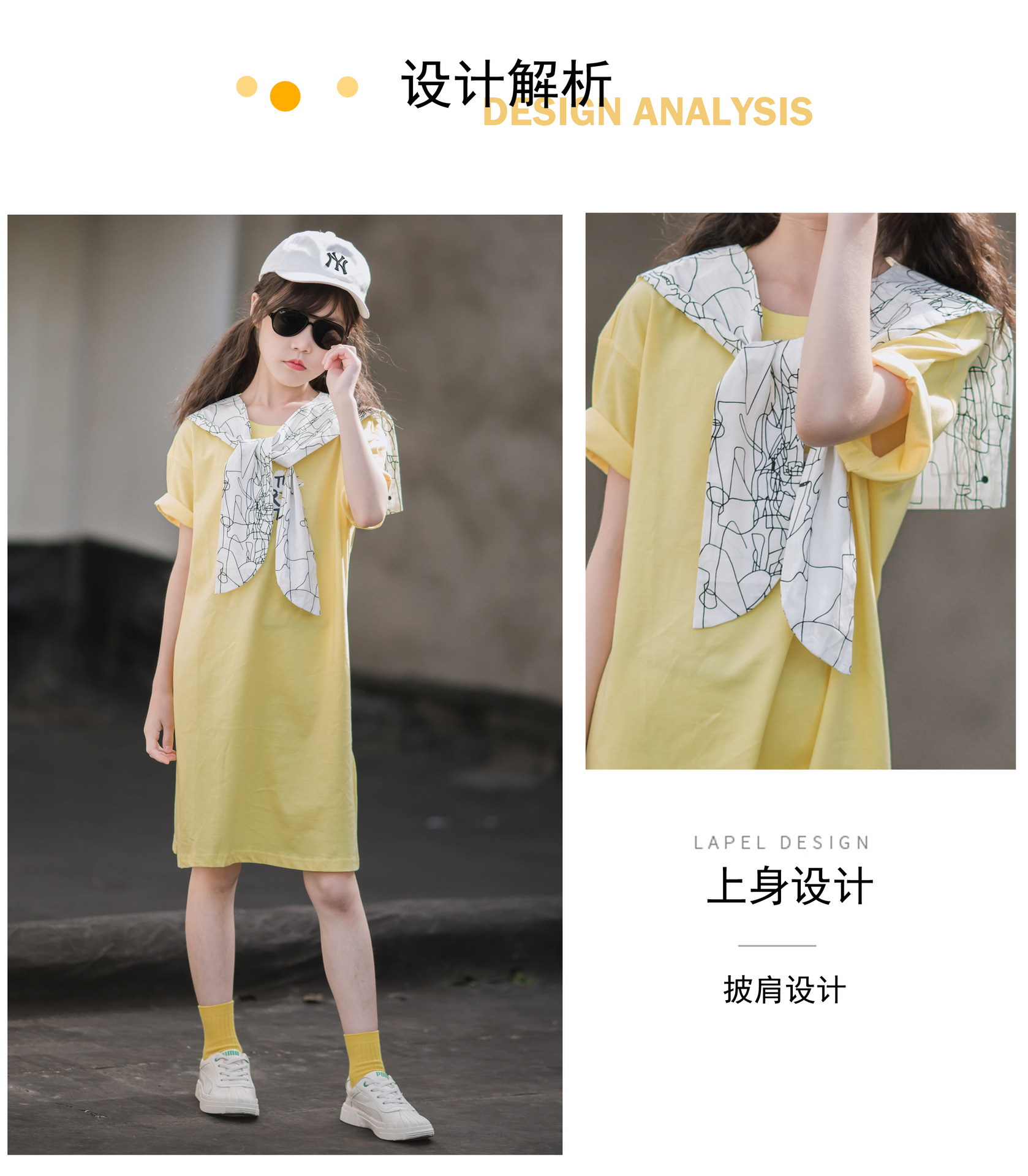 ¡Cuello de chal! Vestido de verano para niñas 2024 nuevo estilo vestido de verano para niños de mediana edad y estilo occidental de moda para niños