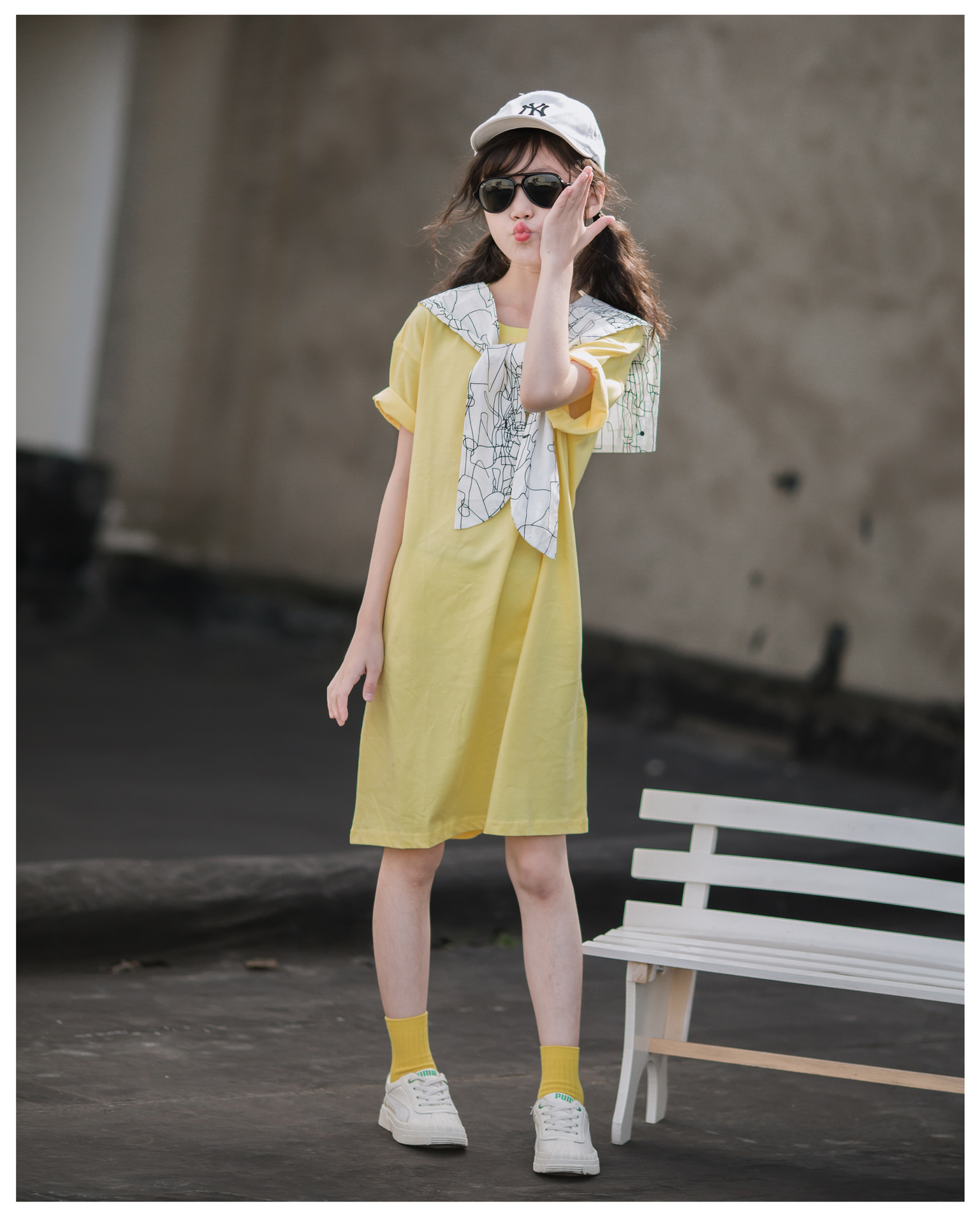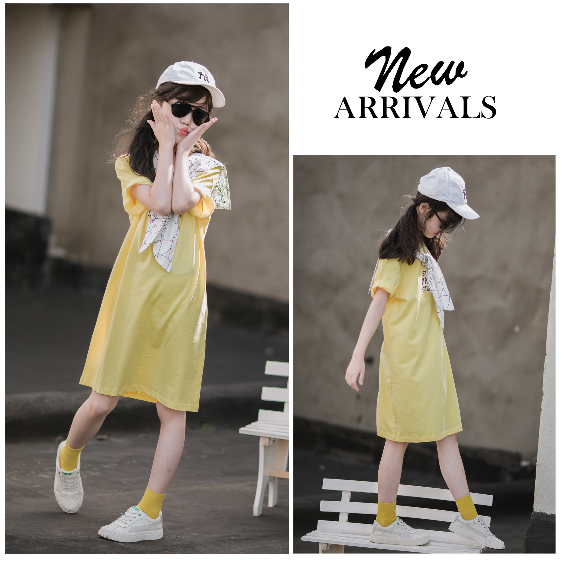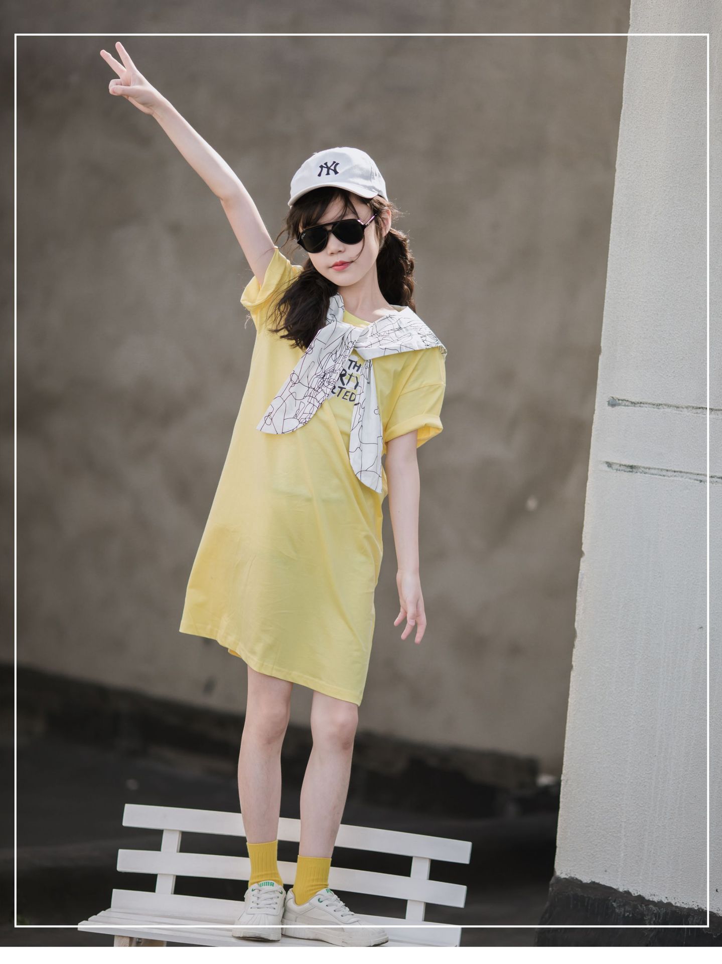 ¡Cuello de chal! Vestido de verano para niñas 2024 nuevo estilo vestido de verano para niños de mediana edad y estilo occidental de moda para niños