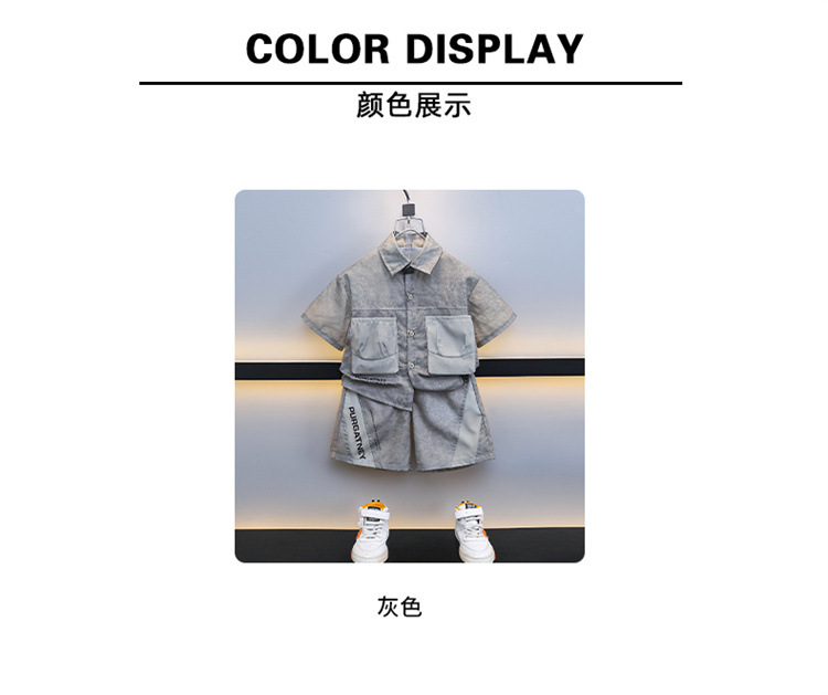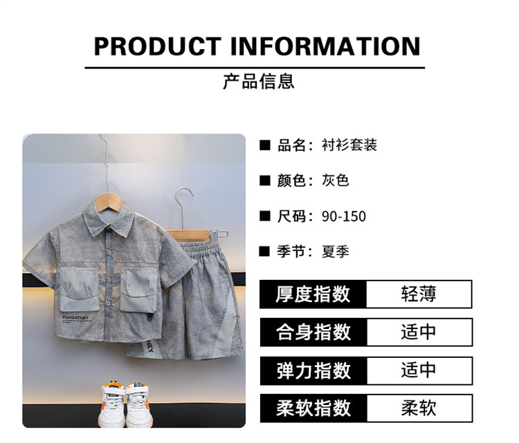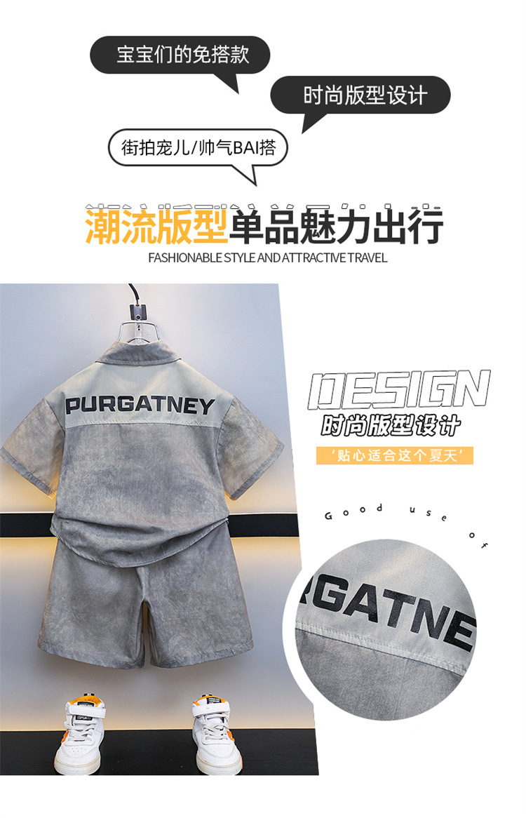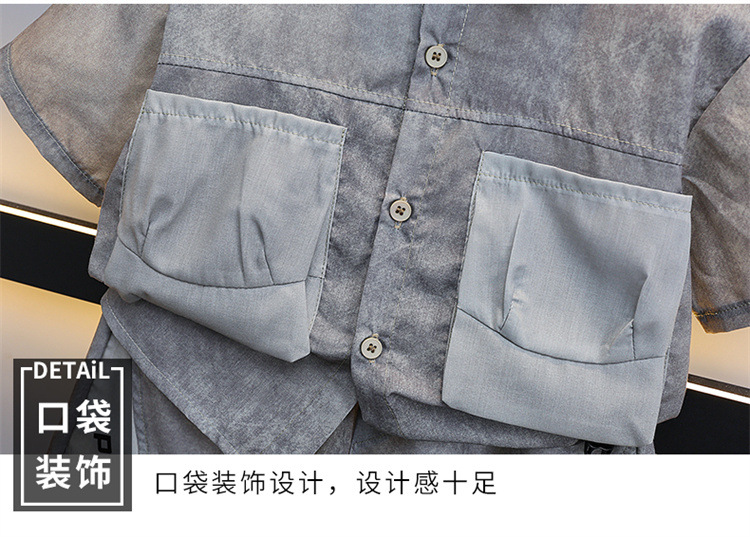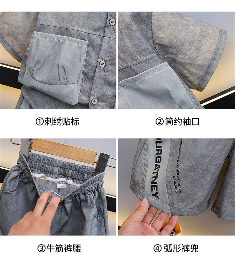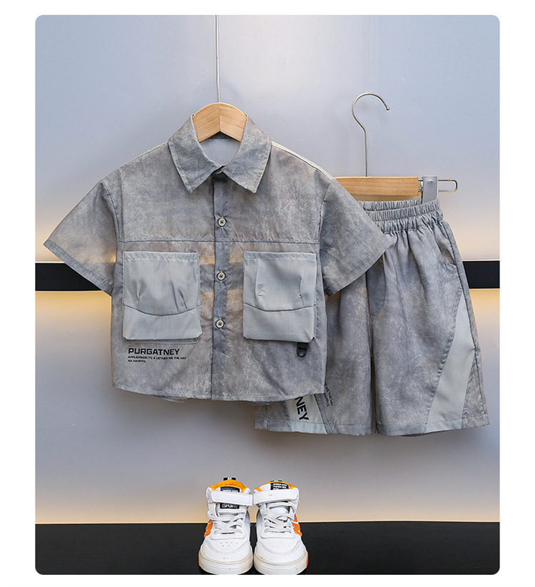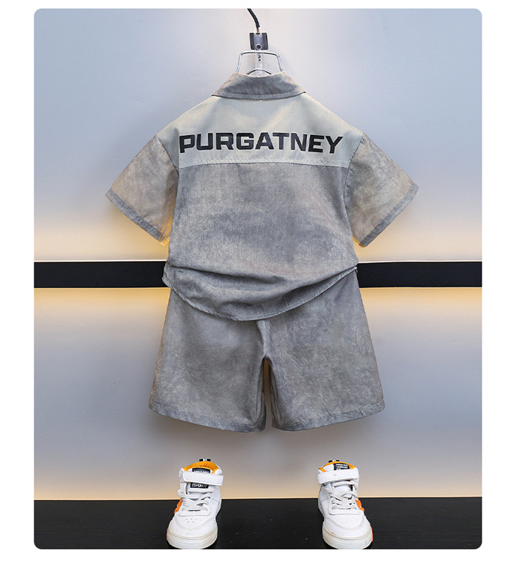 7205 Traje de camisa para niños 2025 Nuevo estilo de verano para niños de moda Estilo fino de manga corta Ropa de calle frita Estilo occidental Estilo de verano