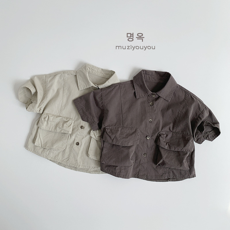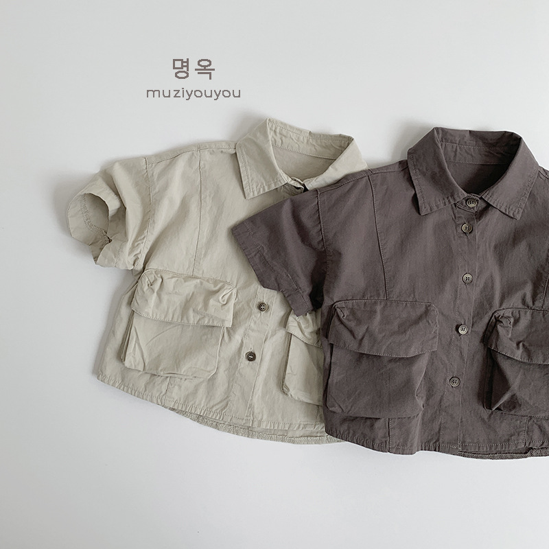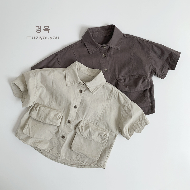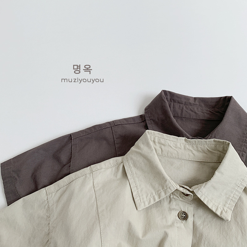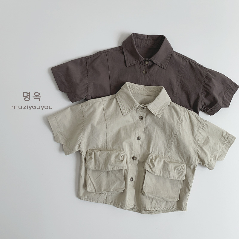 Ropa para niños Camisas de color sólido para niños y niñas 2025 primavera y verano nuevos niños japoneses y coreanos de manga corta de algodón fino ropa de trabajo superior