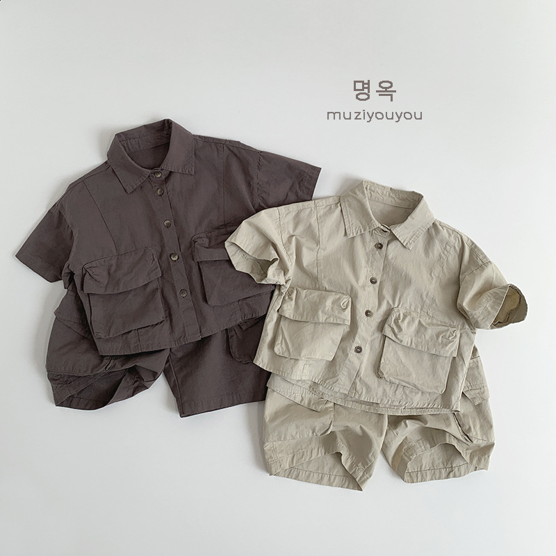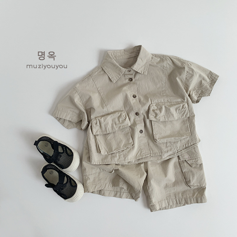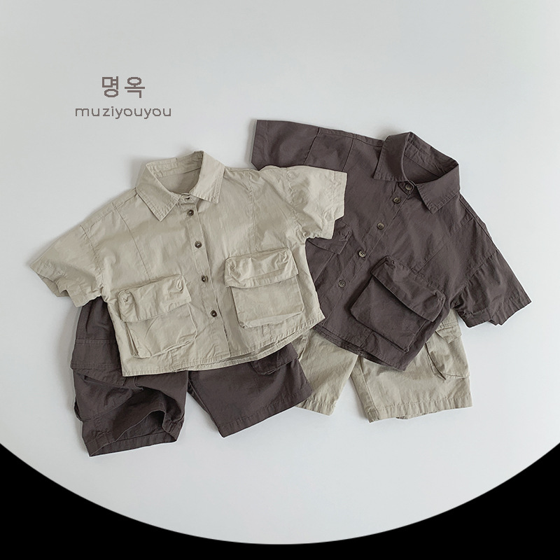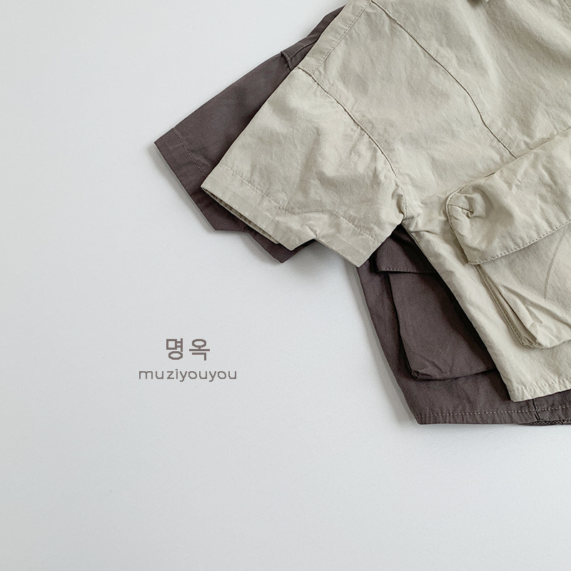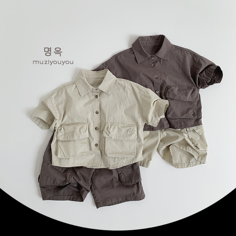 Ropa para niños Camisas de color sólido para niños y niñas 2025 primavera y verano nuevos niños japoneses y coreanos de manga corta de algodón fino ropa de trabajo superior