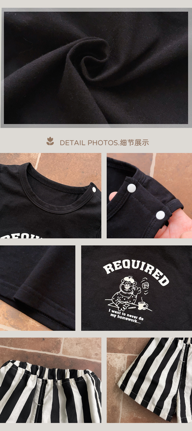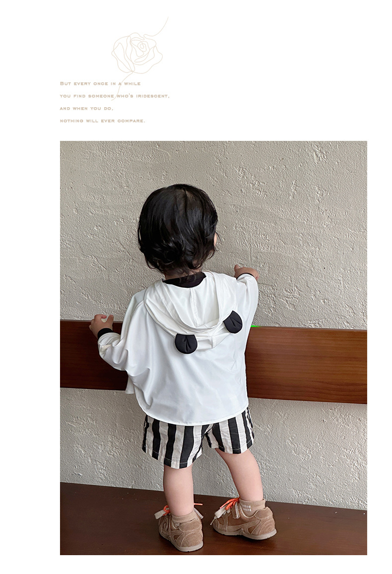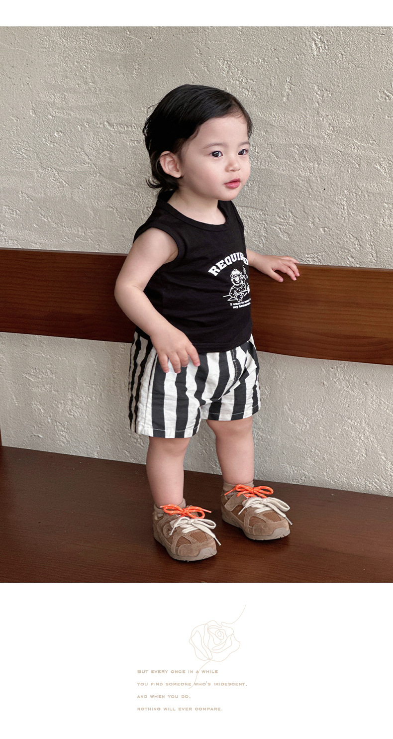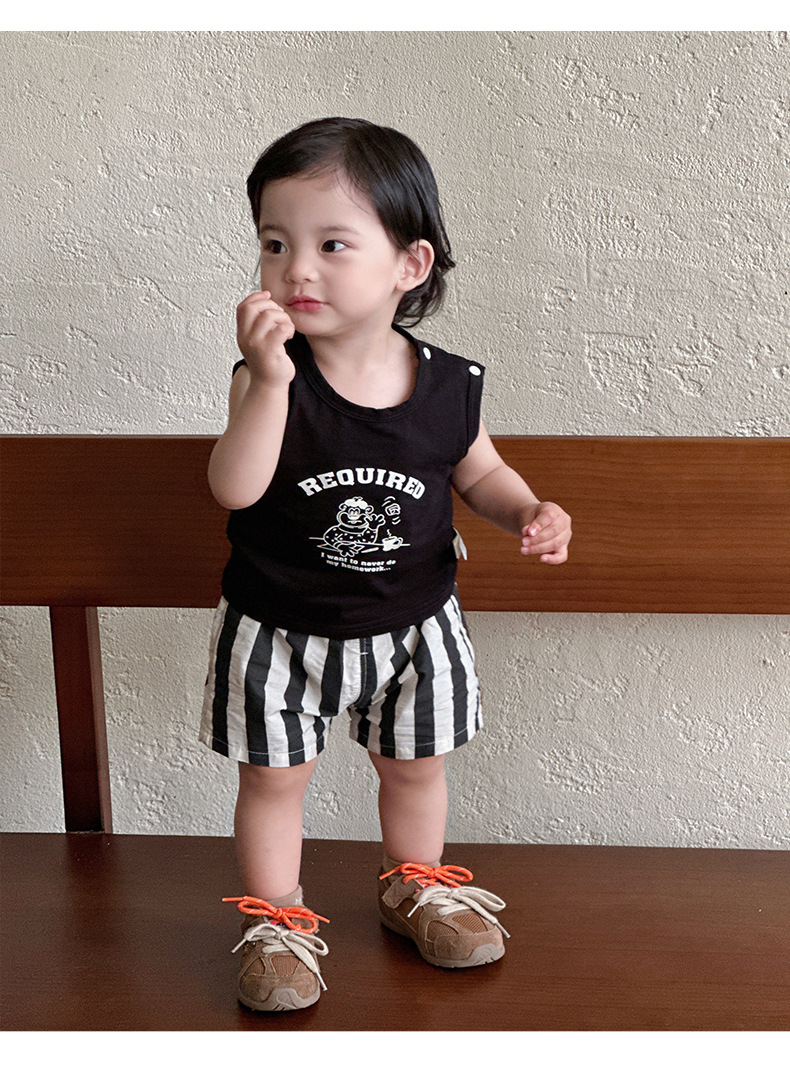 Traje de estilo coreano pequeño chaleco de bebé de verano con pantalones cortos a rayas, lindo juego de tres piezas de capa de panda