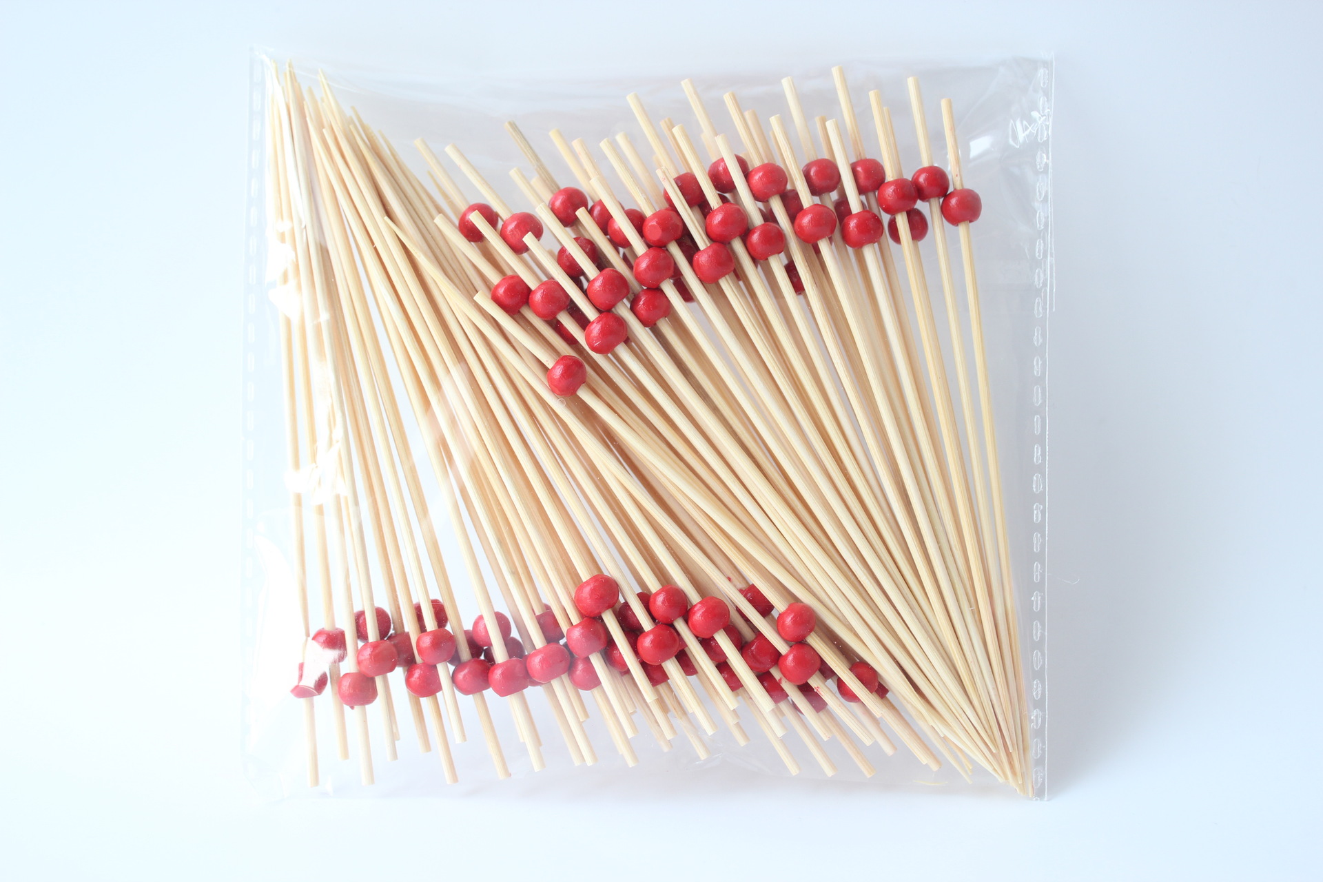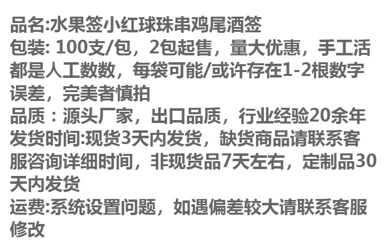 Palillo de fruta desechable varilla blanca bola roja perlas Arte Creativo palillo hamburguesa palo cóctel Tenedor de fruta celebridad de Internet