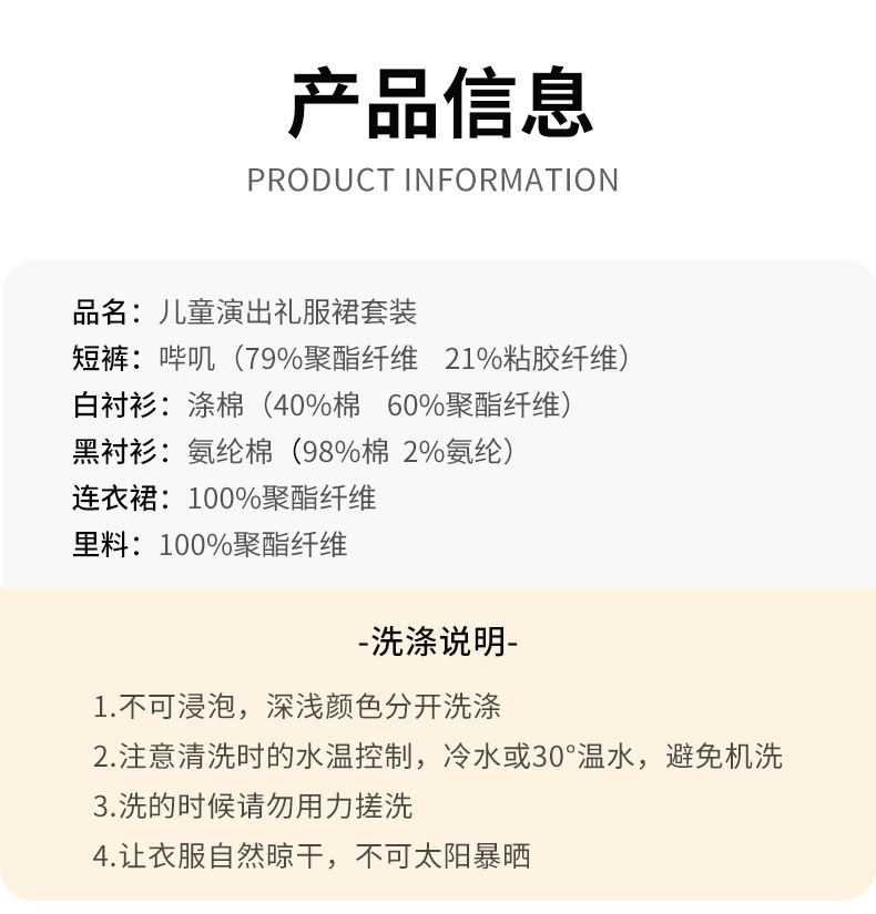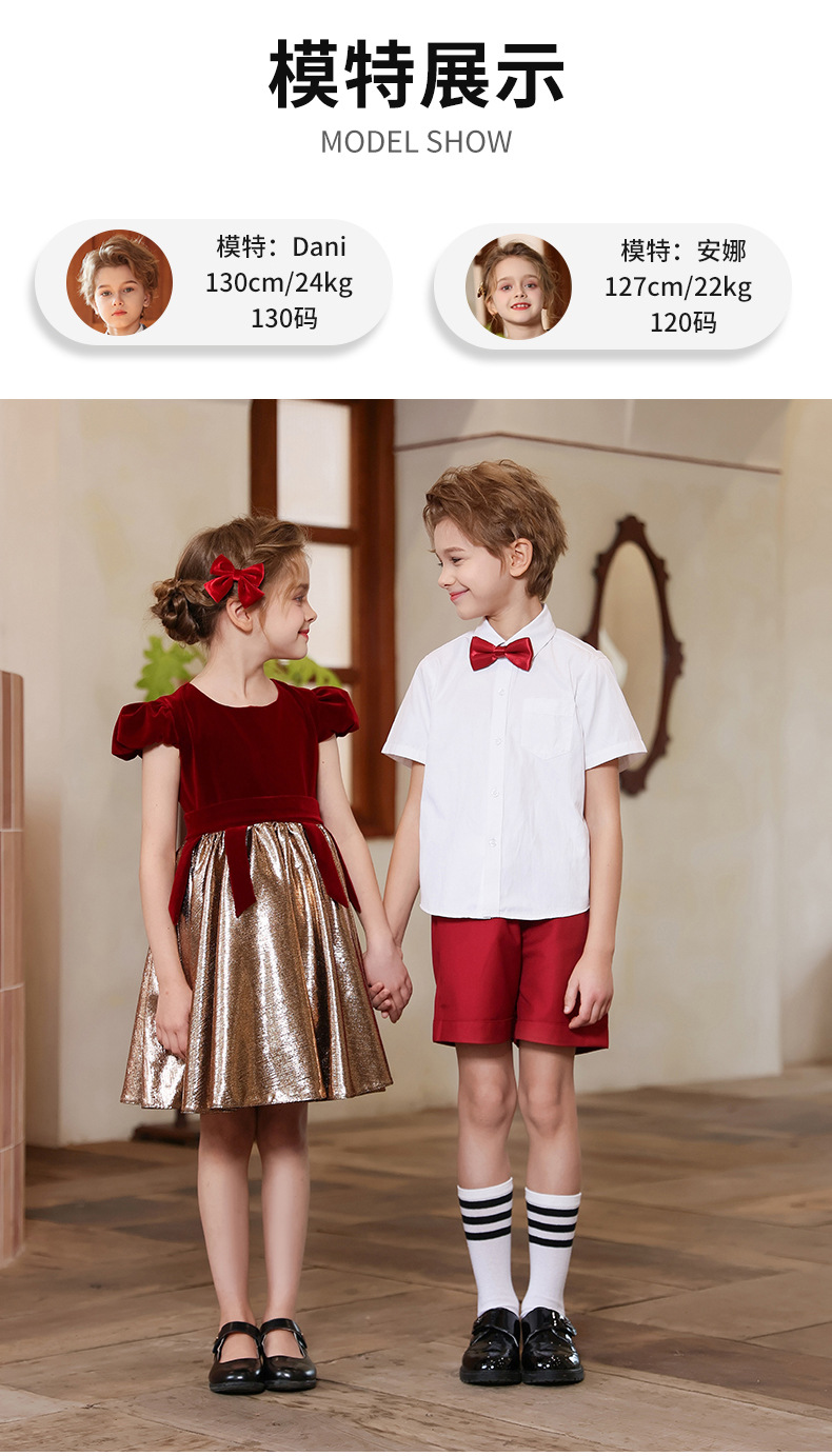 Traje de coro para niños Traje de actuación para el día del niño de jardín de infantes Vestido de anfitrión de escuela primaria y secundaria Concurso de recitación de poesía Traje de actuación