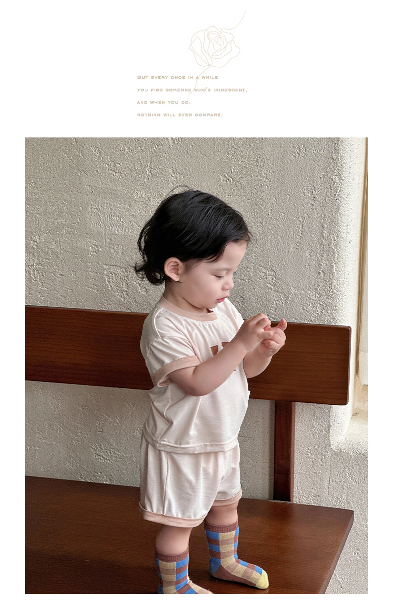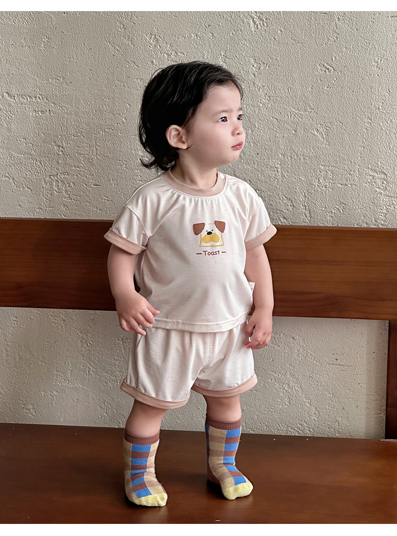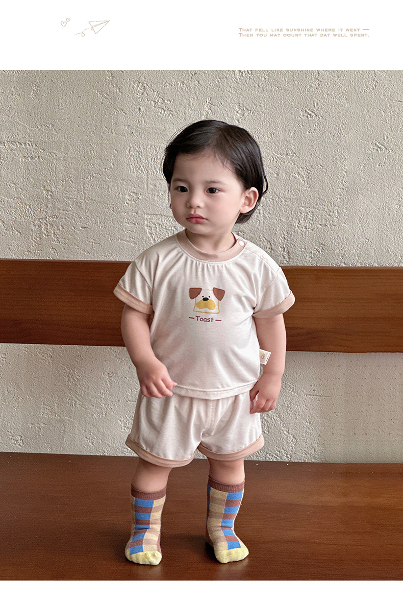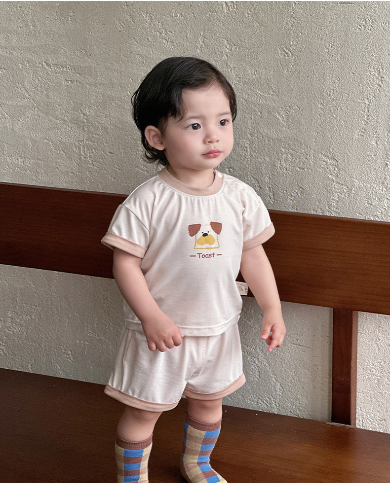 Traje para niños nuevo estilo ropa de verano para niños estilo coreano nuevo traje de pantalones cortos de manga corta para bebés y niños pequeños fuera de dos piezas