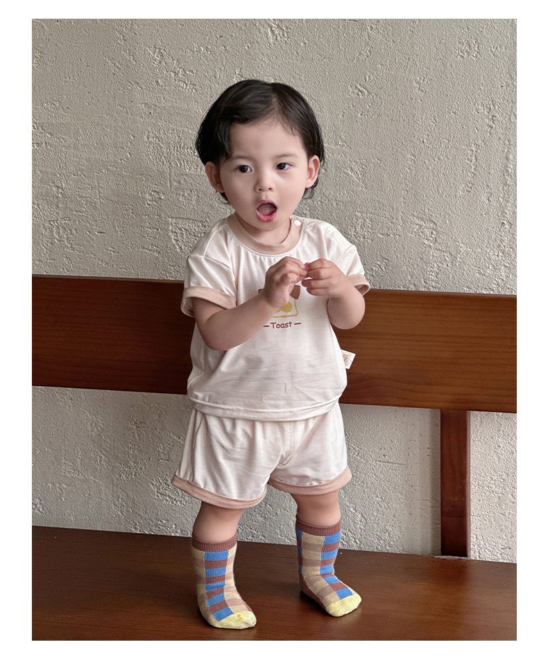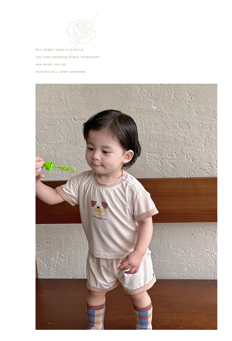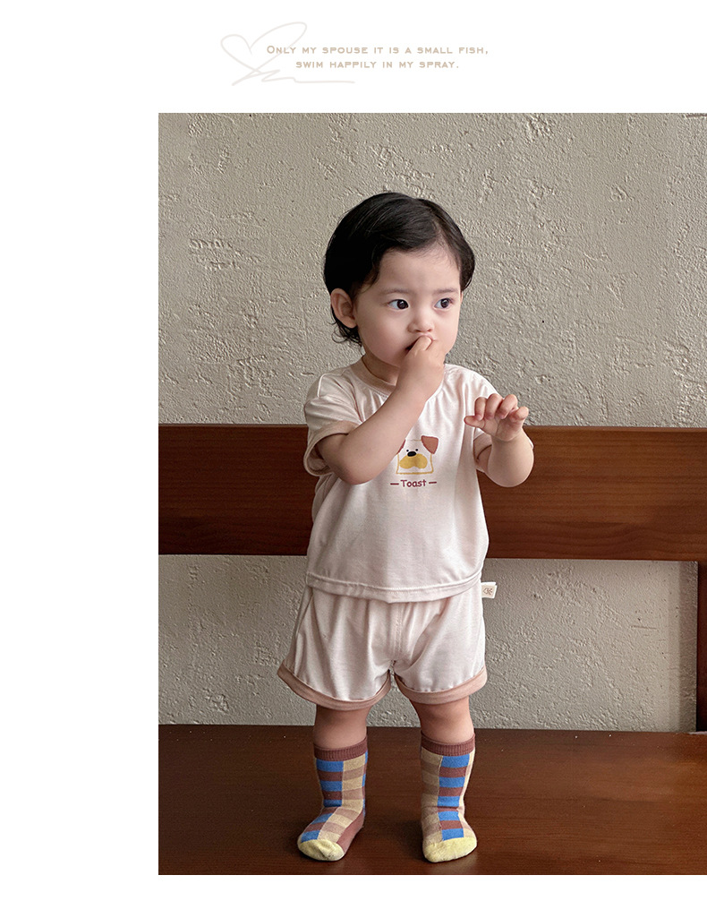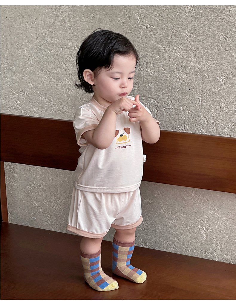 Traje para niños nuevo estilo ropa de verano para niños estilo coreano nuevo traje de pantalones cortos de manga corta para bebés y niños pequeños fuera de dos piezas