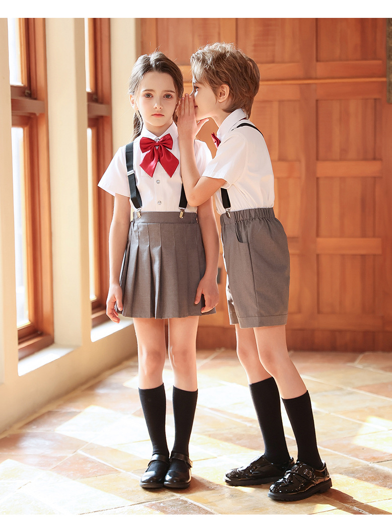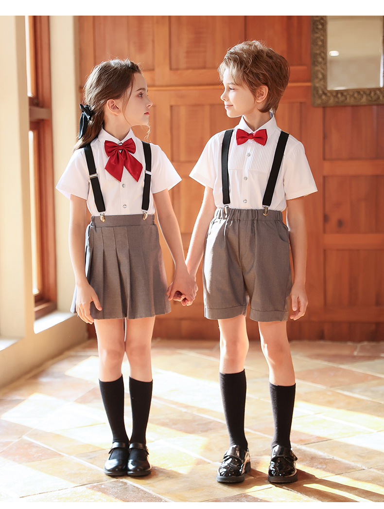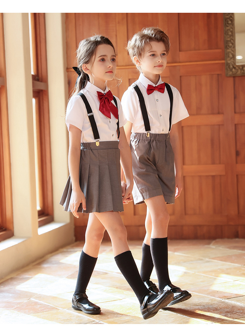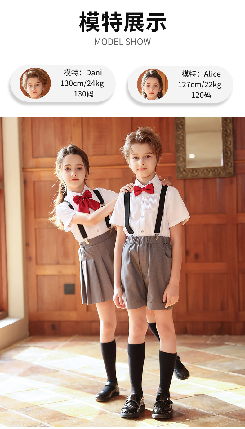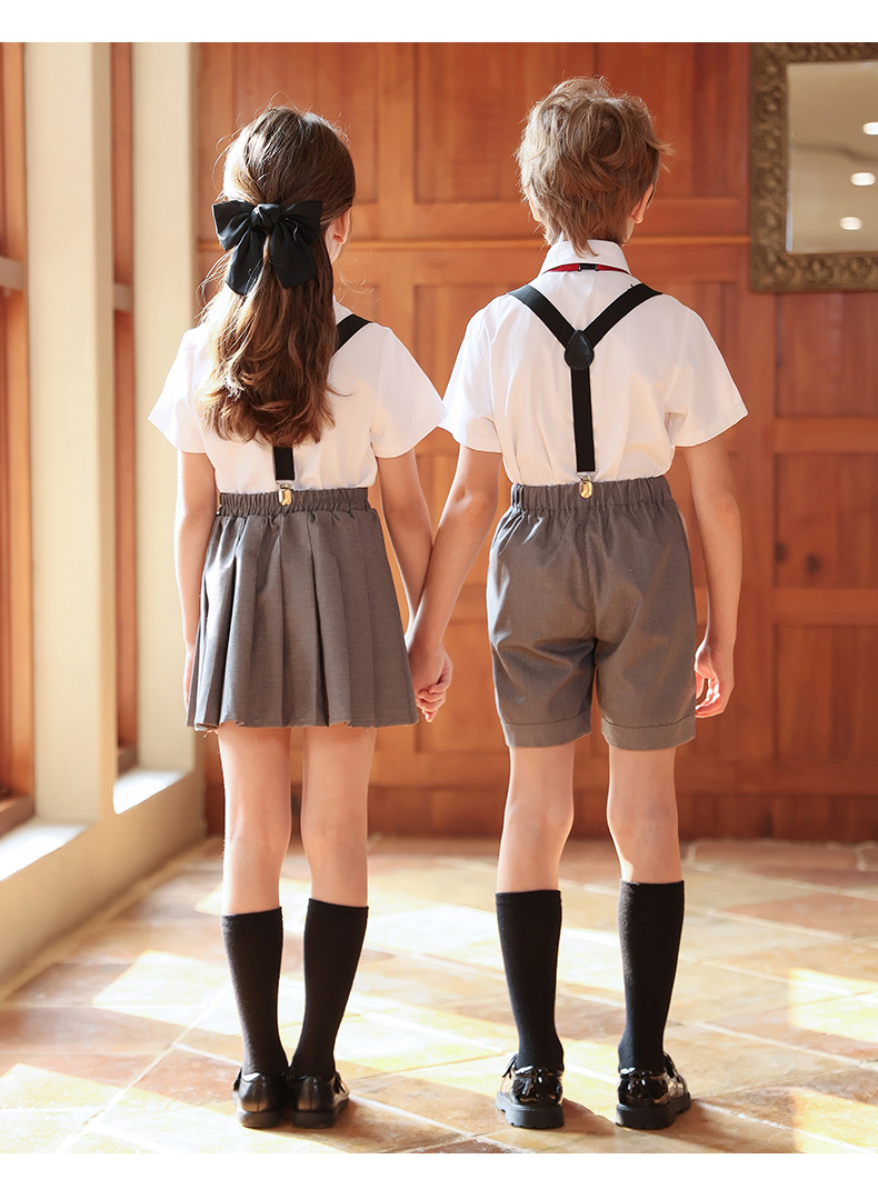 Trajes de interpretación de coro de verano para niños, trajes de tirantes de estilo británico para escuelas primarias y secundarias, uniformes de jardín de infantes, uniformes de clase de graduación