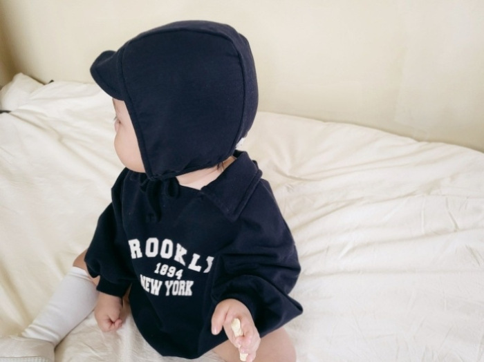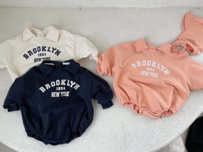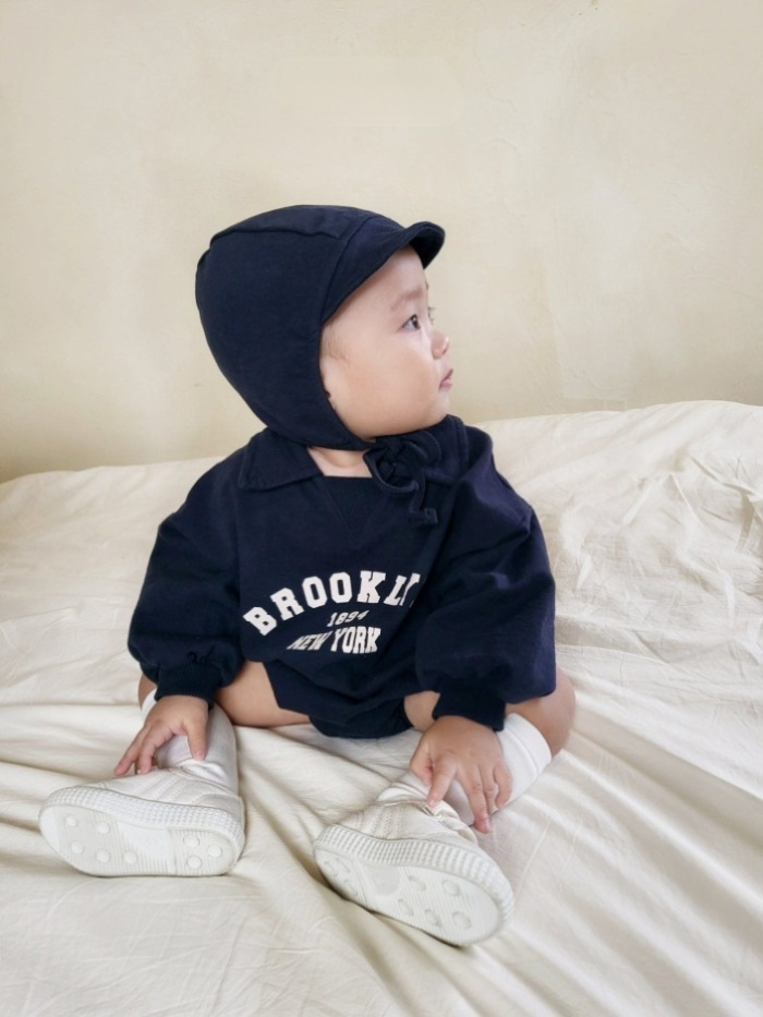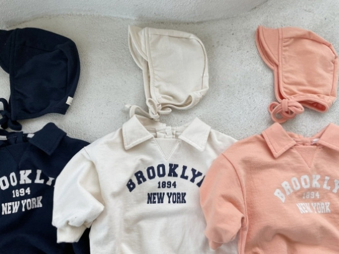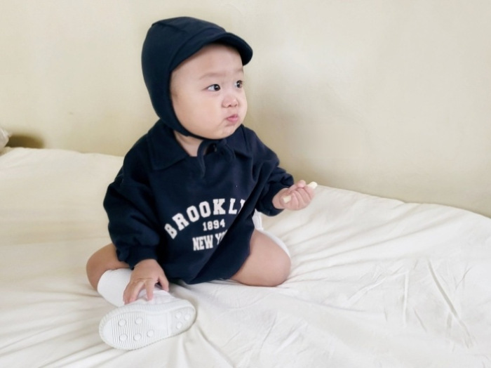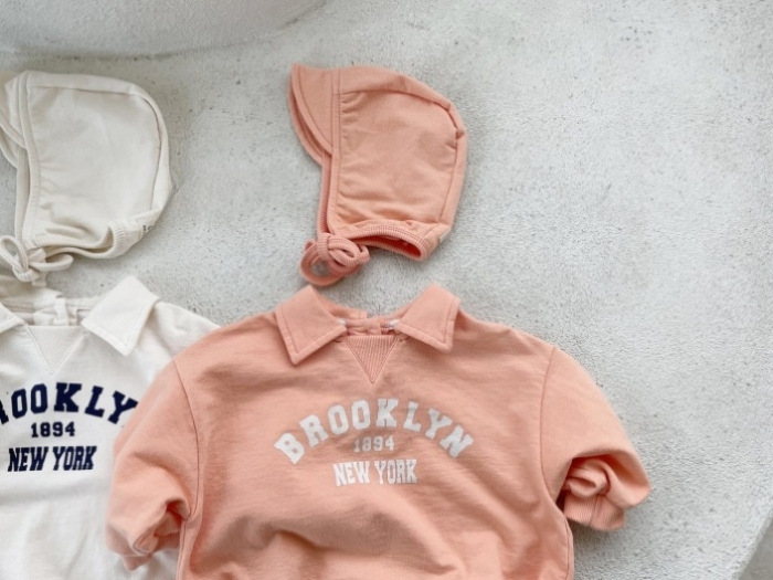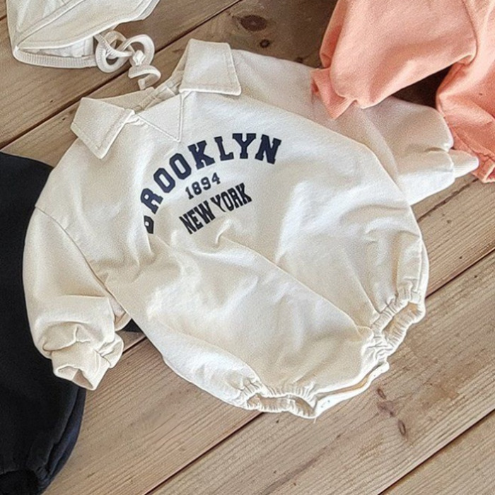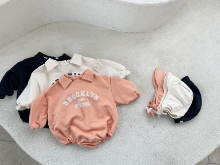 Estilo coreano niños y niñas bebé solapa suéter con capucha mameluco ins recién nacido algodón casual impreso moda mameluco
