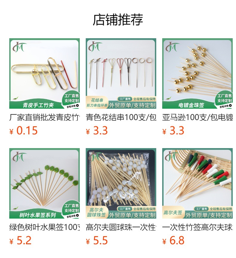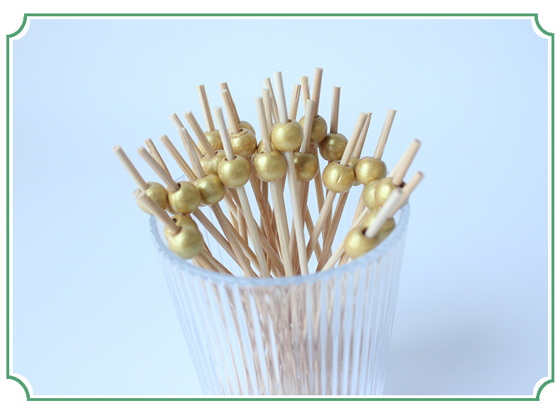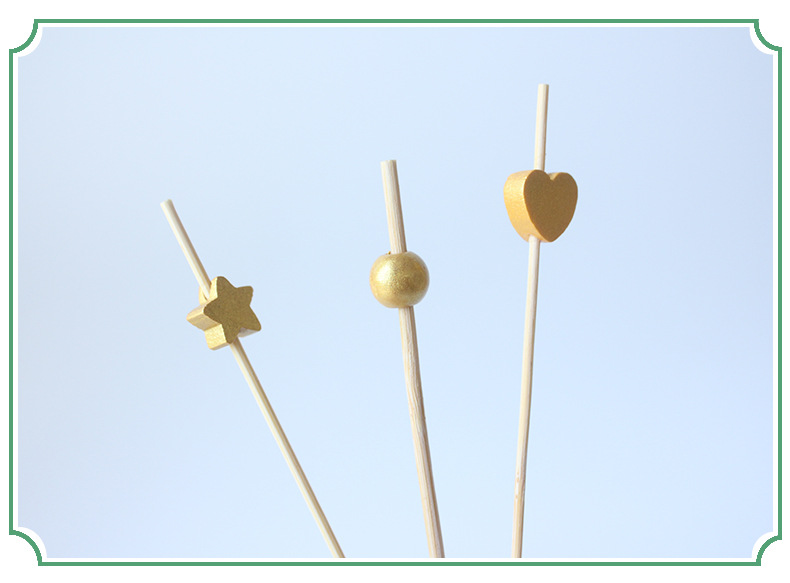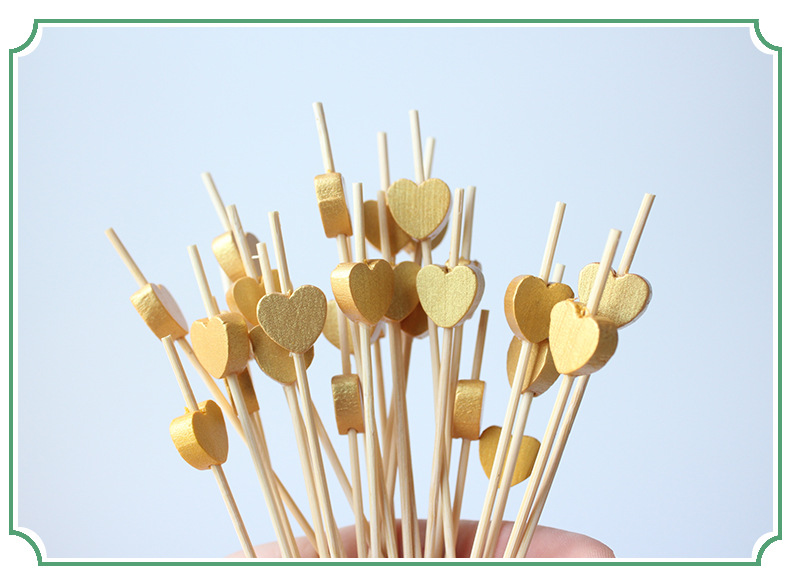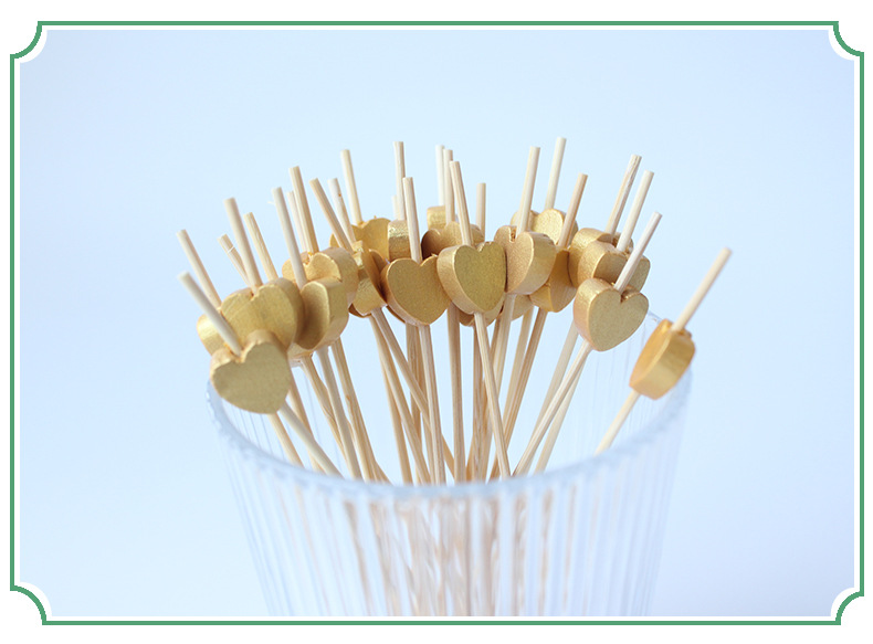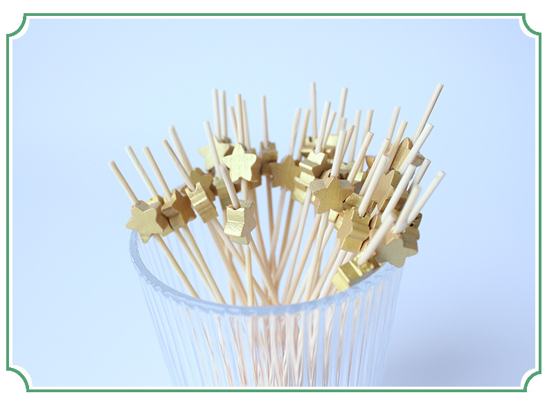 Signo de bambú desechable Signo de cuentas de oro de madera 100 piezas/paquete Cóctel decorativo dorado Signo de frutas Amor estrella de cinco puntas
