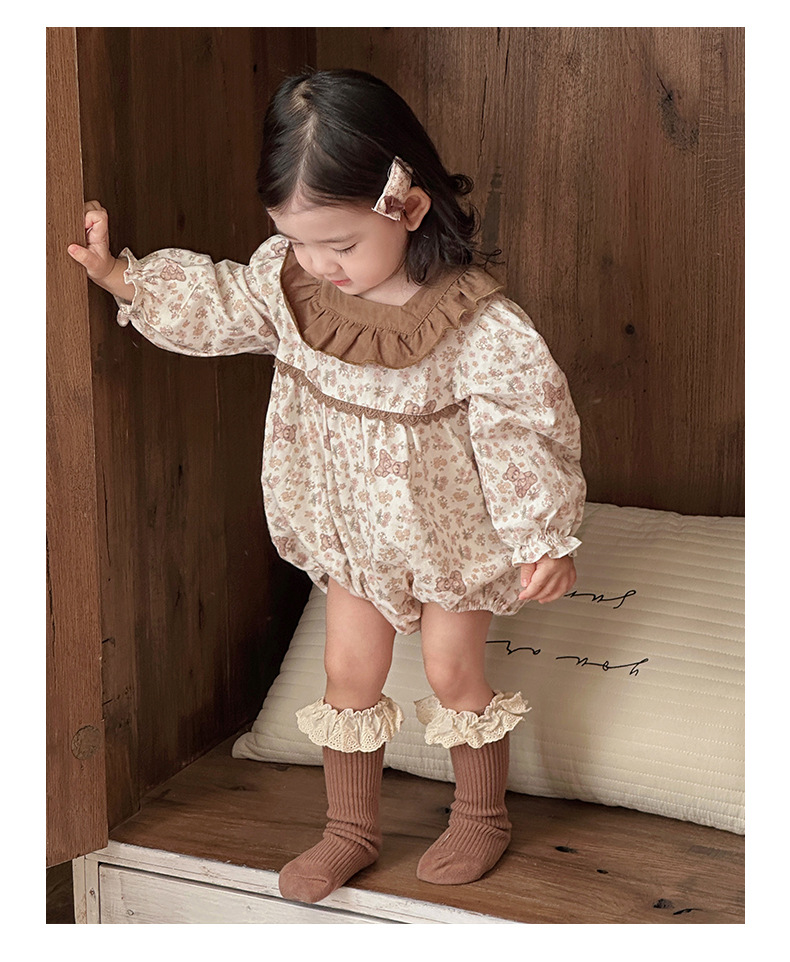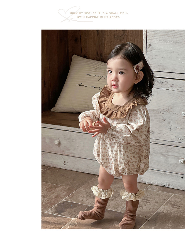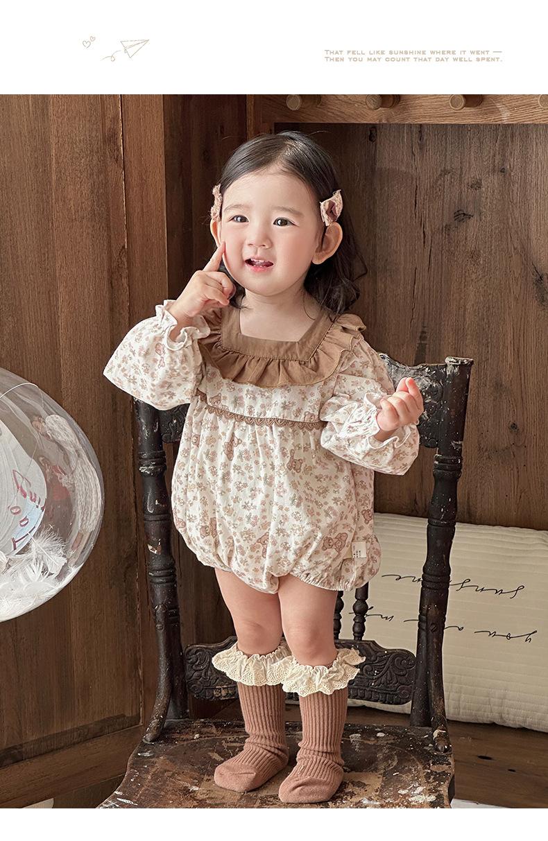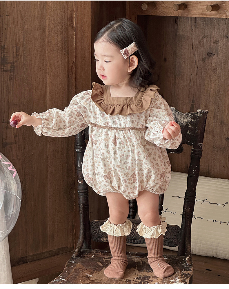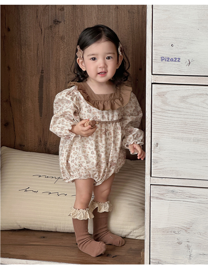2025 ropa de primavera para niños, moda occidental, flores pequeñas, primavera, nuevo estilo, mampara de bebé con volantes, ropa exterior, ropa de pedo