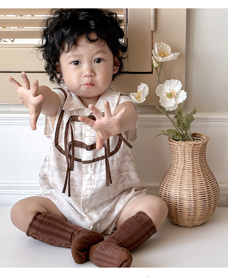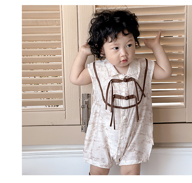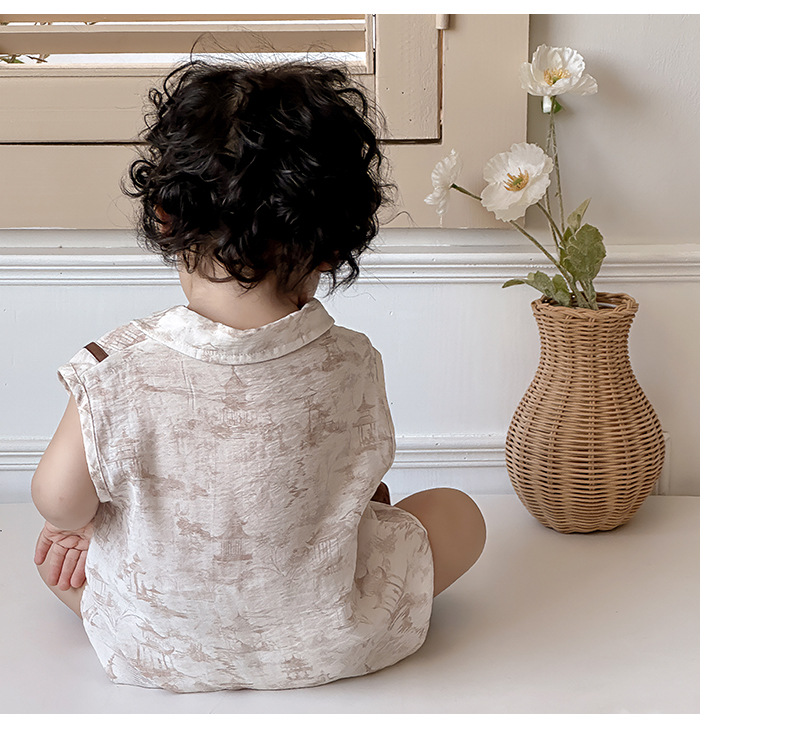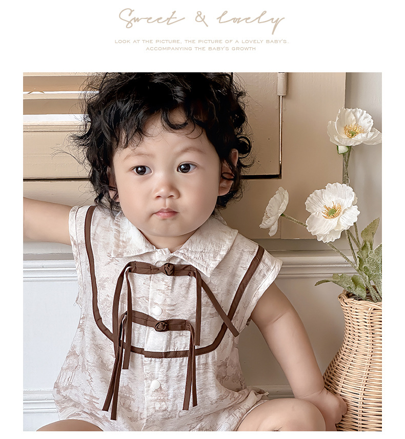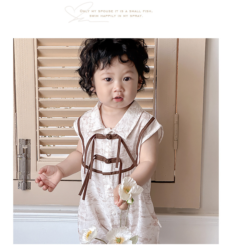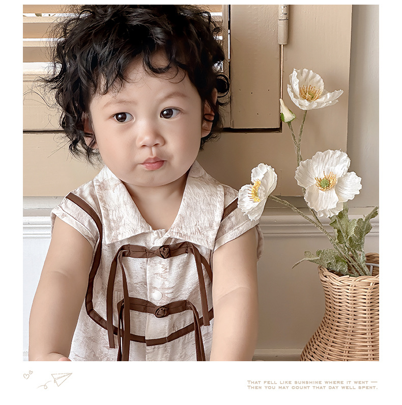 Camisa de bebé, ropa de verano delgada, una nueva hebilla de disco de estilo chino, luna llena, cien días, ropa de año nuevo para hombres y bebés, una pieza