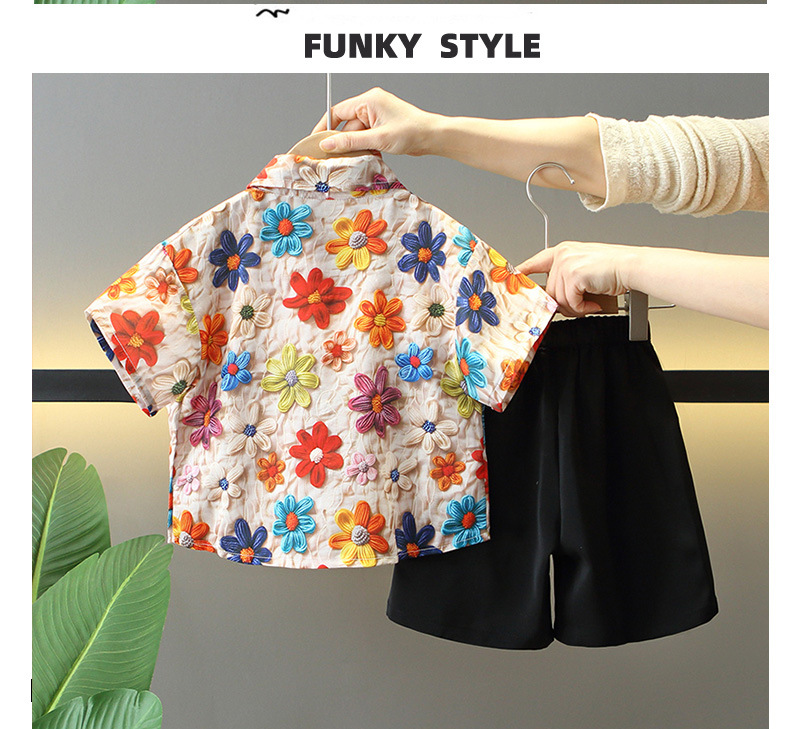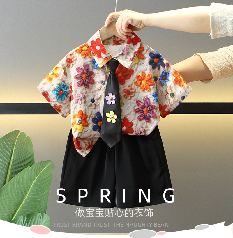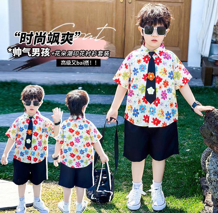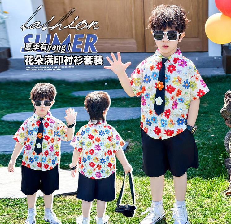 7957 Traje para niños 2025 verano nuevo estilo niño camisa de flores de moda coreana de manga corta ropa de verano de dos piezas