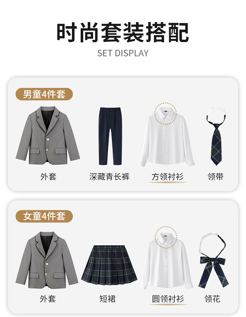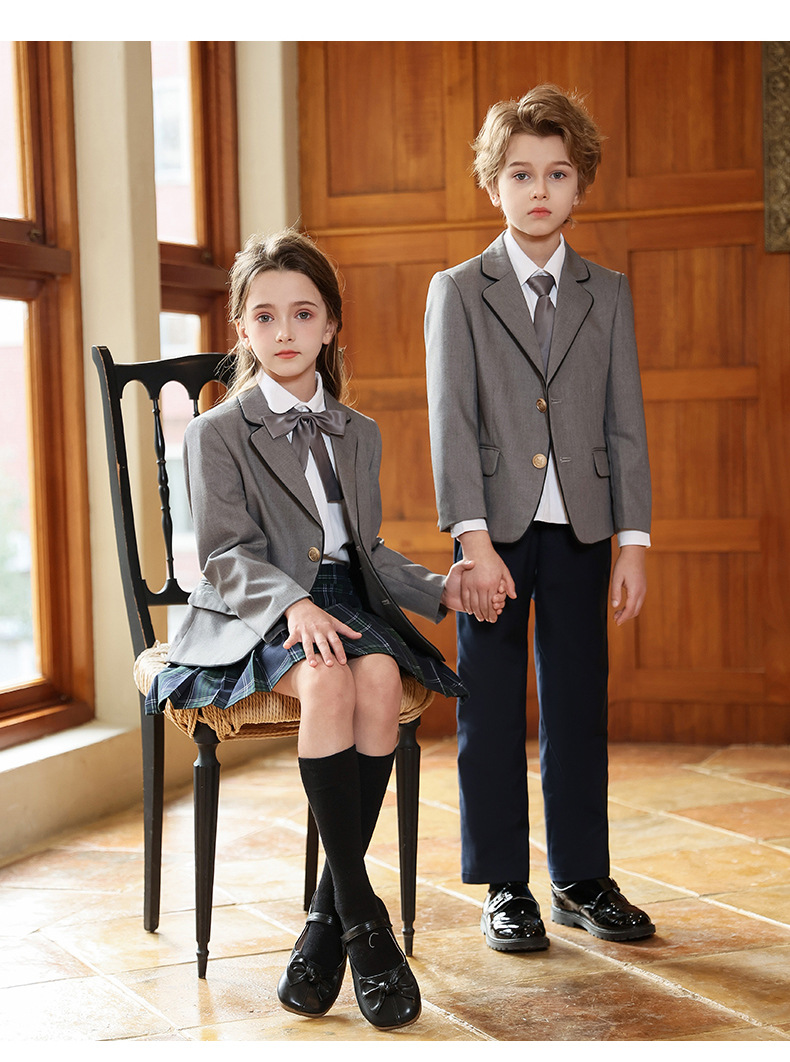 Uniformes escolares de niños, traje de estilo universitario, traje de jardín de infantes, primavera y otoño, traje de estilo inglés de cuatro piezas.